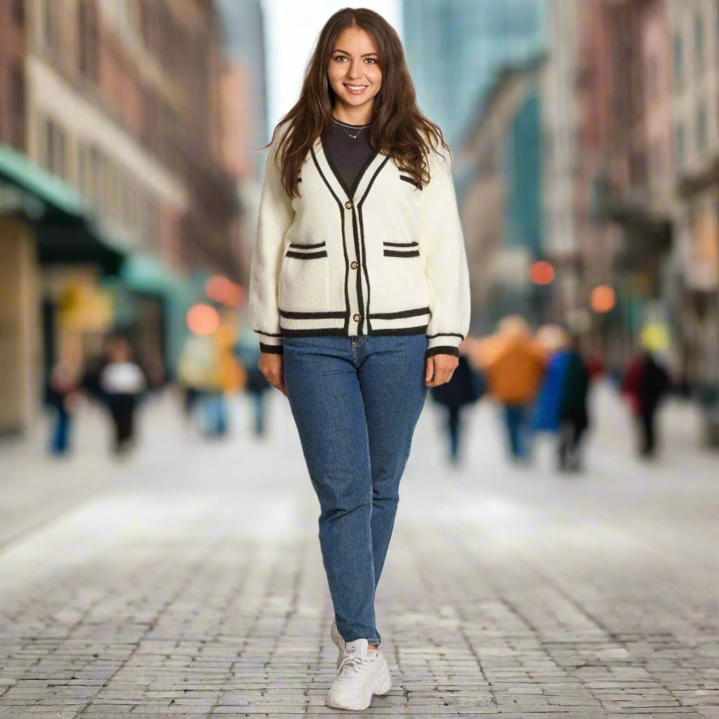 Cardigan maxi elegant cu buzunare în culoarea mocha - o alegere stilată și confortabilă. Se închide cu fermoar, modelul are buzunare practice. Croiul lejer și materialul elastic oferă confort pe tot parcursul zilei. Fabricat din 95% viscoză și 5% elastan.