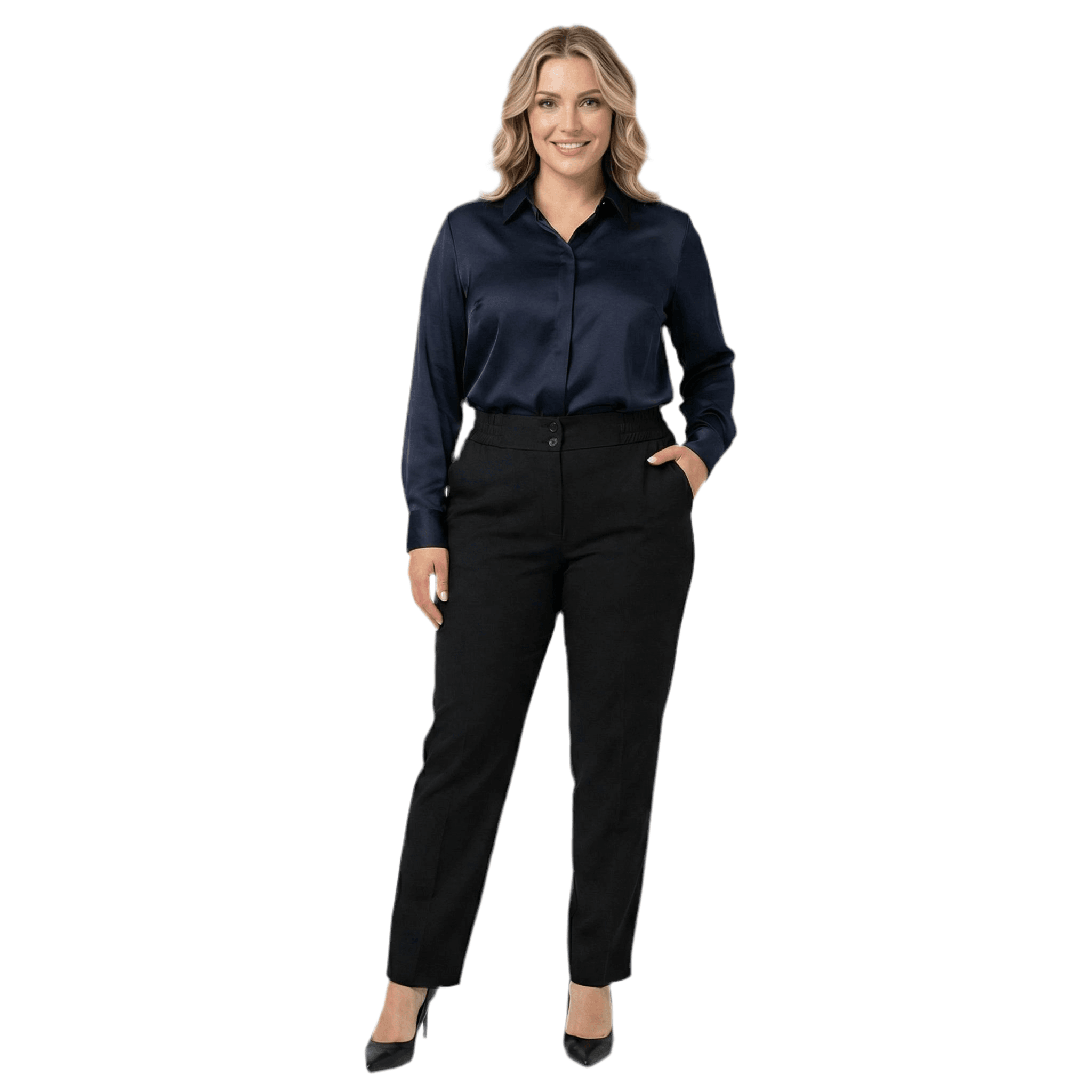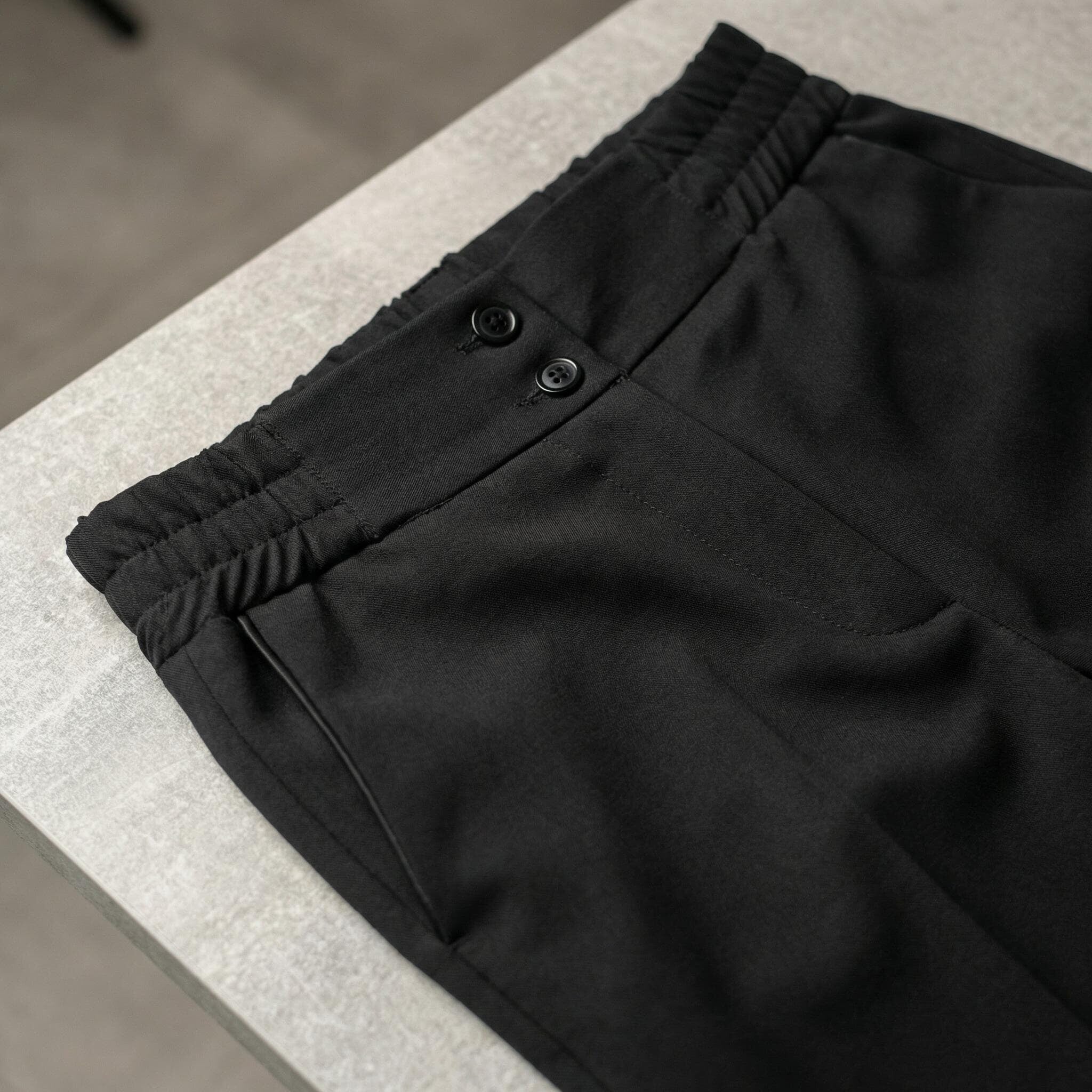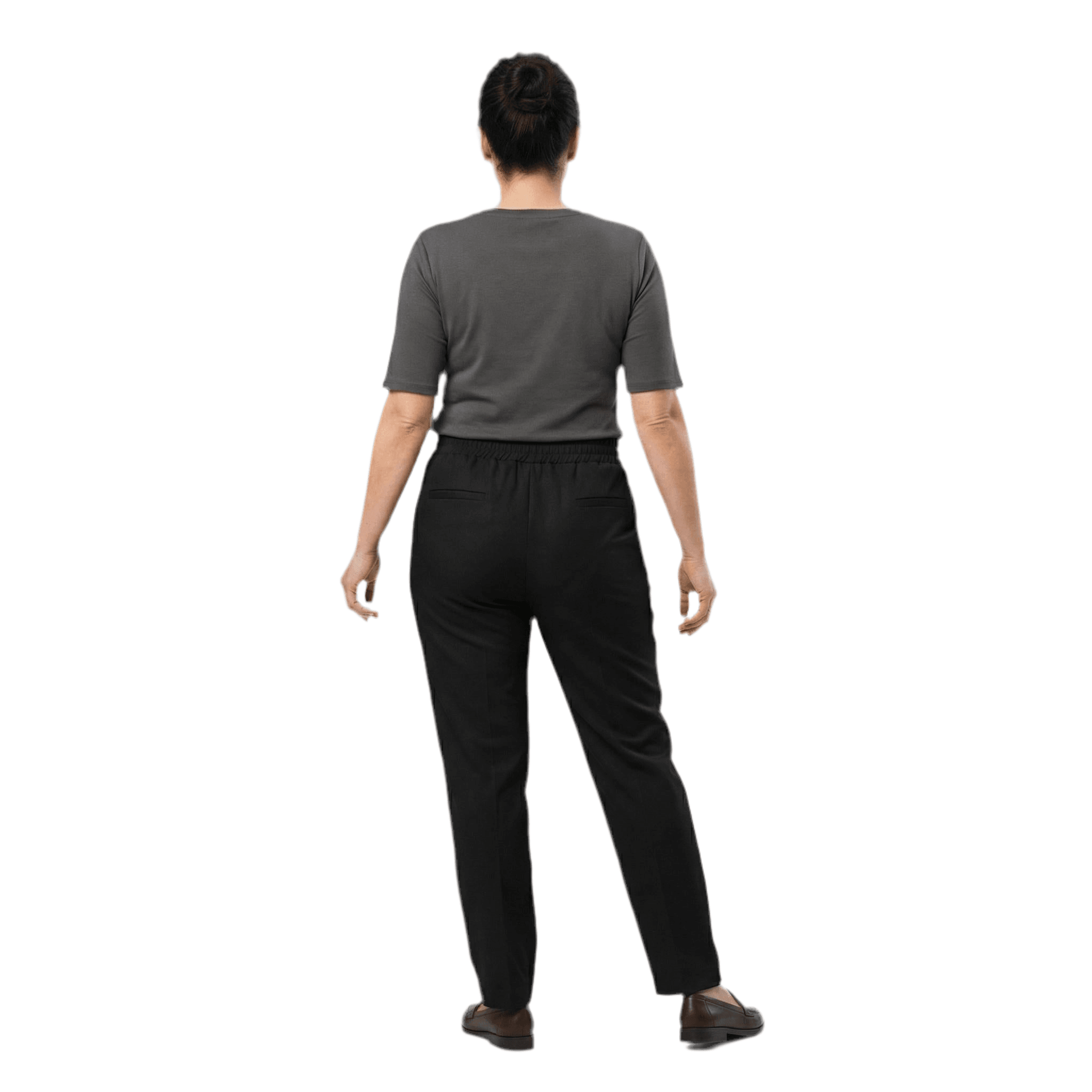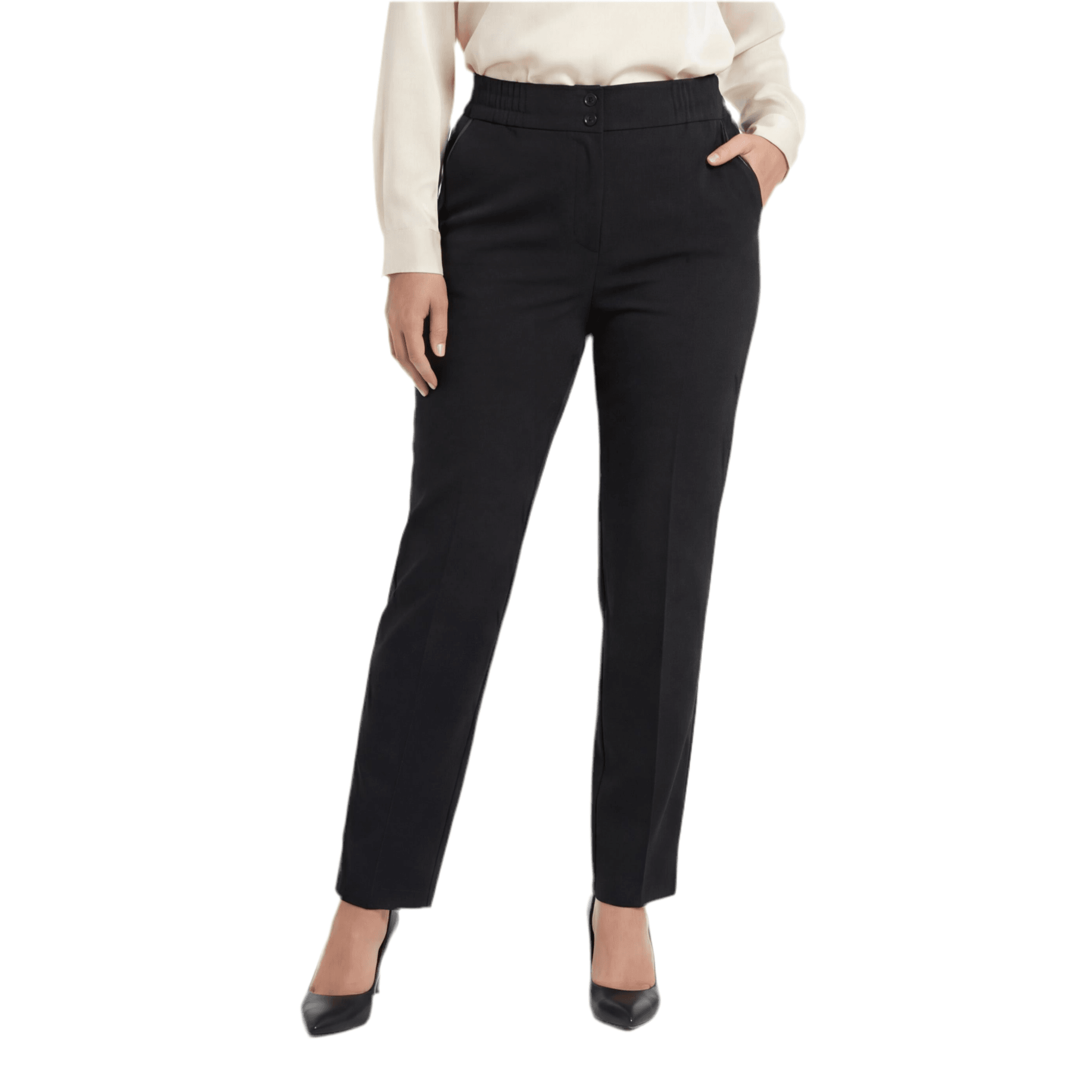 Pantaloni negri de damă, eleganți, cu talie elastică și croială dreaptă