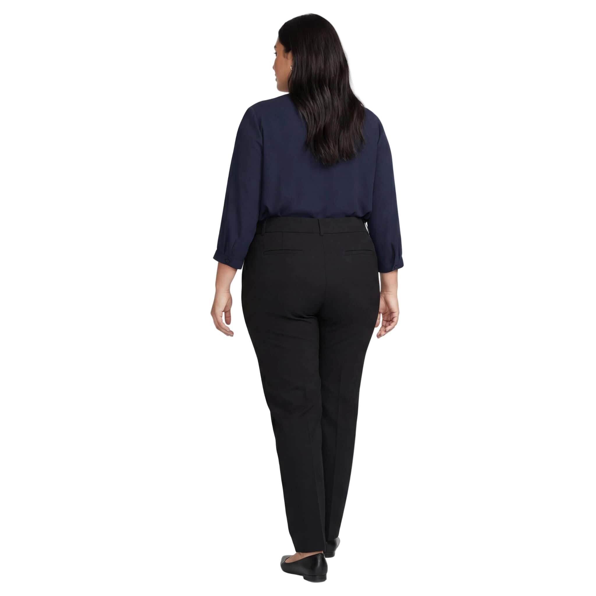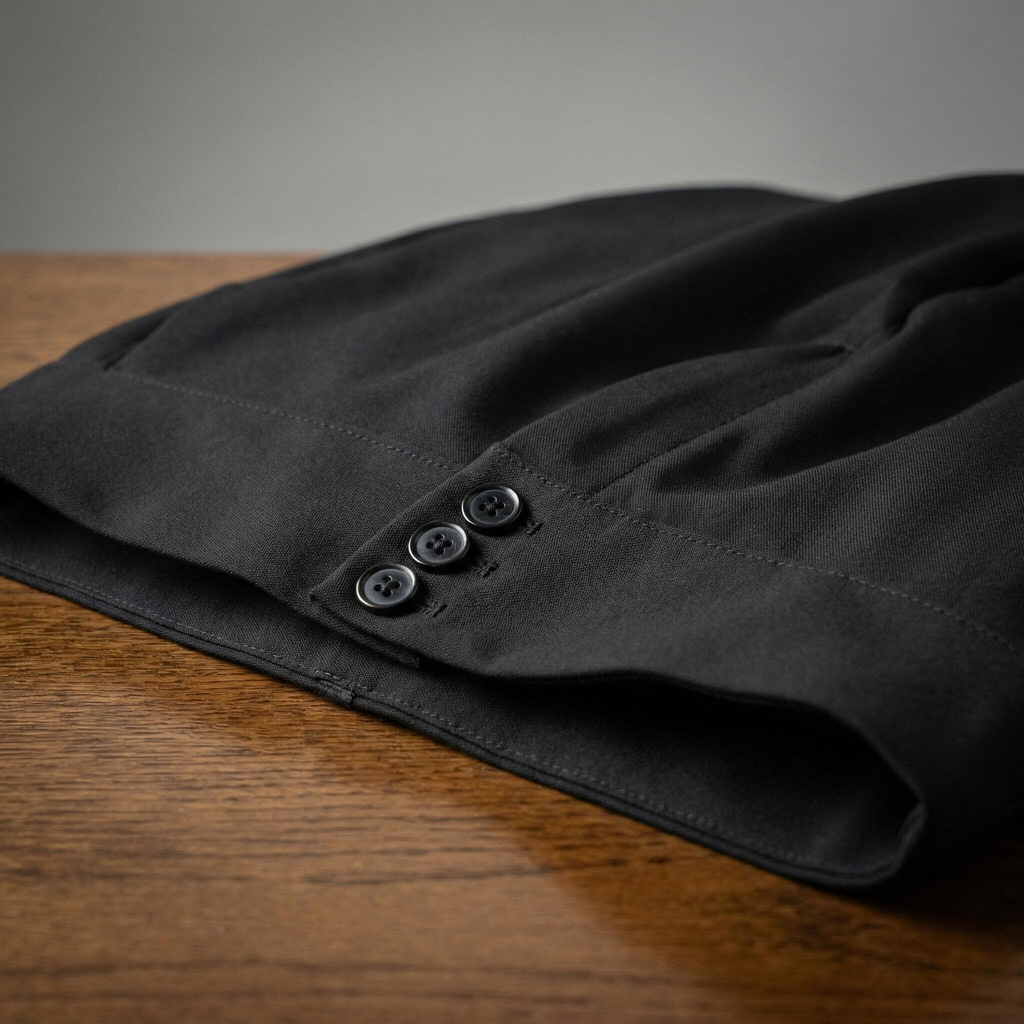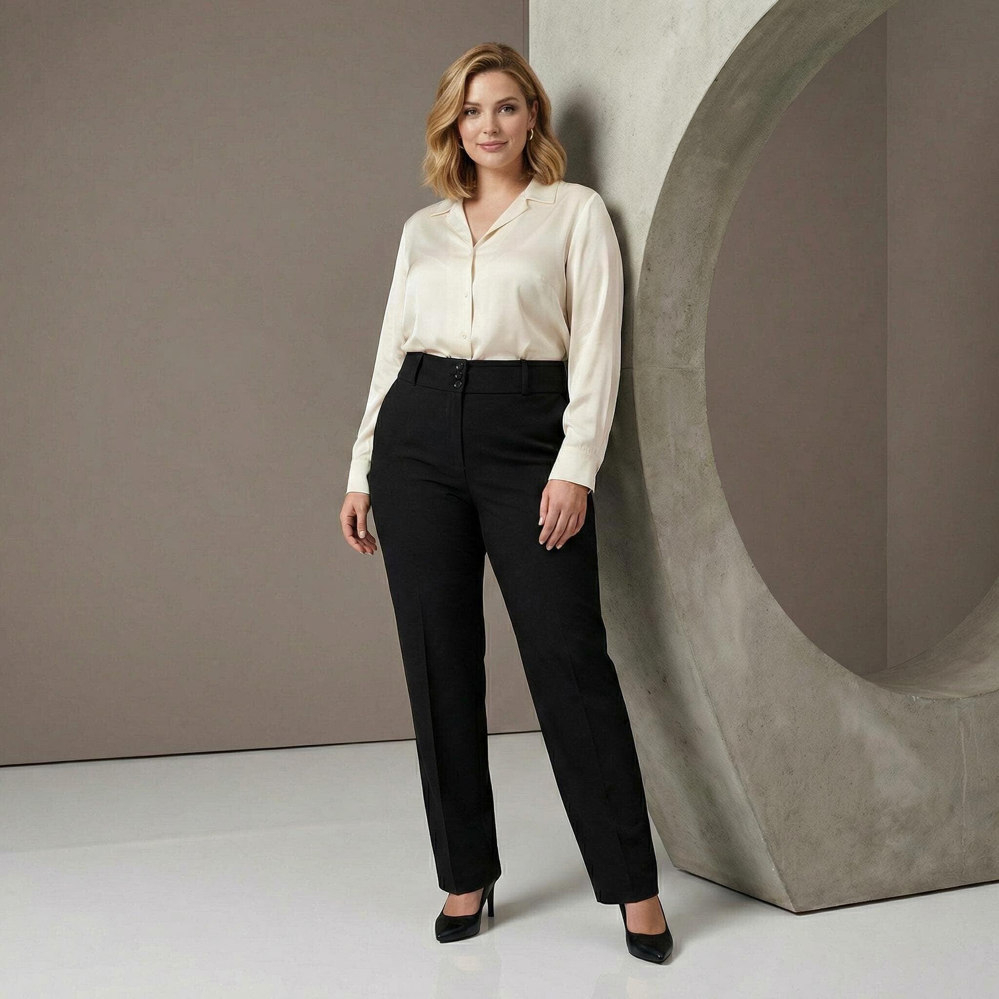 Pantaloni de damă negri, eleganți, cu dungă și nasturi