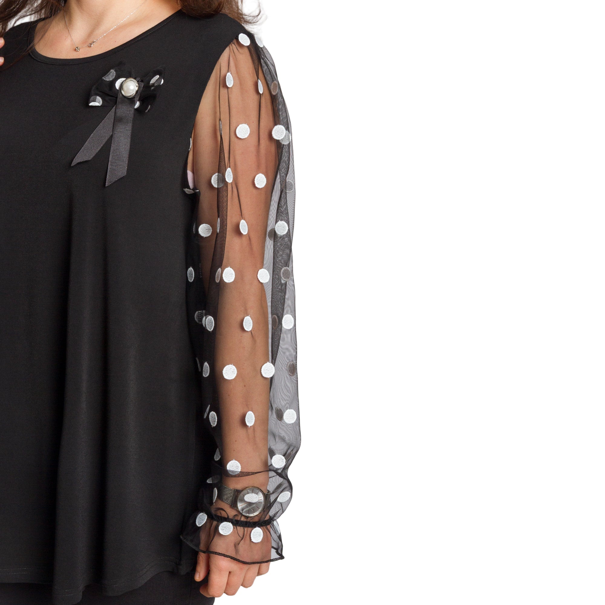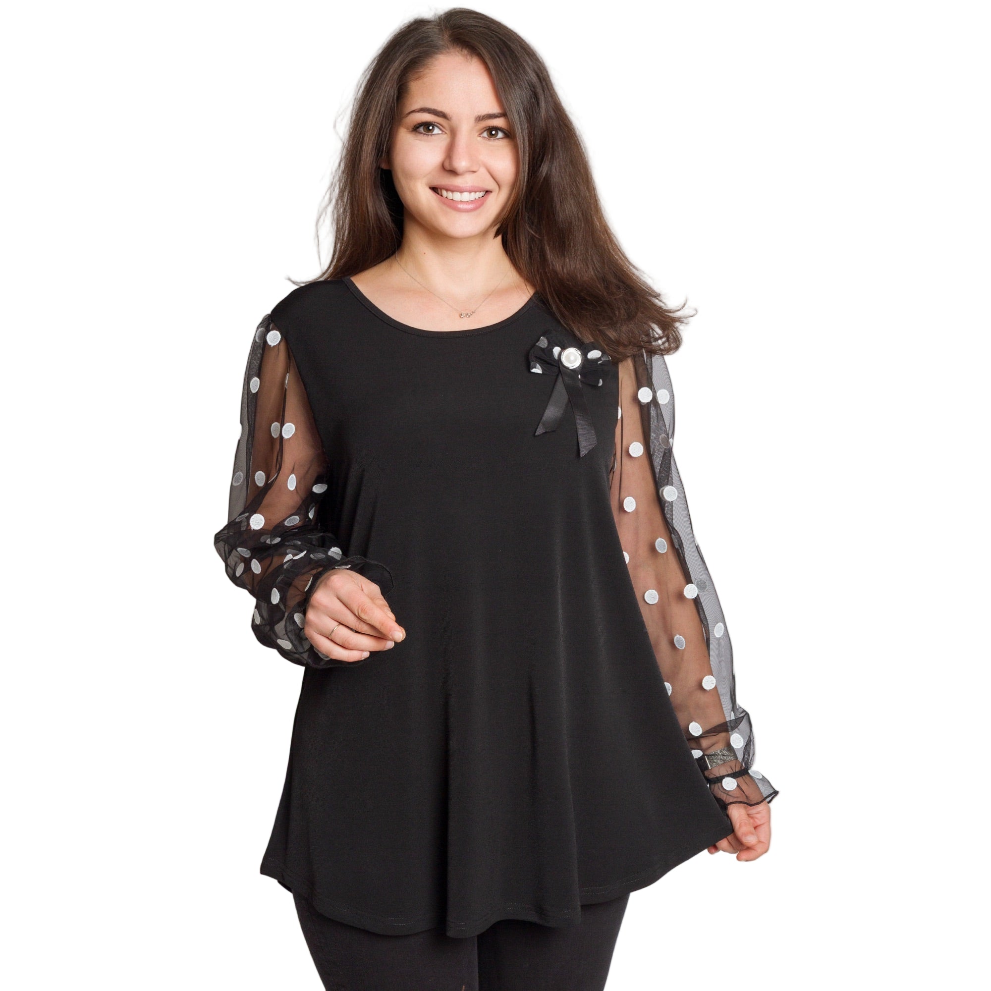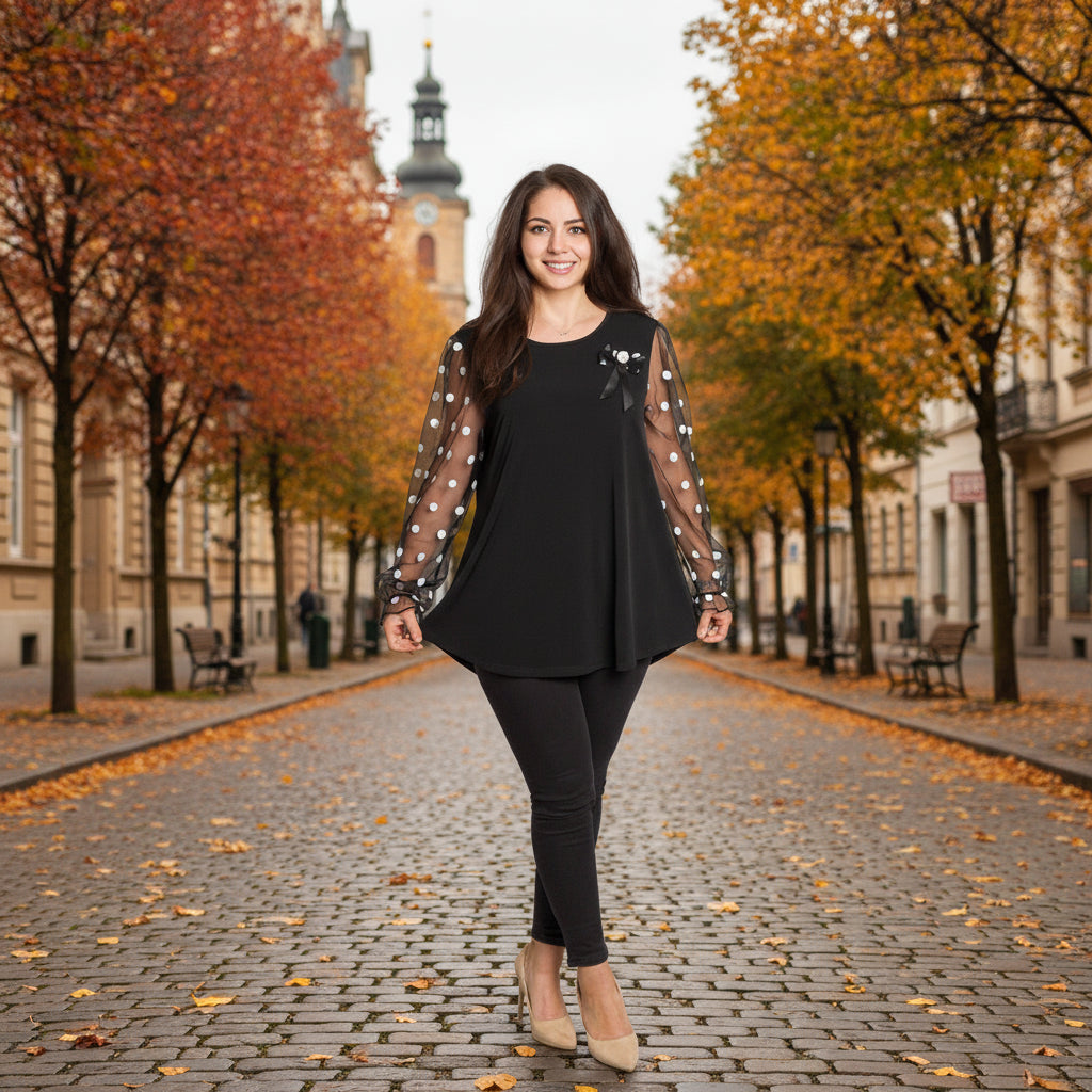Tunică elegantă pentru femei - Mâneci spectaculoase cu buline