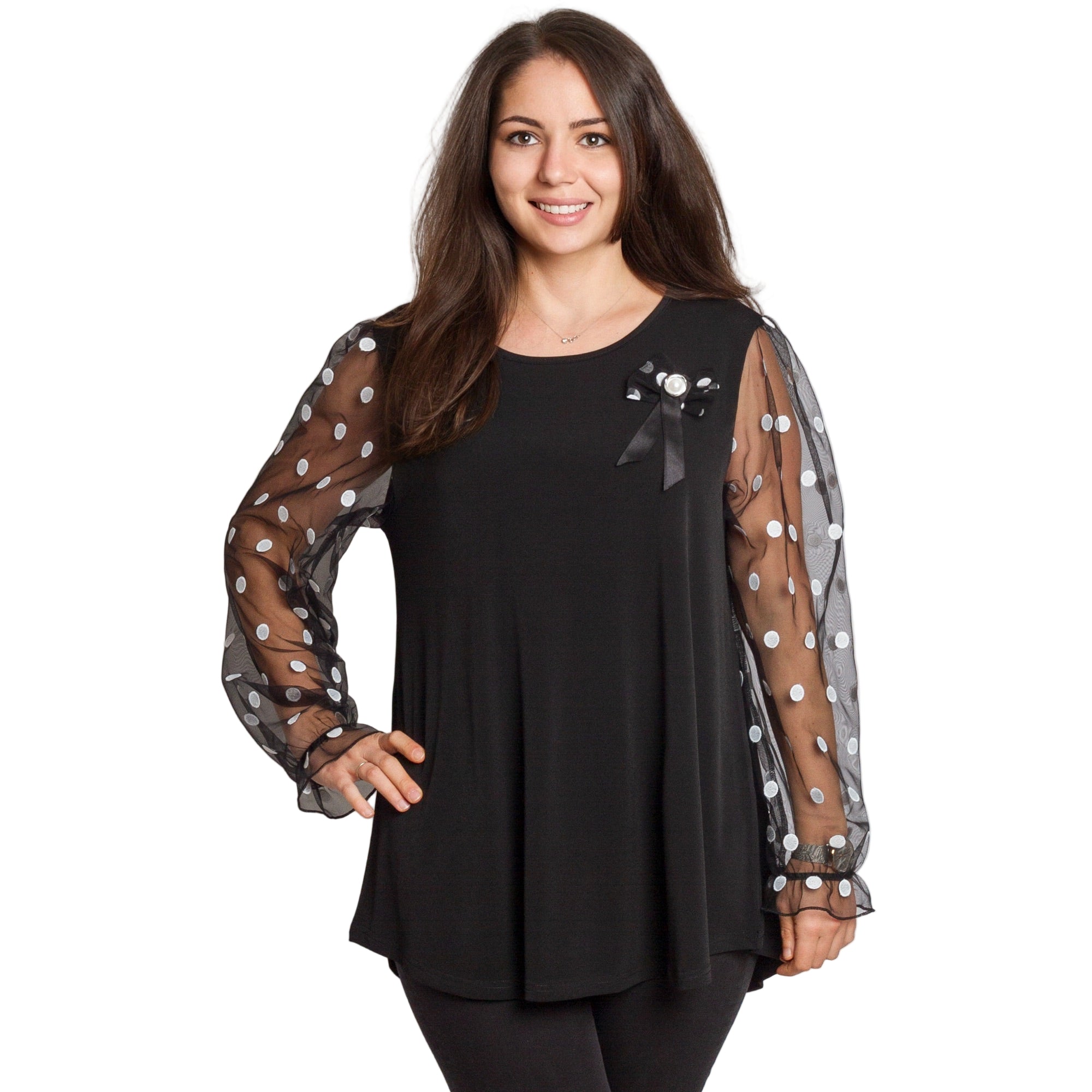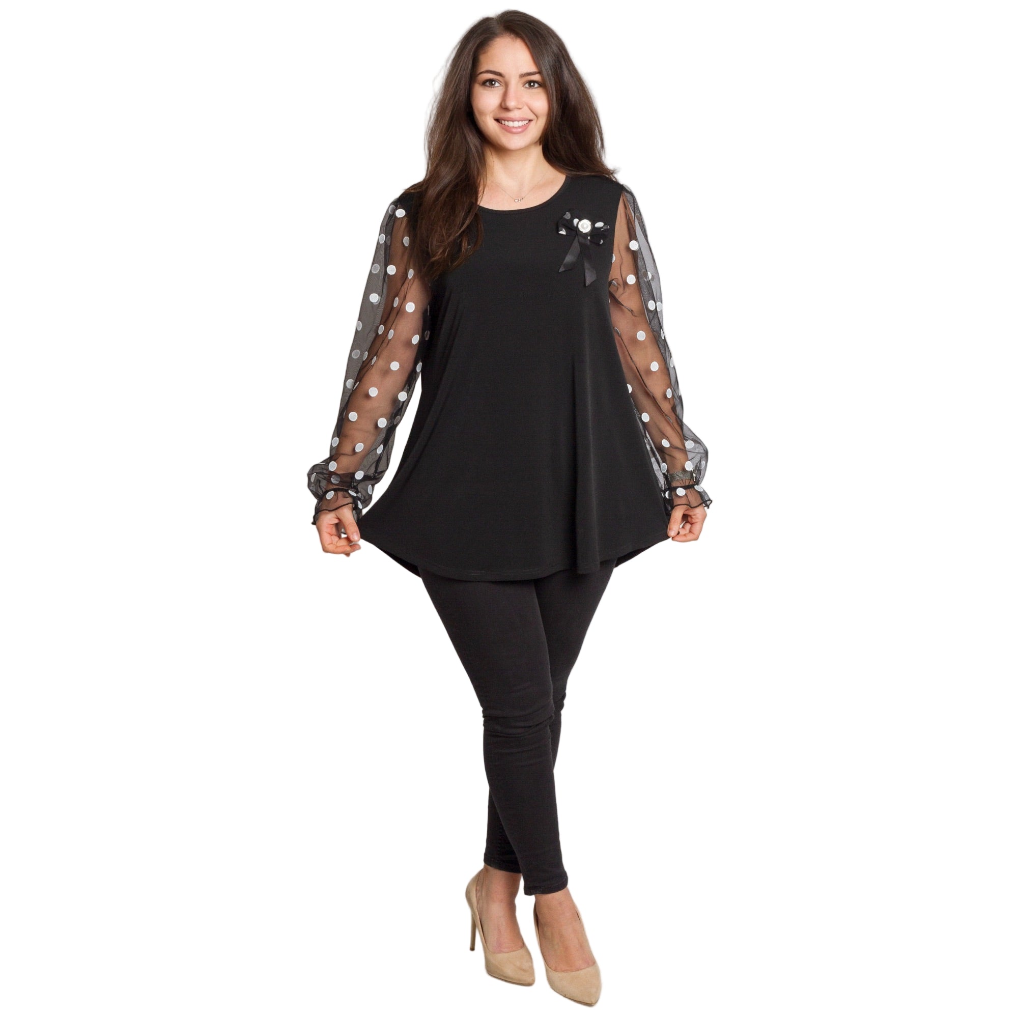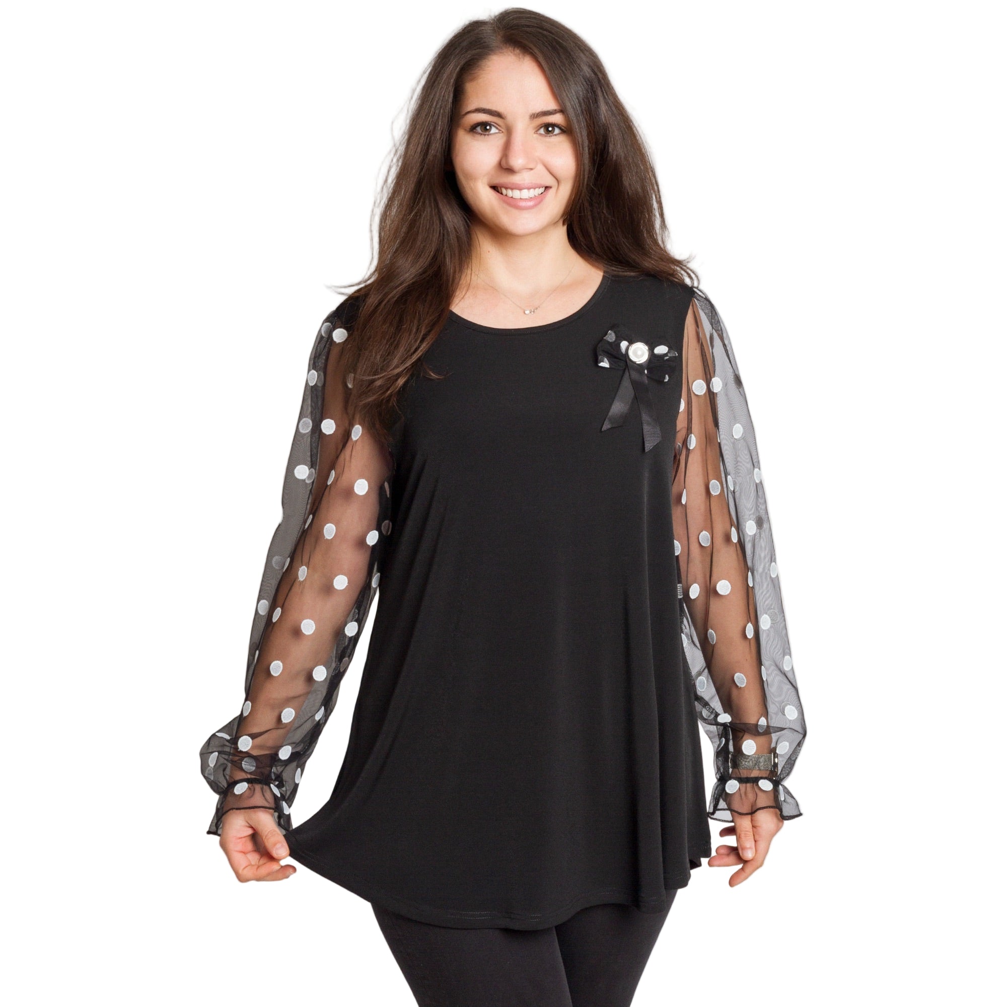 Tunică elegantă pentru femei - Mâneci spectaculoase cu buline