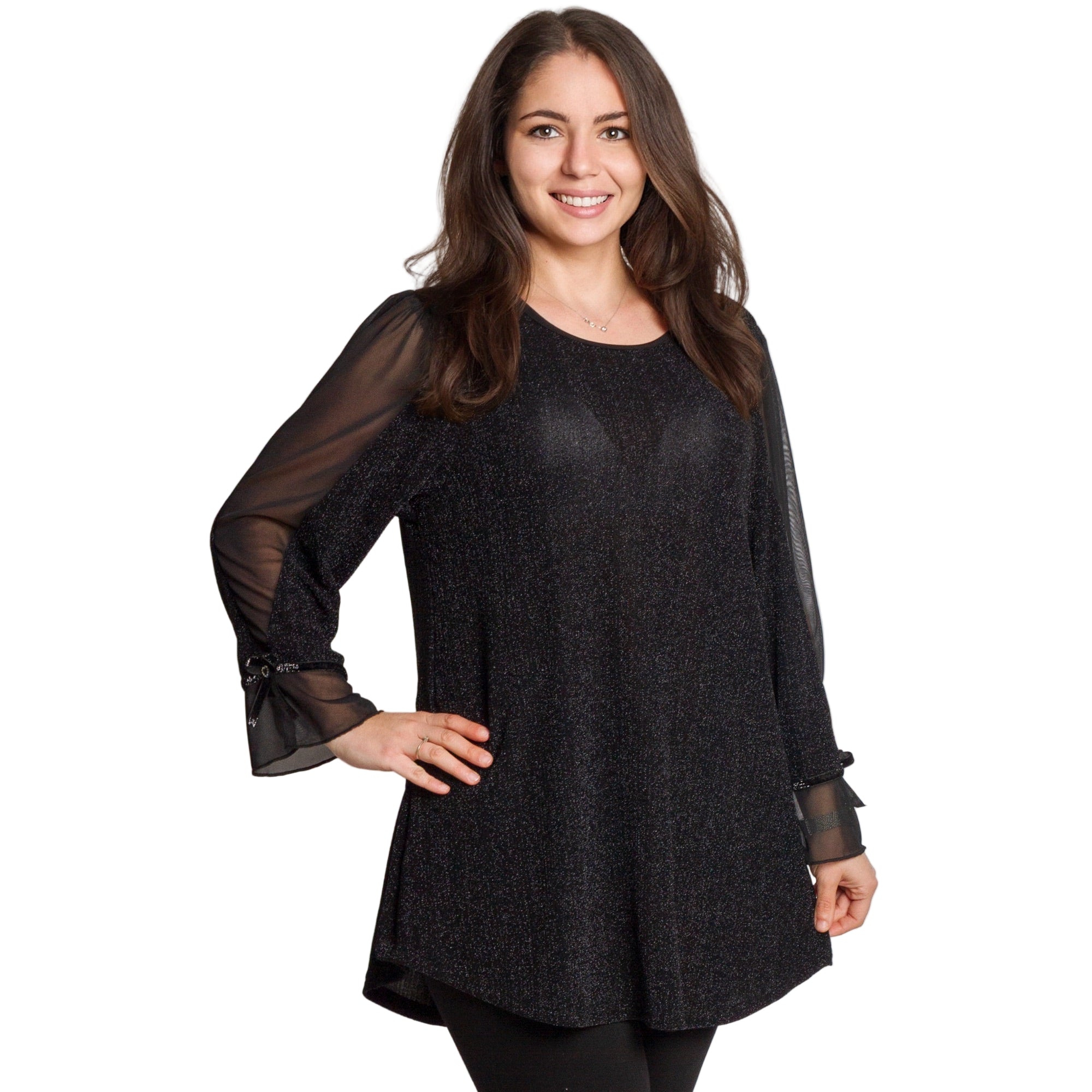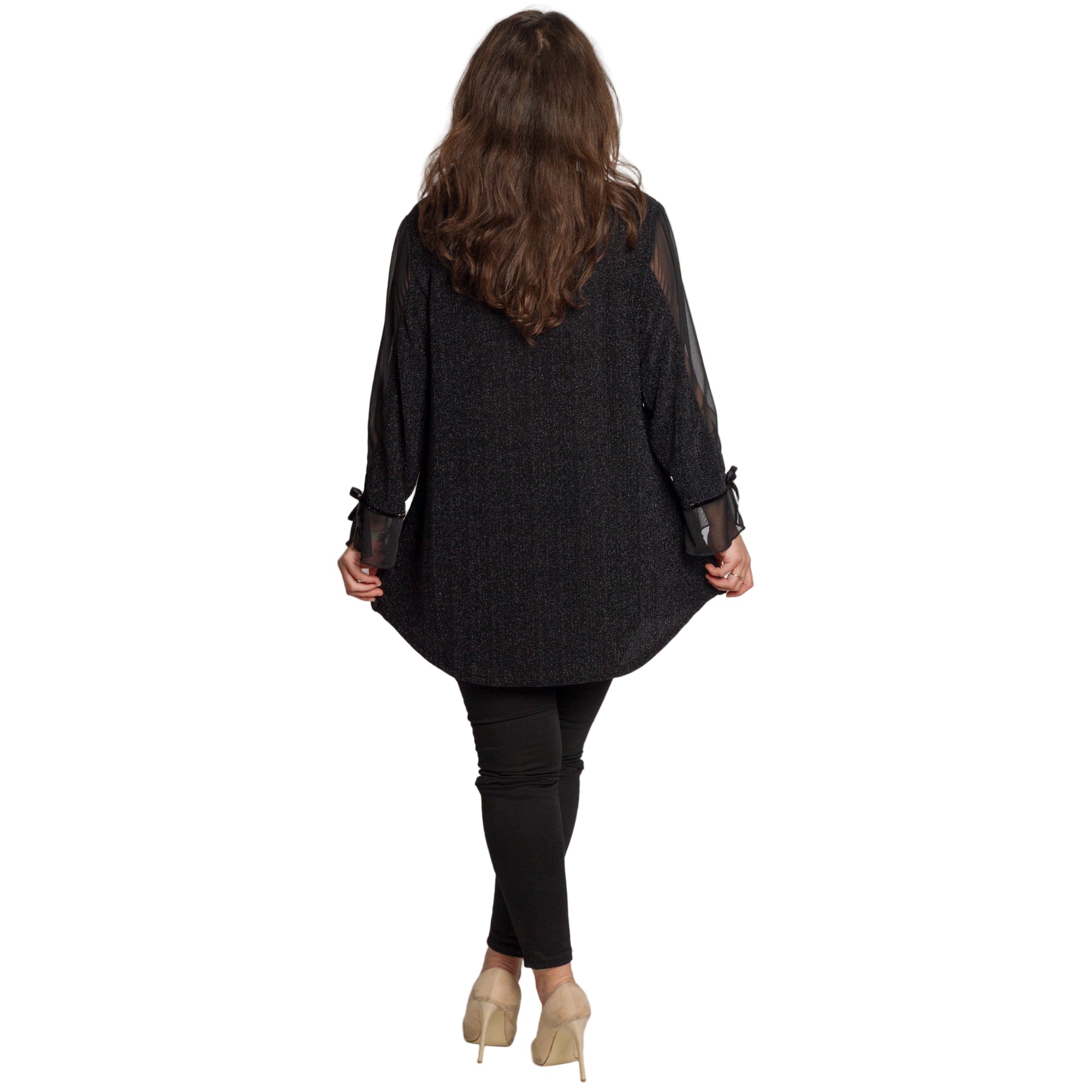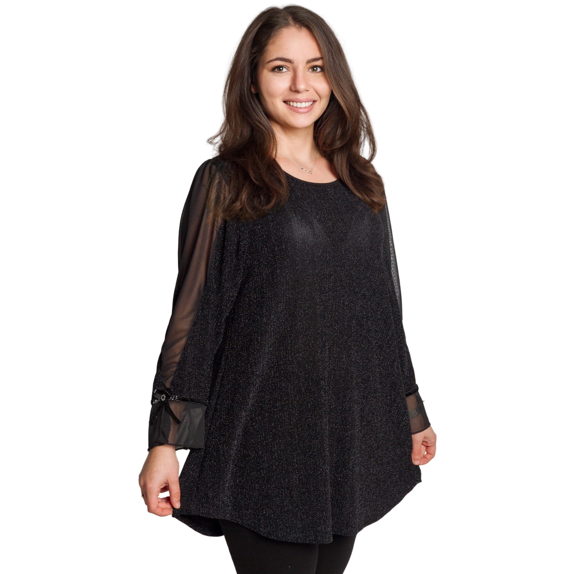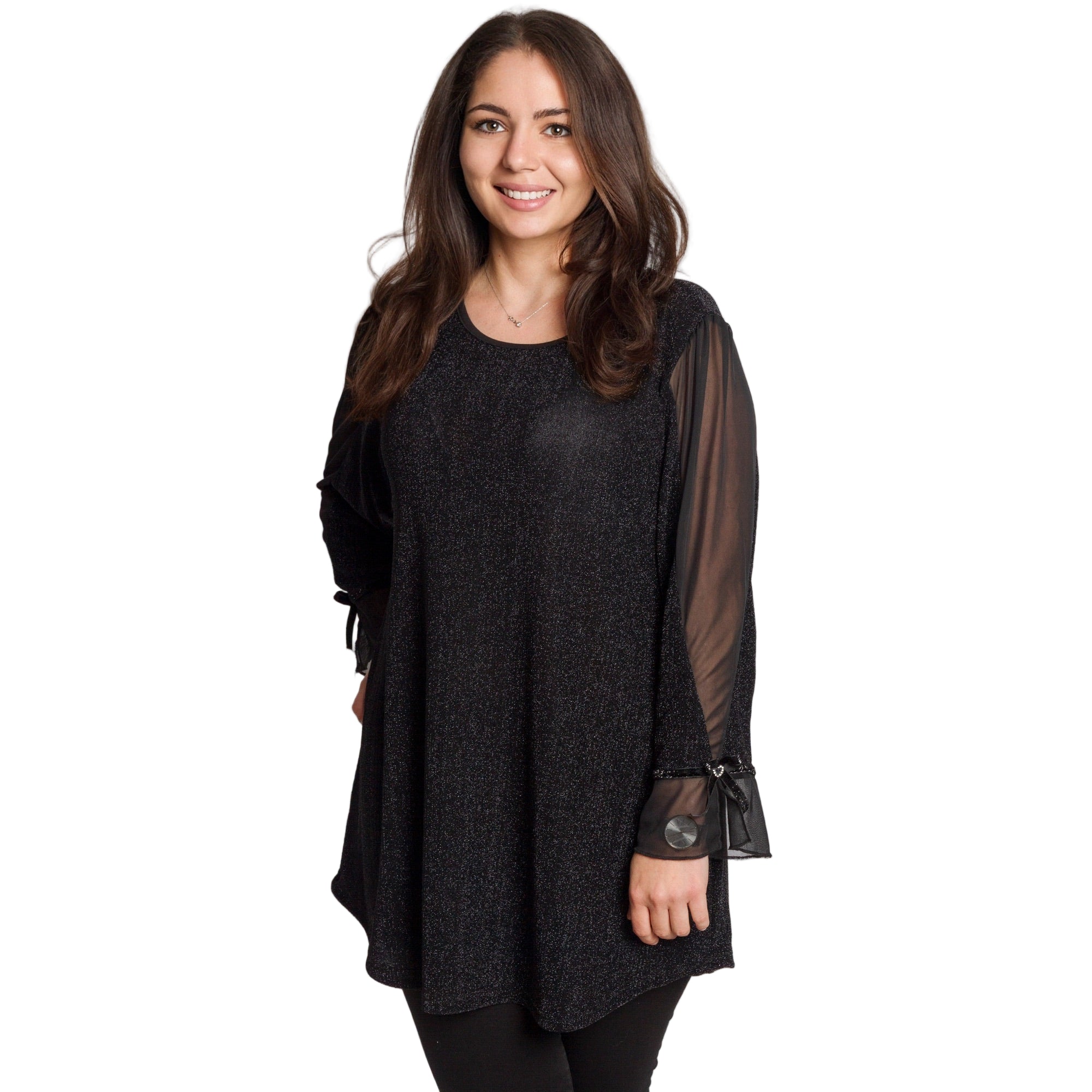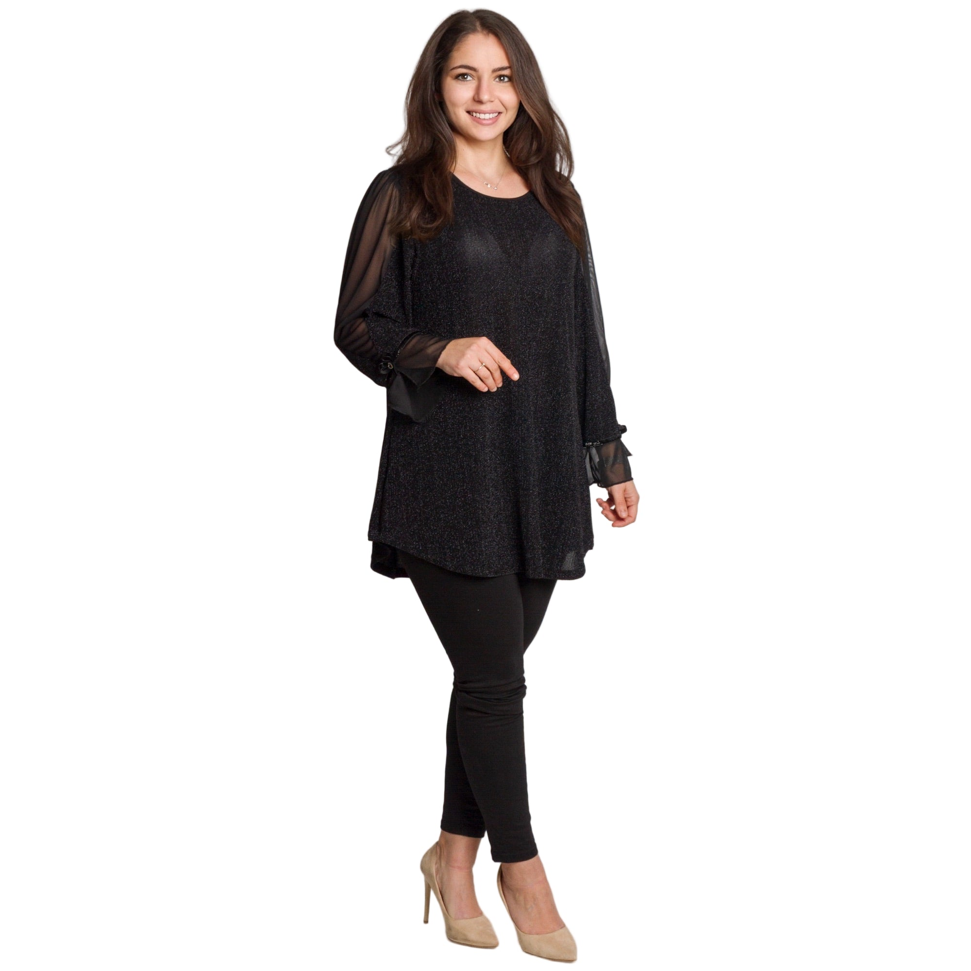 Adaugă culoare și eleganță ținutei tale cu această tunică lejeră în mărimi maxi. Modelul prezintă un imprimeu superb în tonuri bogate de verde și albastru, completat de un accent diagonal albastru închis din țesătură satinată, care adaugă rafinament și alungește vizual silueta. Croiul este lejer și confortabil, cu decolteu rotund și mâneci scurte - o alegere ideală atât pentru ocazii de zi cu zi, cât și pentru ocazii mai formale.