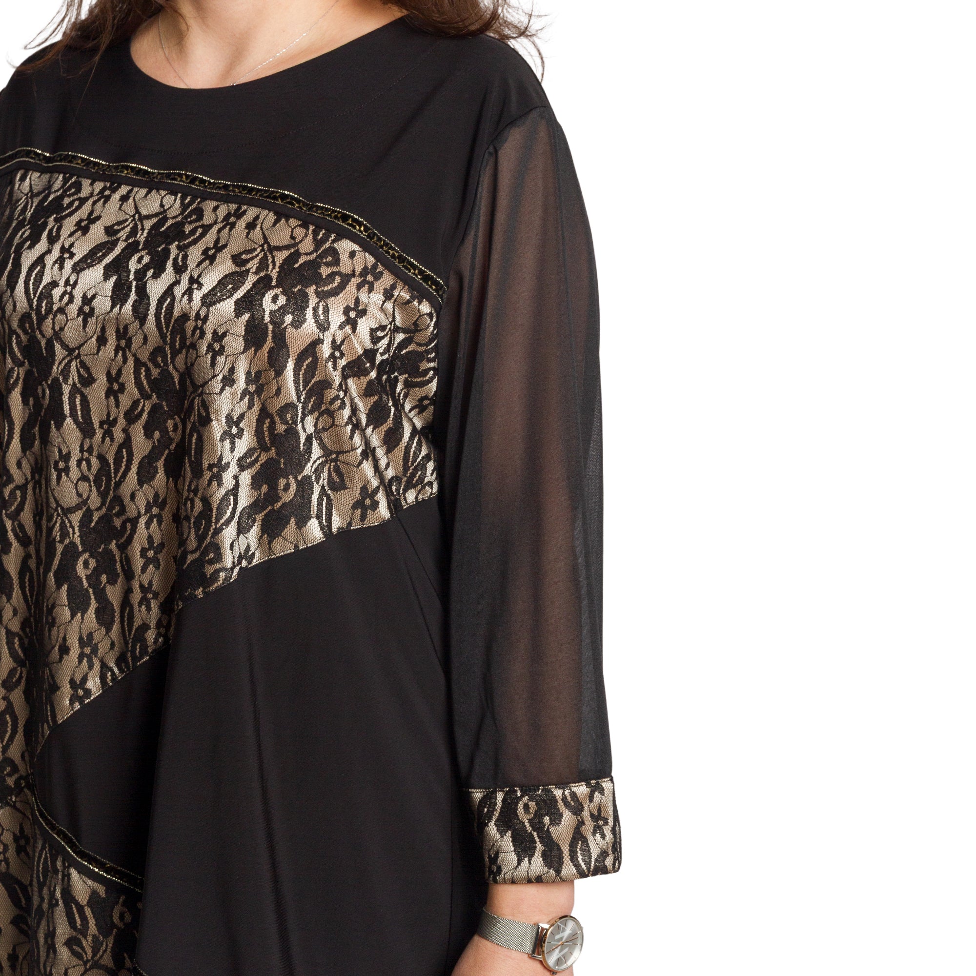 Găsește-ți tunica formală perfectă la Maxi Market! Această tunică neagră cu decolteu tip barcă și model cu buline este alegerea perfectă pentru orice ocazie formală din sezonul toamnă-iarnă. Fabricată în întregime din poliester, această tunică cu o croială lejeră garantează confort fără a compromite stilul. Lungimea atractivă adaugă eleganță și rafinament, potrivită pentru orice doamnă care caută calitate și frumusețe în hainele pentru femei plus size.