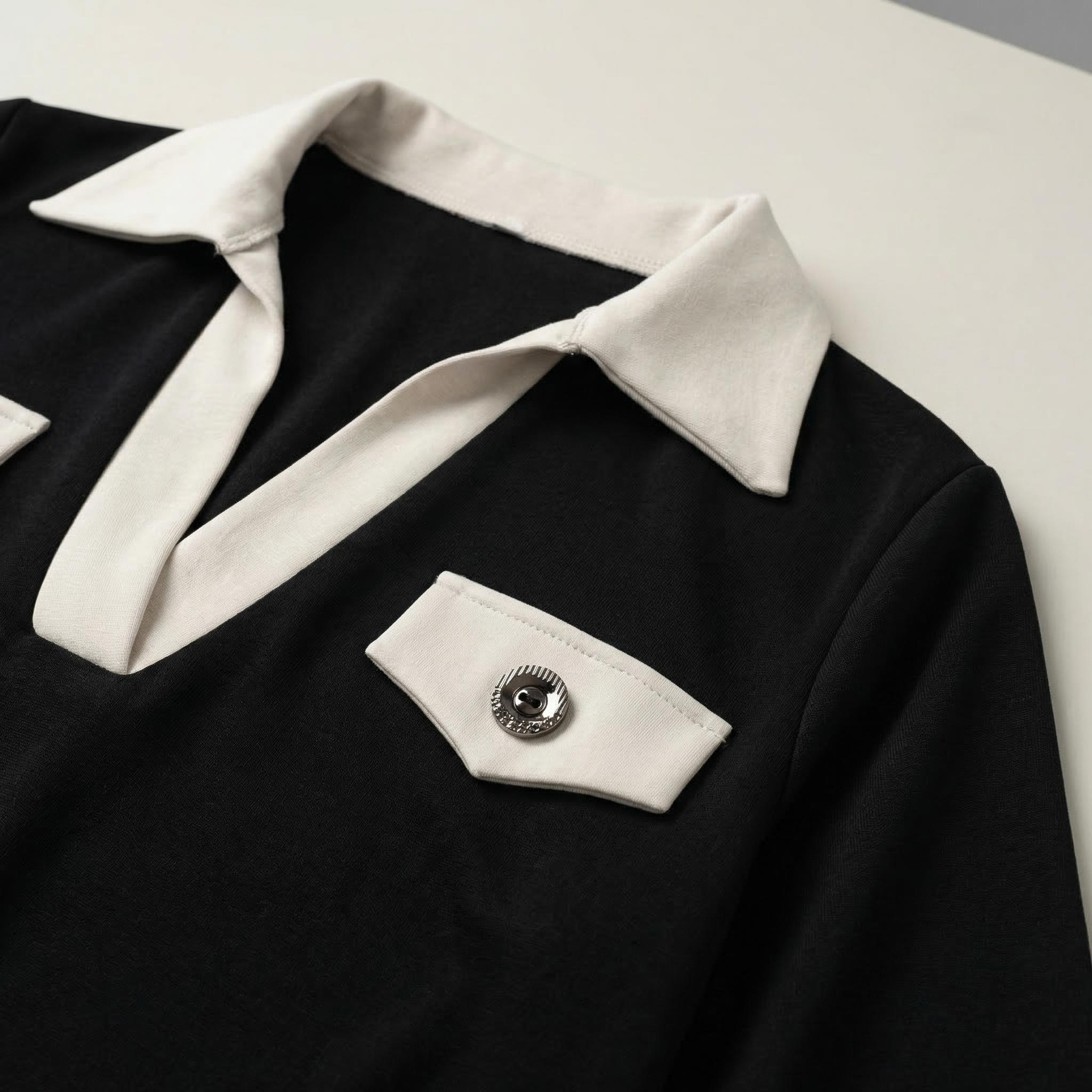 - Ефектни детайли като контрастна якичка и релефни метални копчета за изискана визия.