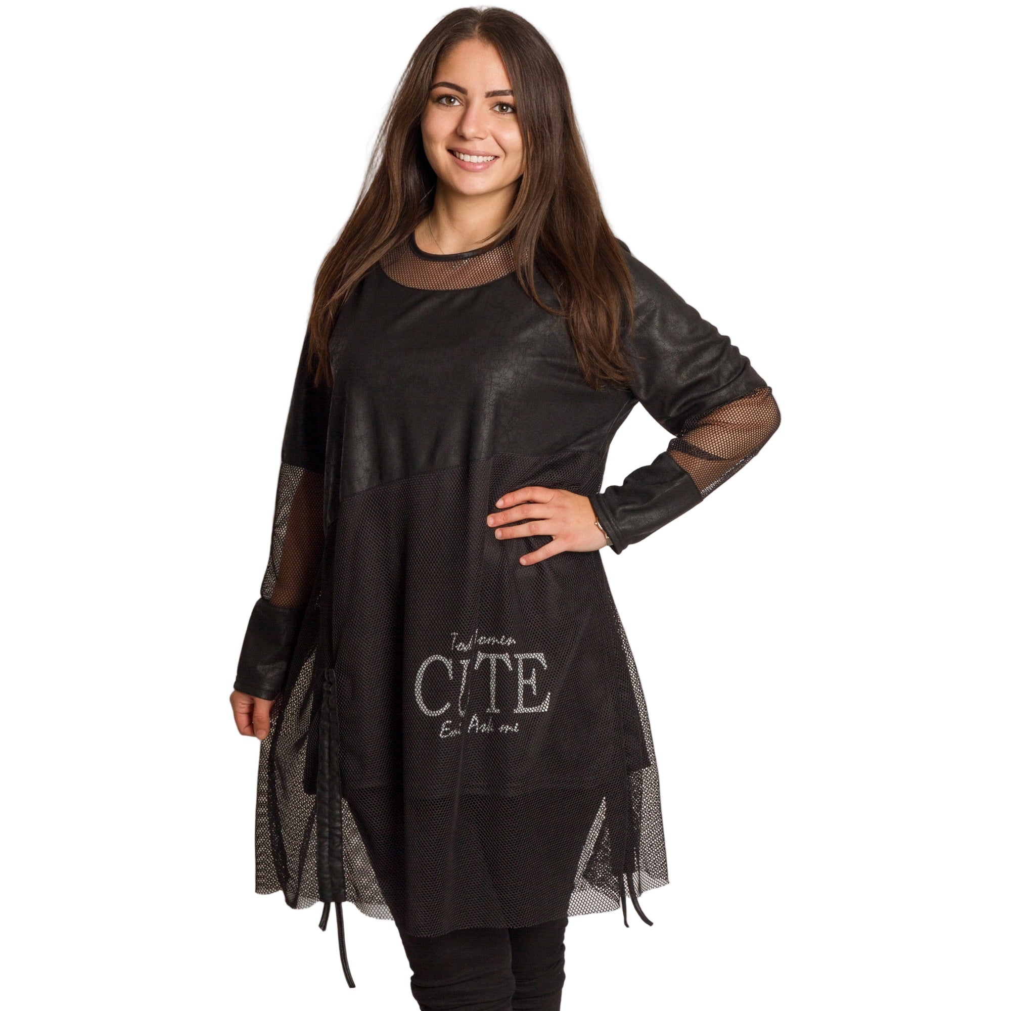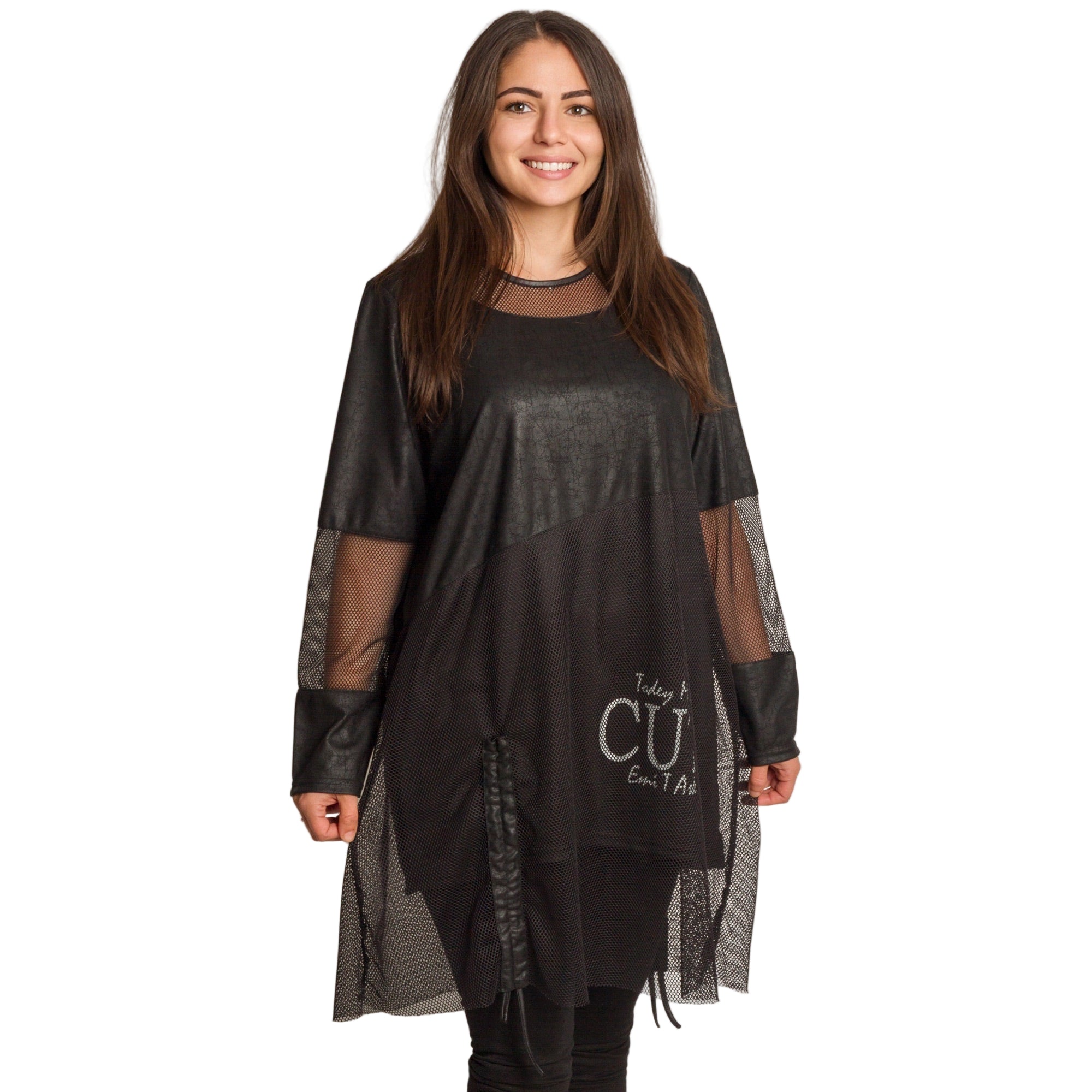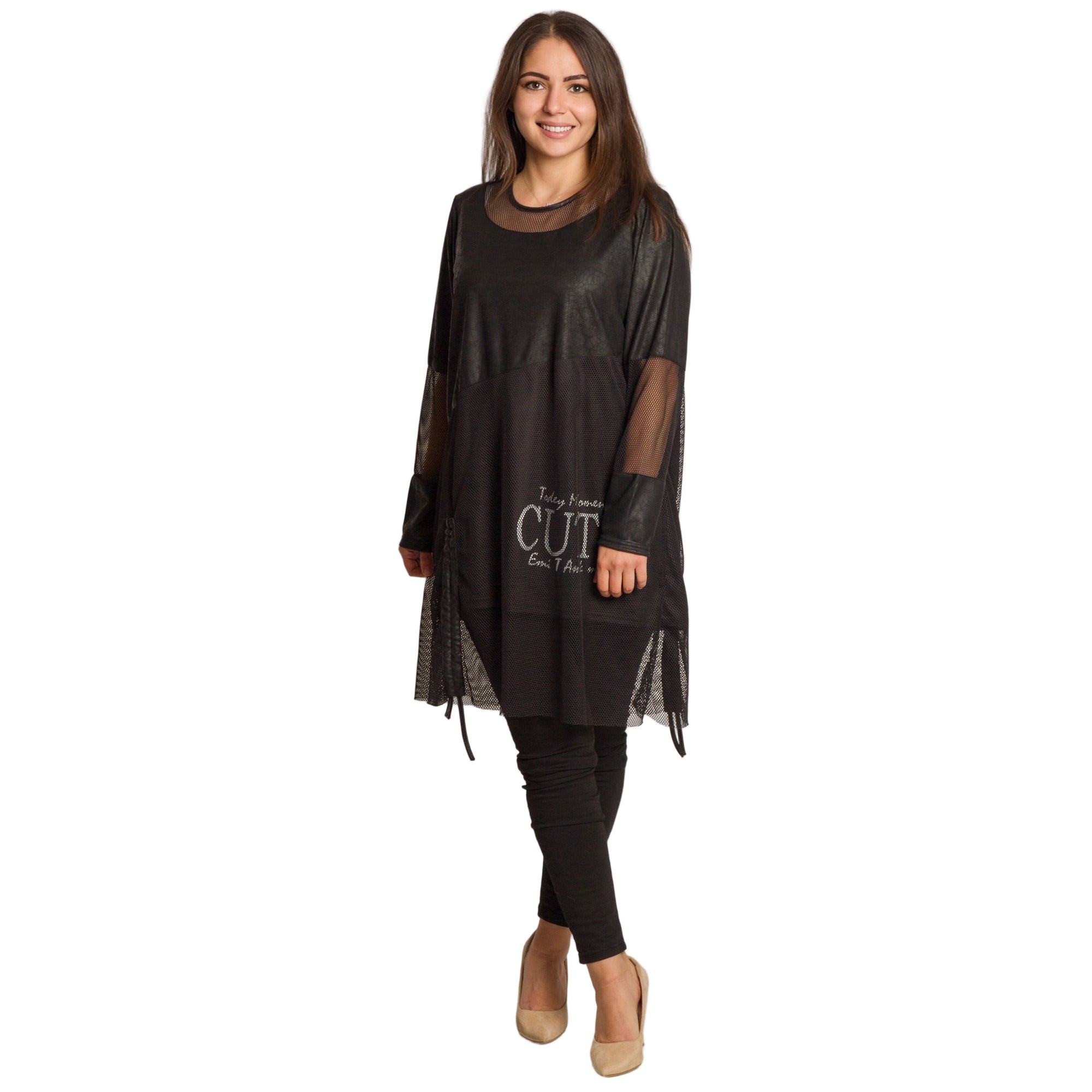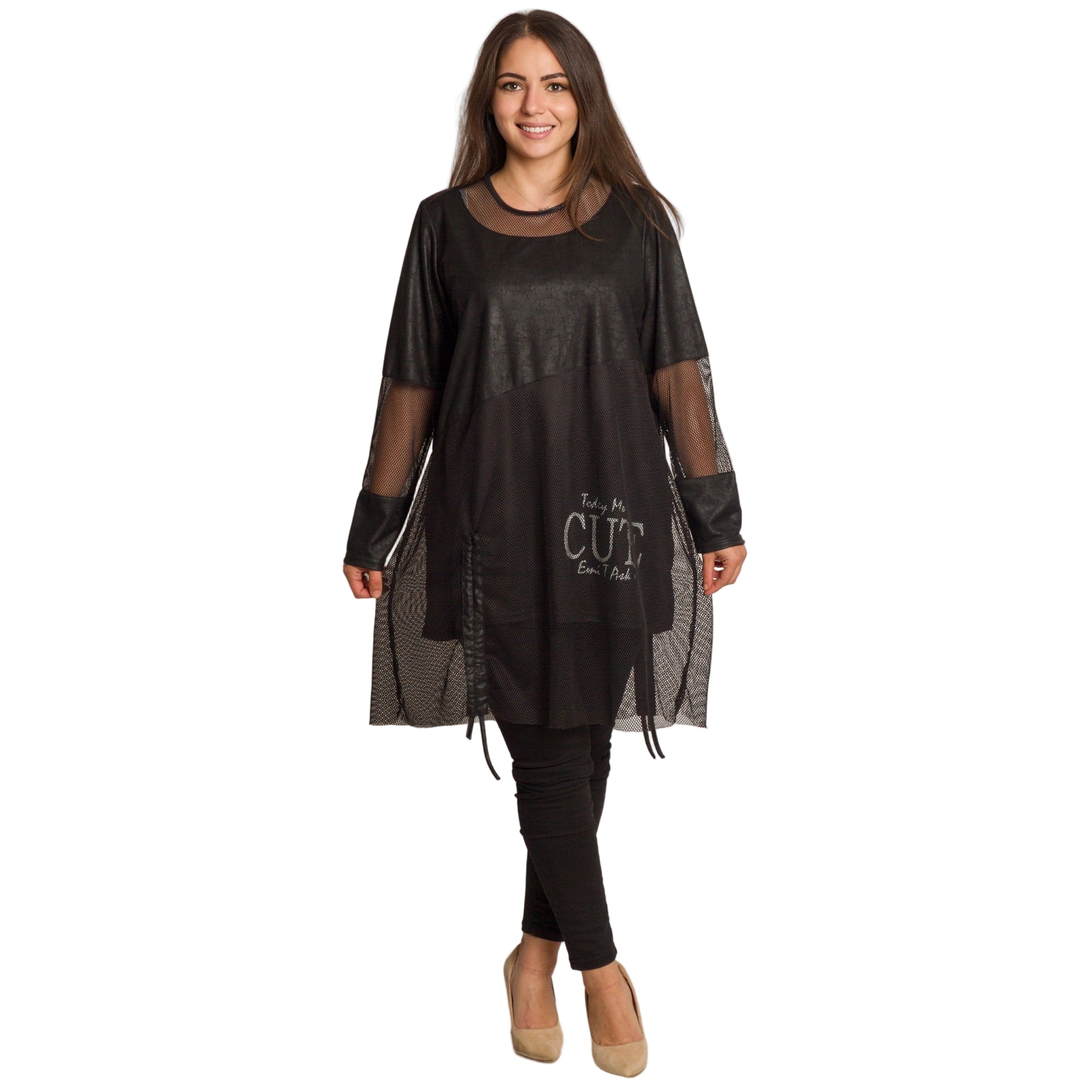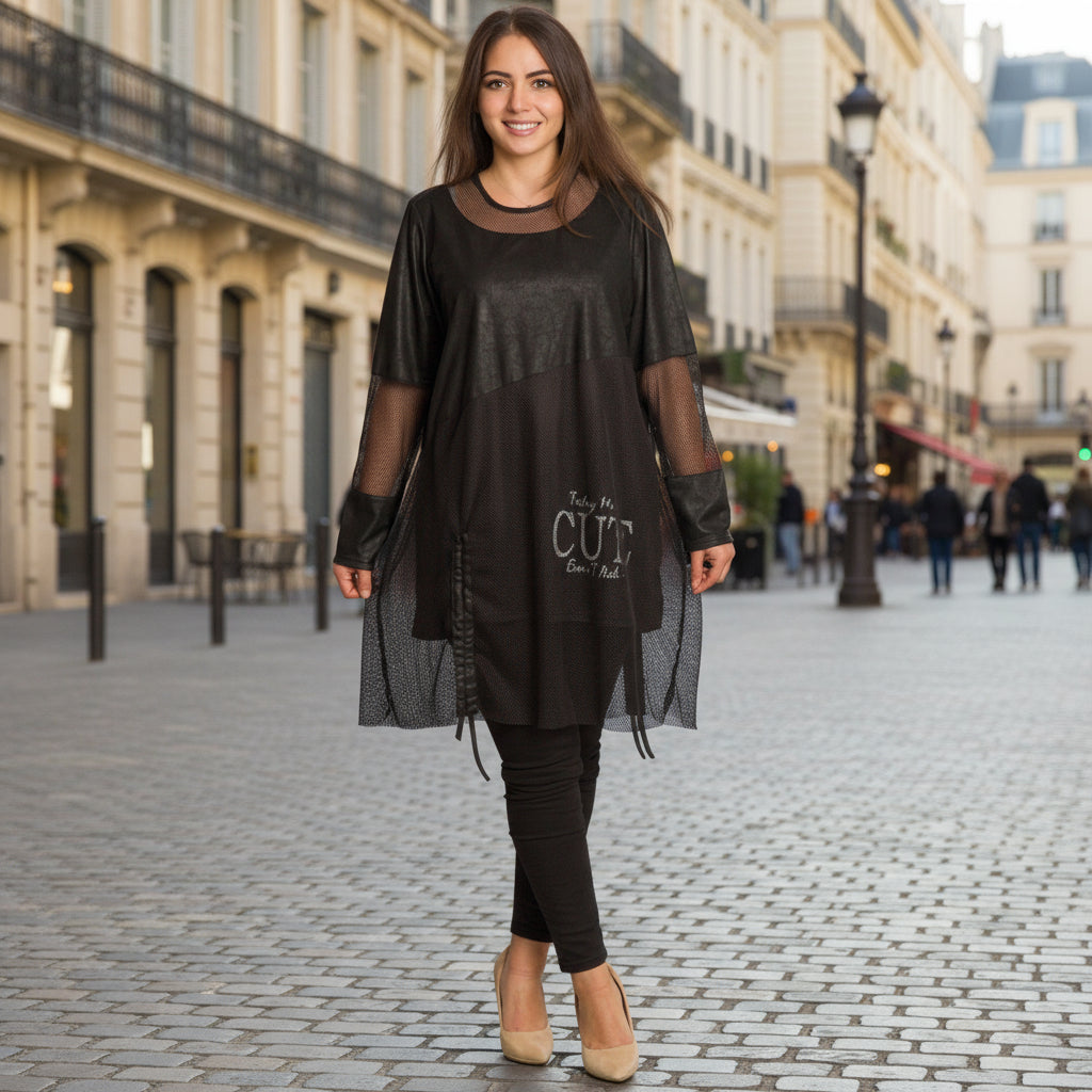 Tunică lejeră în mărimi mari cu accente din piele