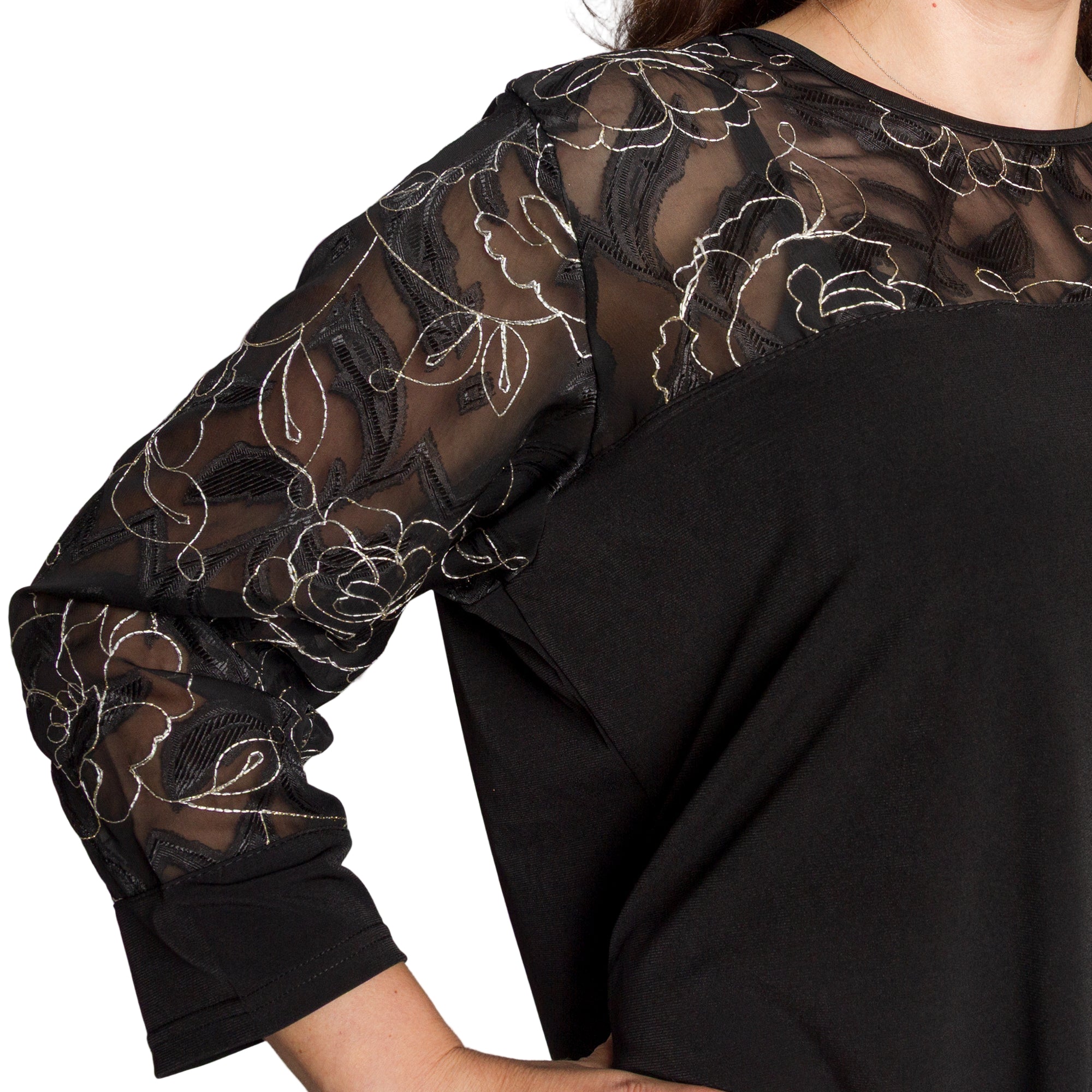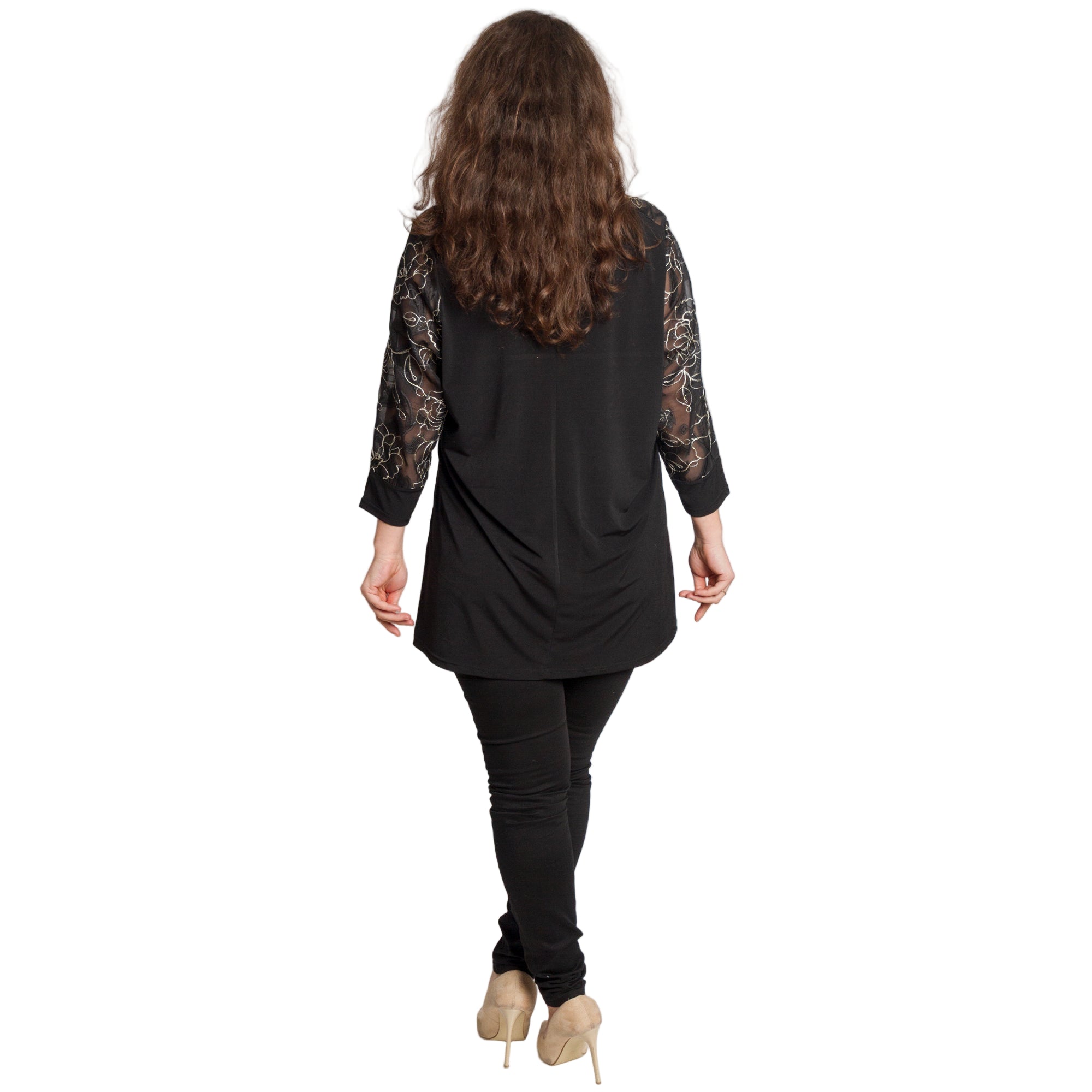 Adaugă culoare și eleganță ținutei tale cu această tunică lejeră în mărimi maxi. Modelul prezintă un imprimeu superb în tonuri bogate de verde și albastru, completat de un accent diagonal albastru închis din țesătură satinată, care adaugă rafinament și alungește vizual silueta. Croiul este lejer și confortabil, cu decolteu rotund și mâneci scurte - o alegere ideală atât pentru ocazii de zi cu zi, cât și pentru ocazii mai formale.