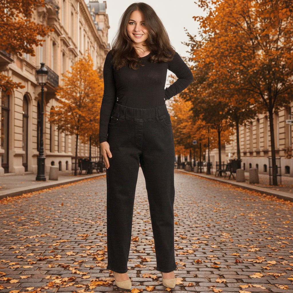 Blugi de damă în culoarea albastră clasică, confecționați din 95% bumbac și 5% elastan. Model strâmt cu elastic confortabil în talie și legături pentru confort optim. Ideali pentru sezonul toamnă-iarnă, acești blugi drepți combină stilul și confortul pentru toate ocaziile.