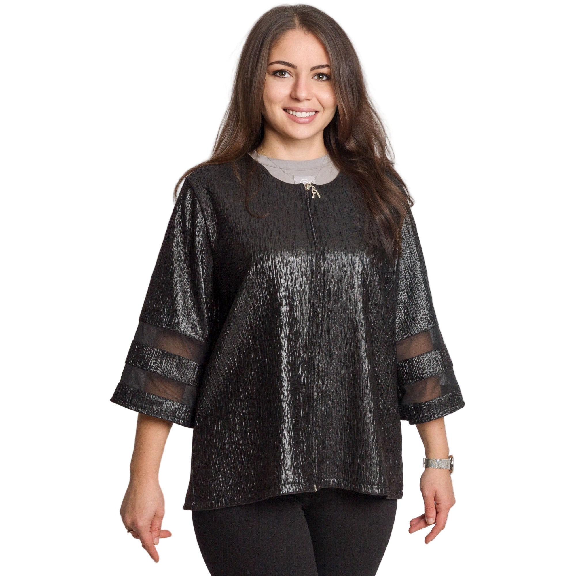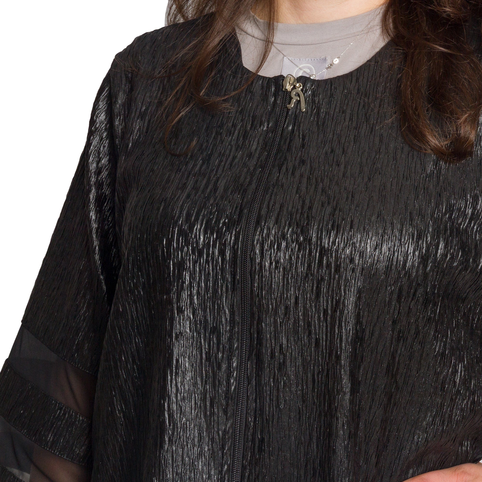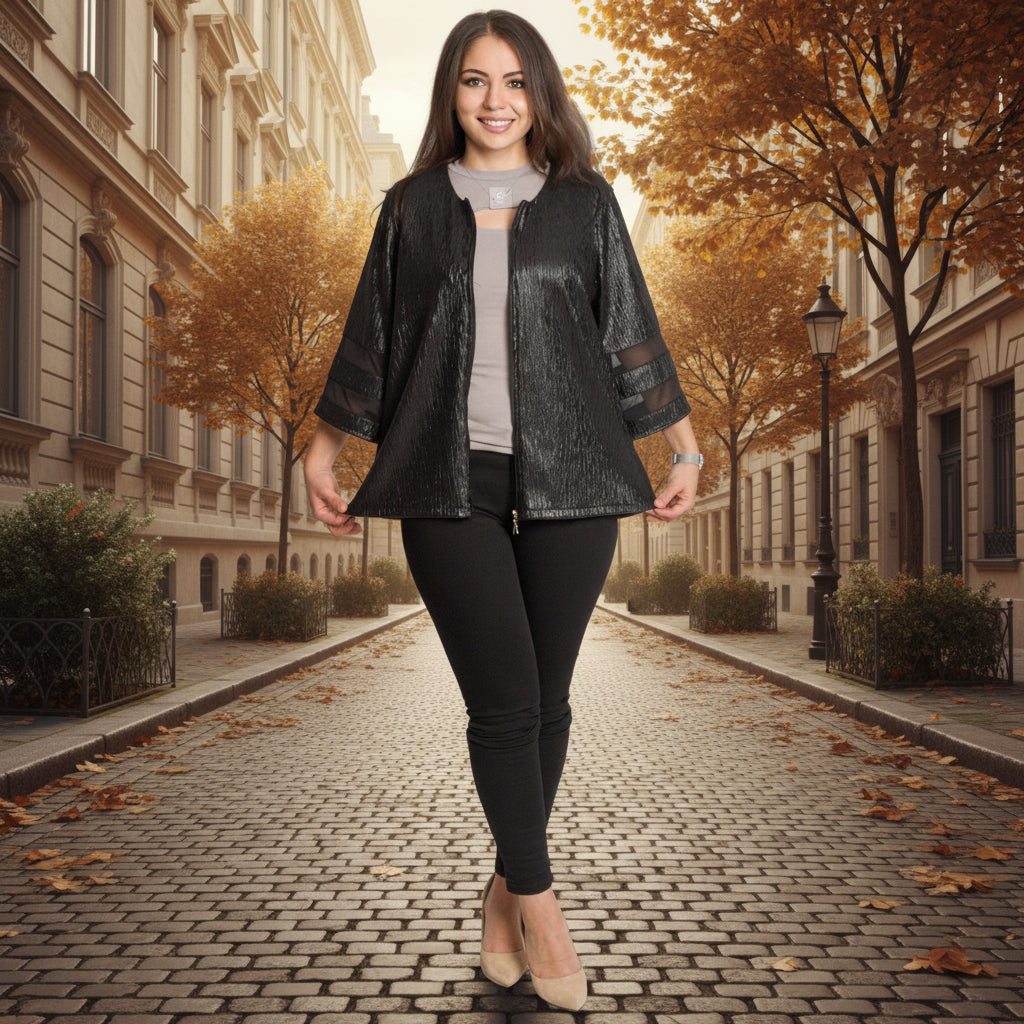 Această jachetă formală este o combinație între eleganța modernă și confort, fiind perfectă pentru ocazii formale. Fabricată din 100% poliester, oferă confort și libertate de mișcare. Se închide cu fermoar în față și are detalii transparente elegante pe mâneci, care adaugă un aspect modern și sofisticat. Este potrivită atât pentru evenimente formale și de seară, cât și pentru ținute elegante de zi cu zi.
