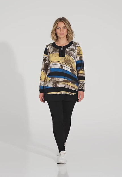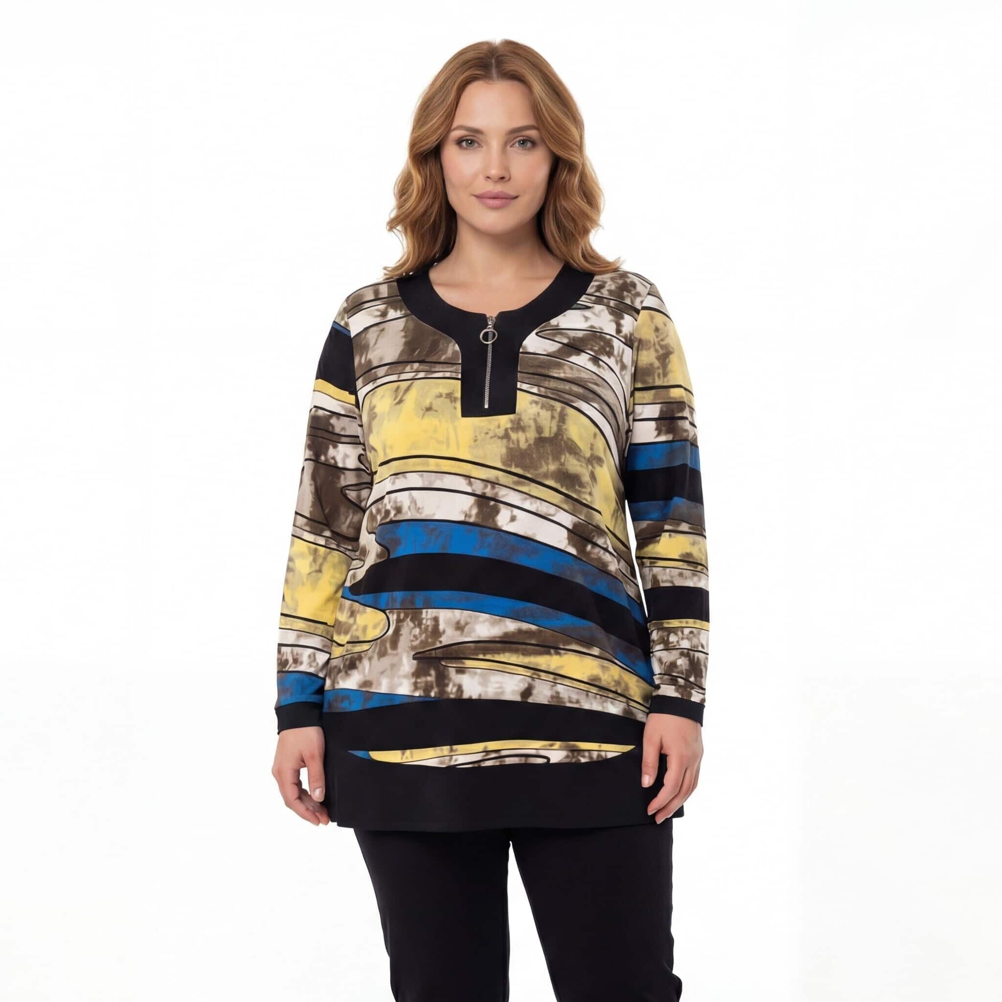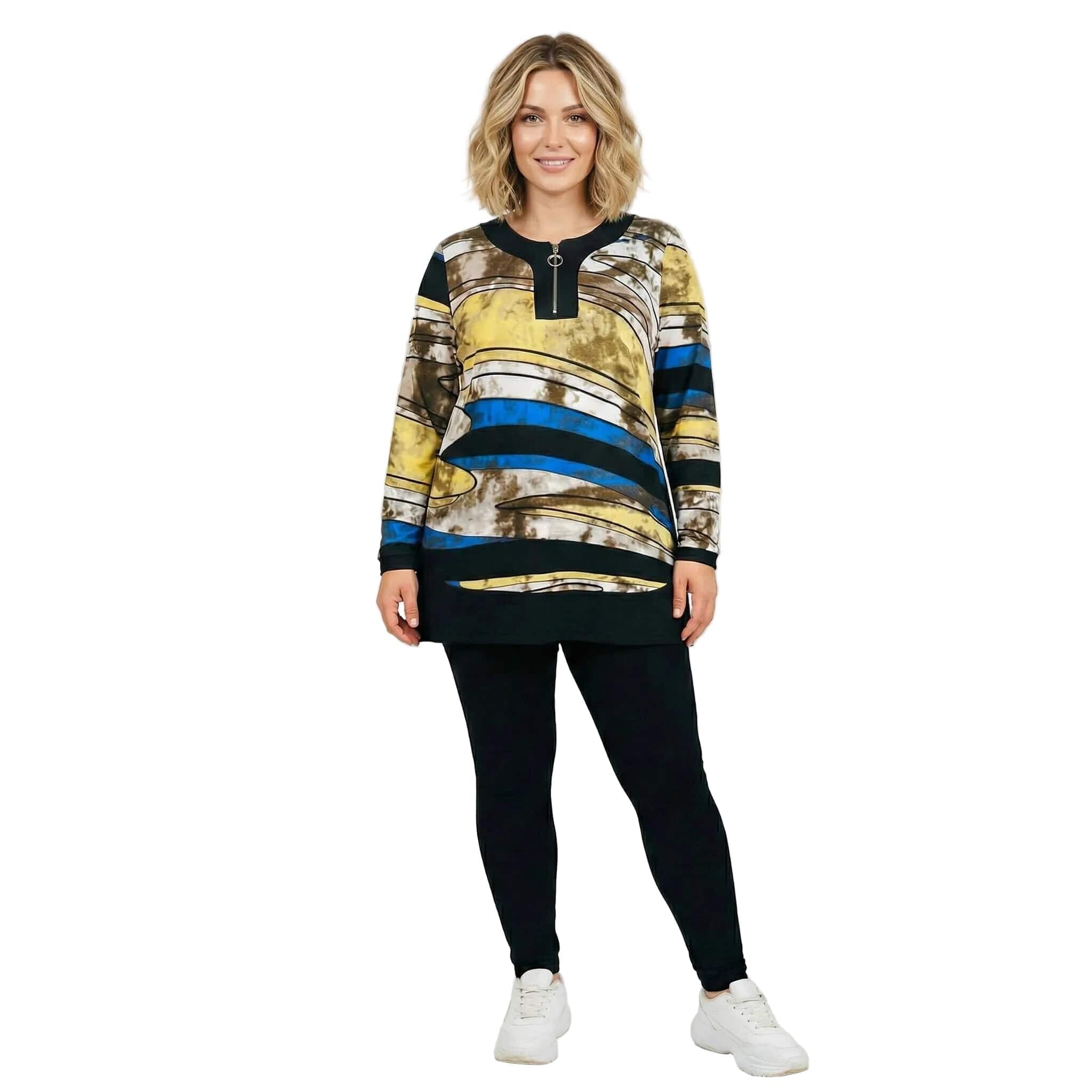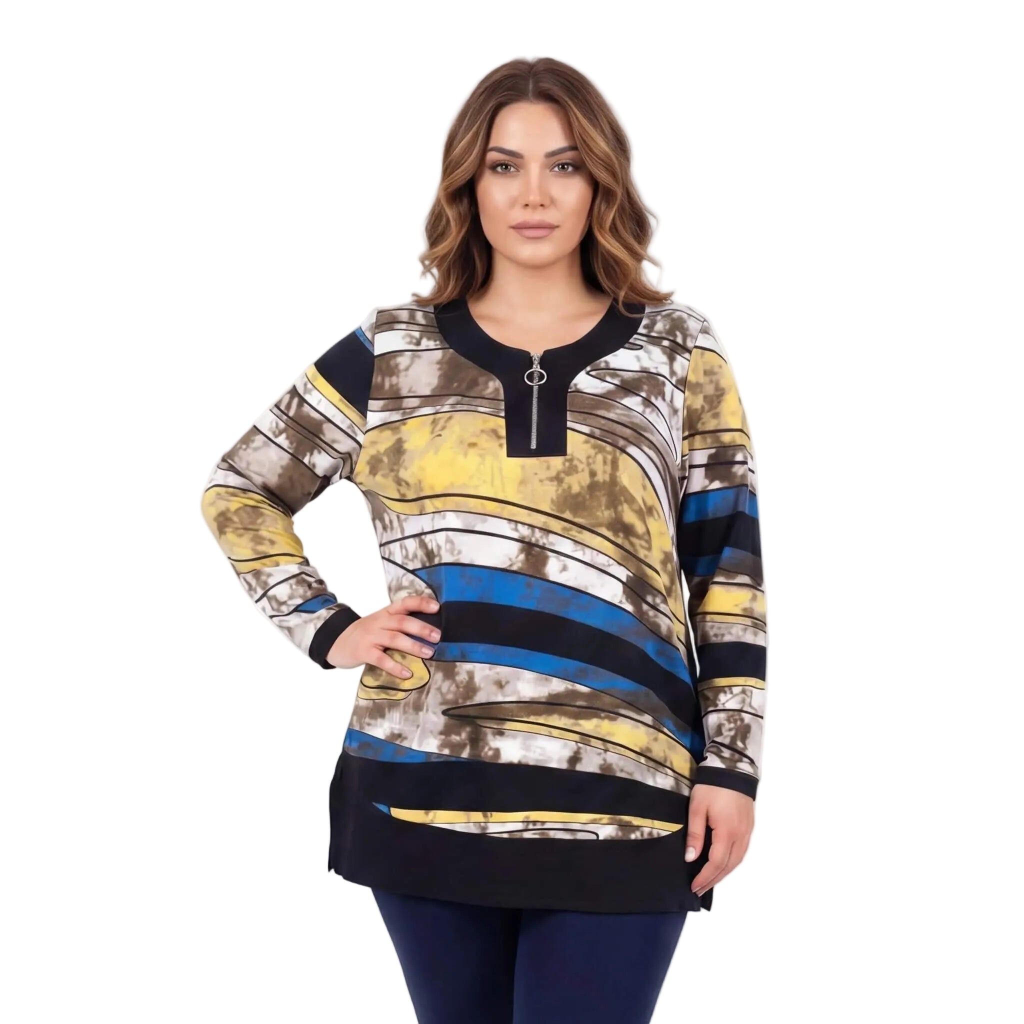 Tunică lungă maxi cu fermoar și imprimeu multicolor