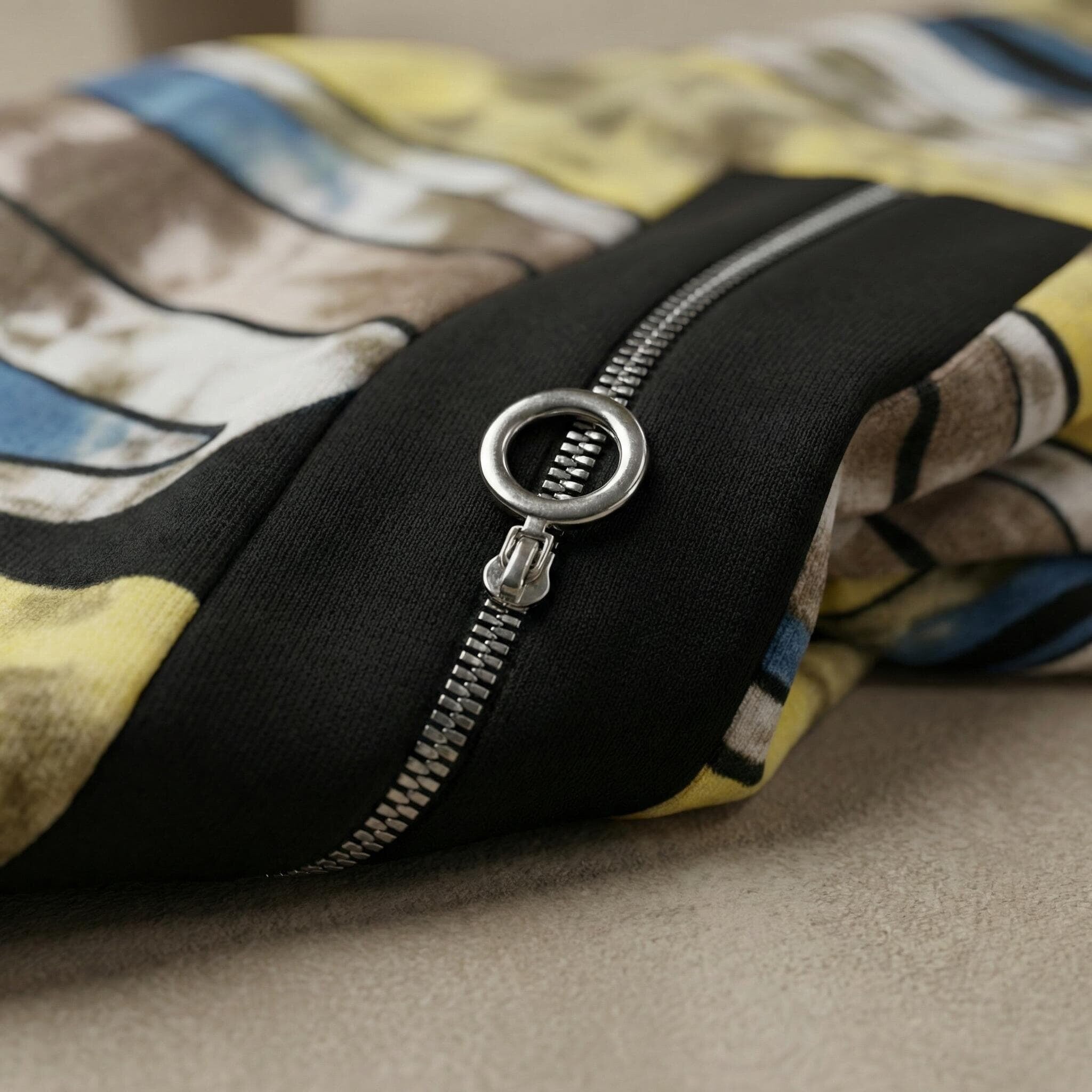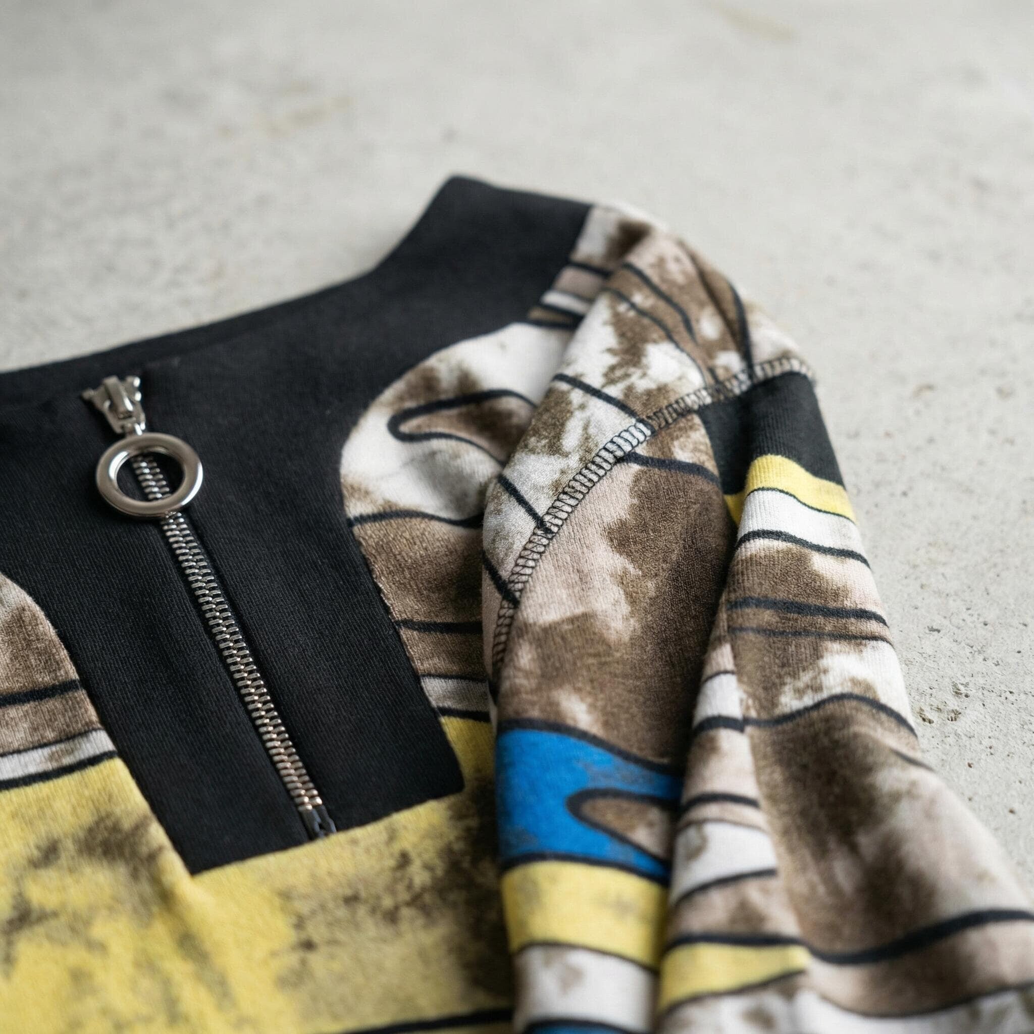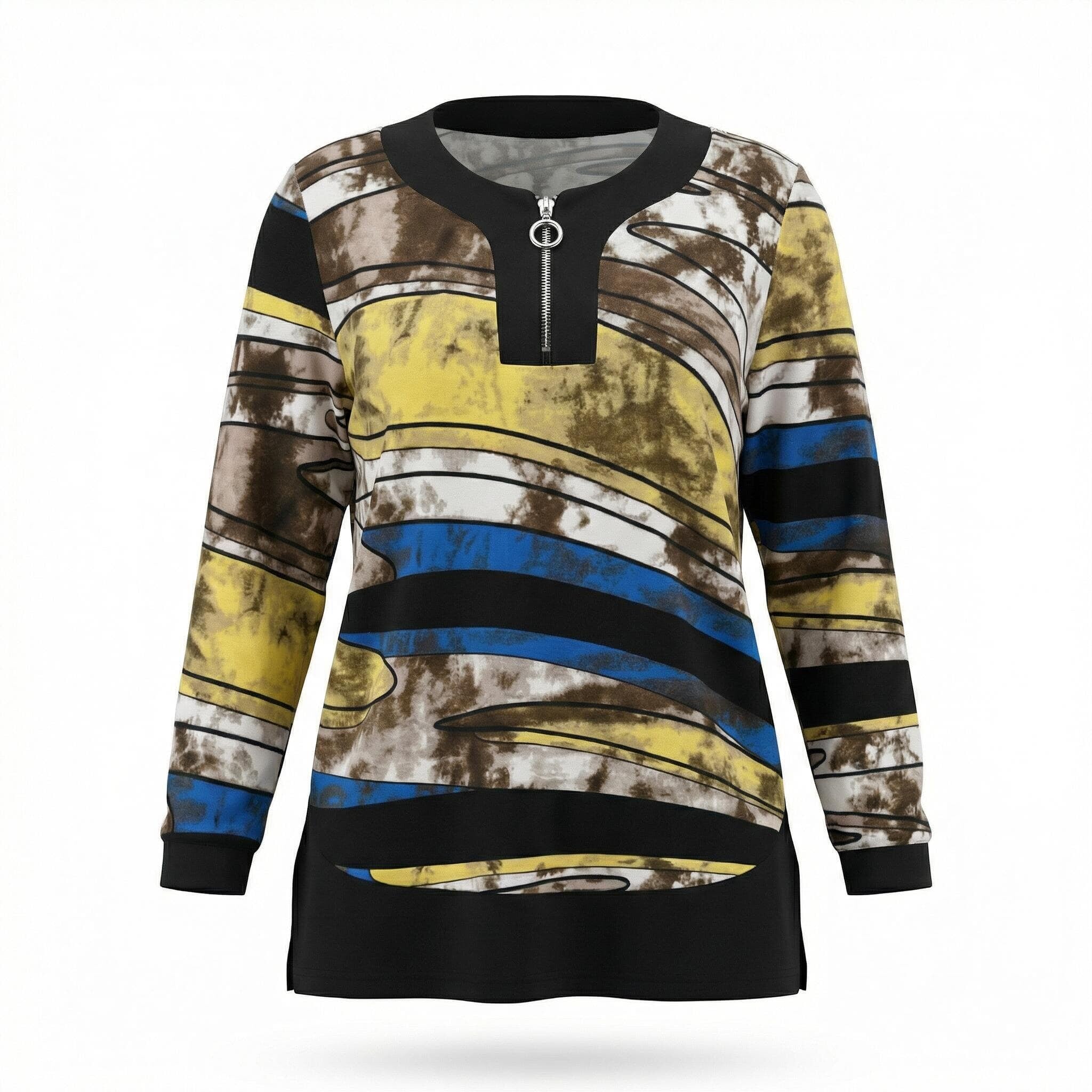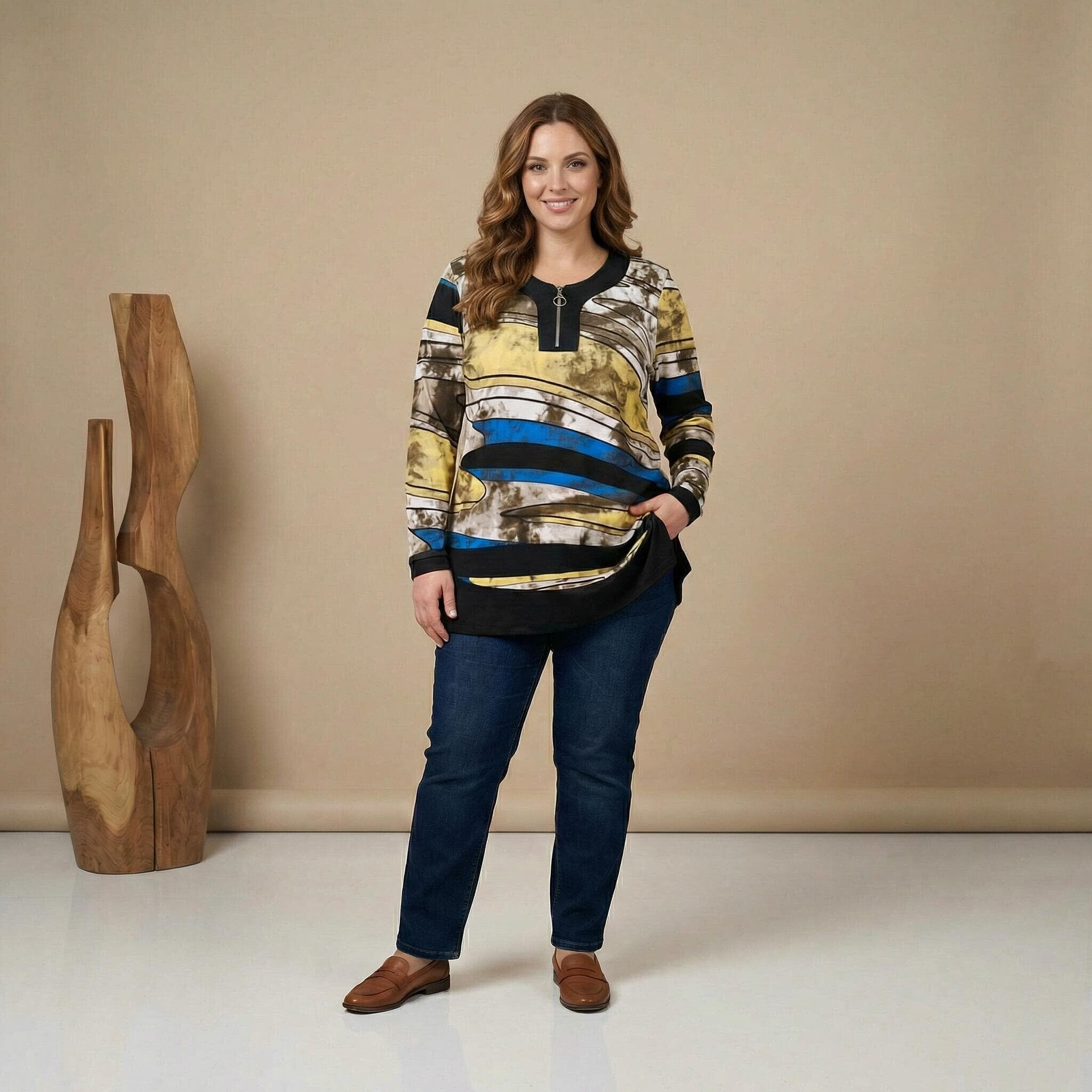 Tunică lungă maxi cu fermoar și imprimeu multicolor