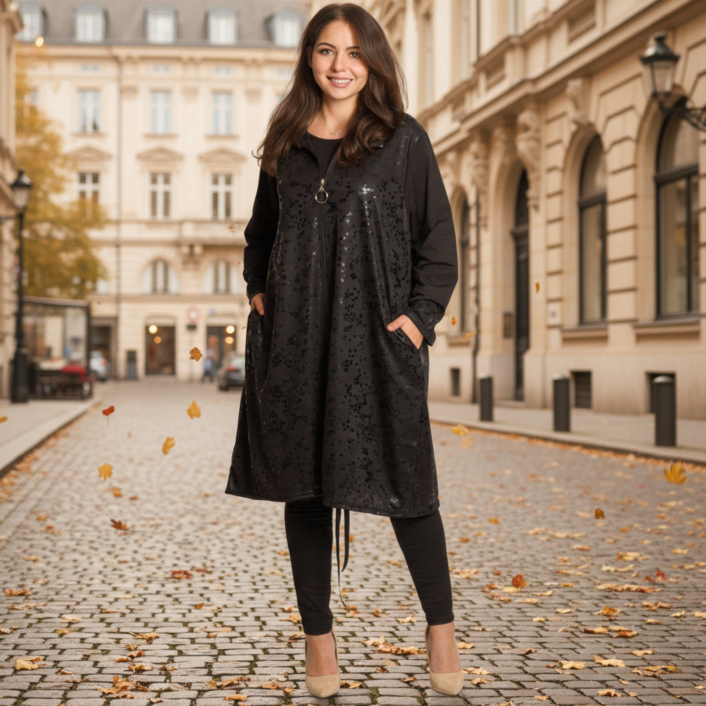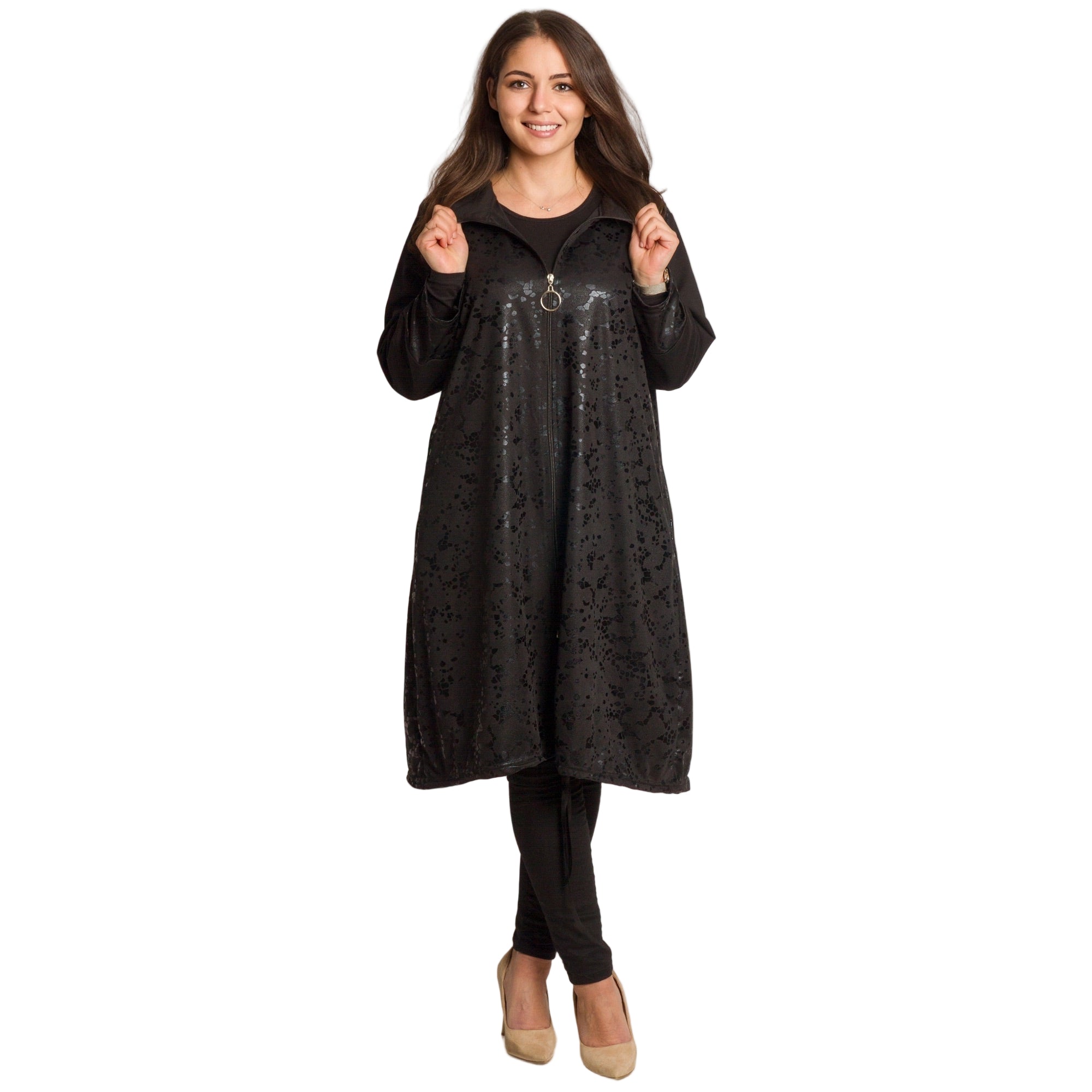 Cardigan maxi elegant cu buzunare în culoarea mocha - o alegere stilată și confortabilă. Se închide cu fermoar, modelul are buzunare practice. Croiul lejer și materialul elastic oferă confort pe tot parcursul zilei. Fabricat din 95% viscoză și 5% elastan.