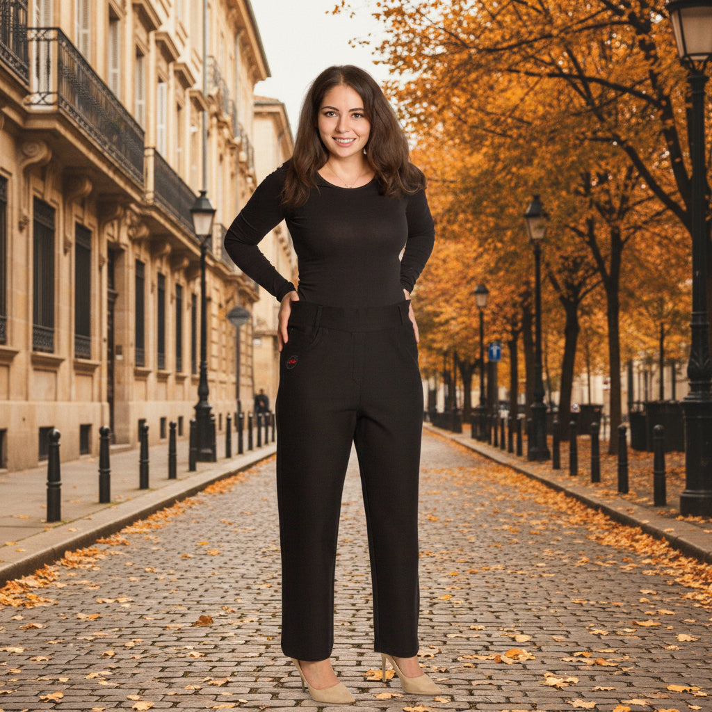 Blugi de damă în culoarea albastră clasică, confecționați din 95% bumbac și 5% elastan. Model strâmt cu elastic confortabil în talie și legături pentru confort optim. Ideali pentru sezonul toamnă-iarnă, acești blugi drepți combină stilul și confortul pentru toate ocaziile.