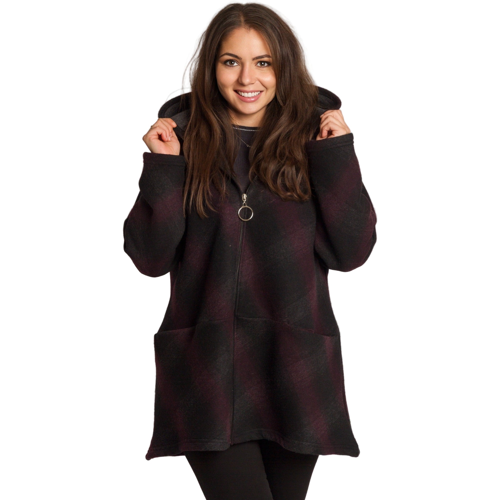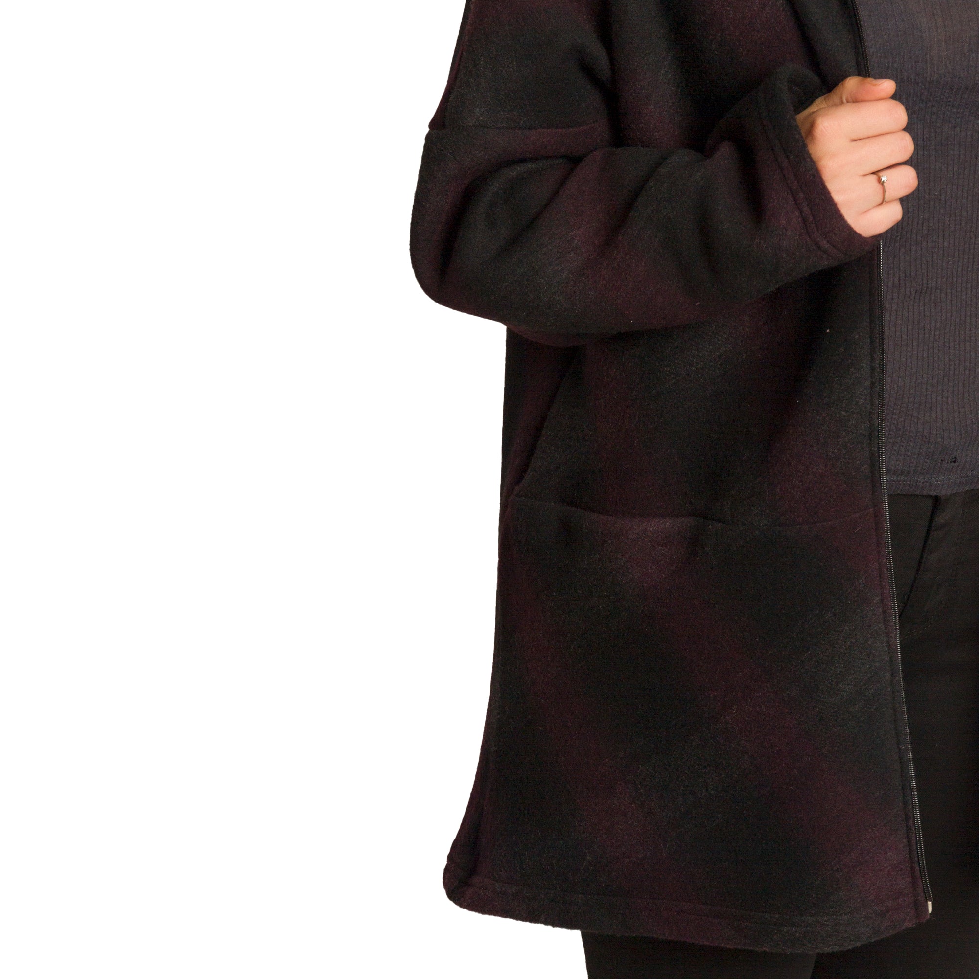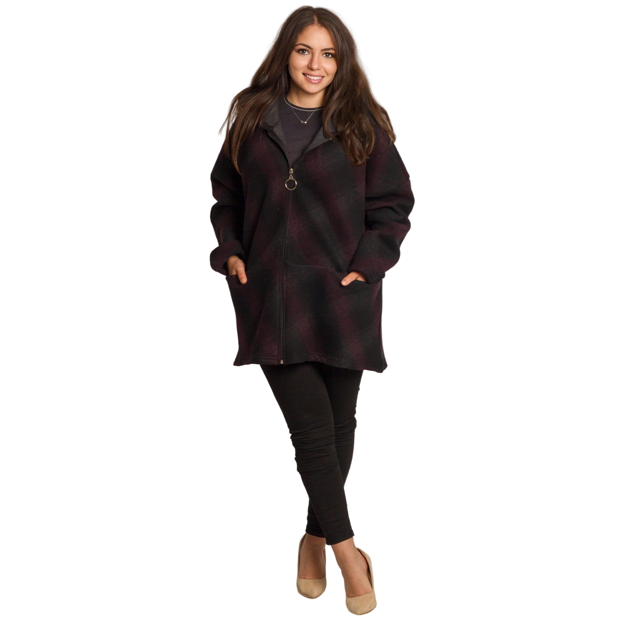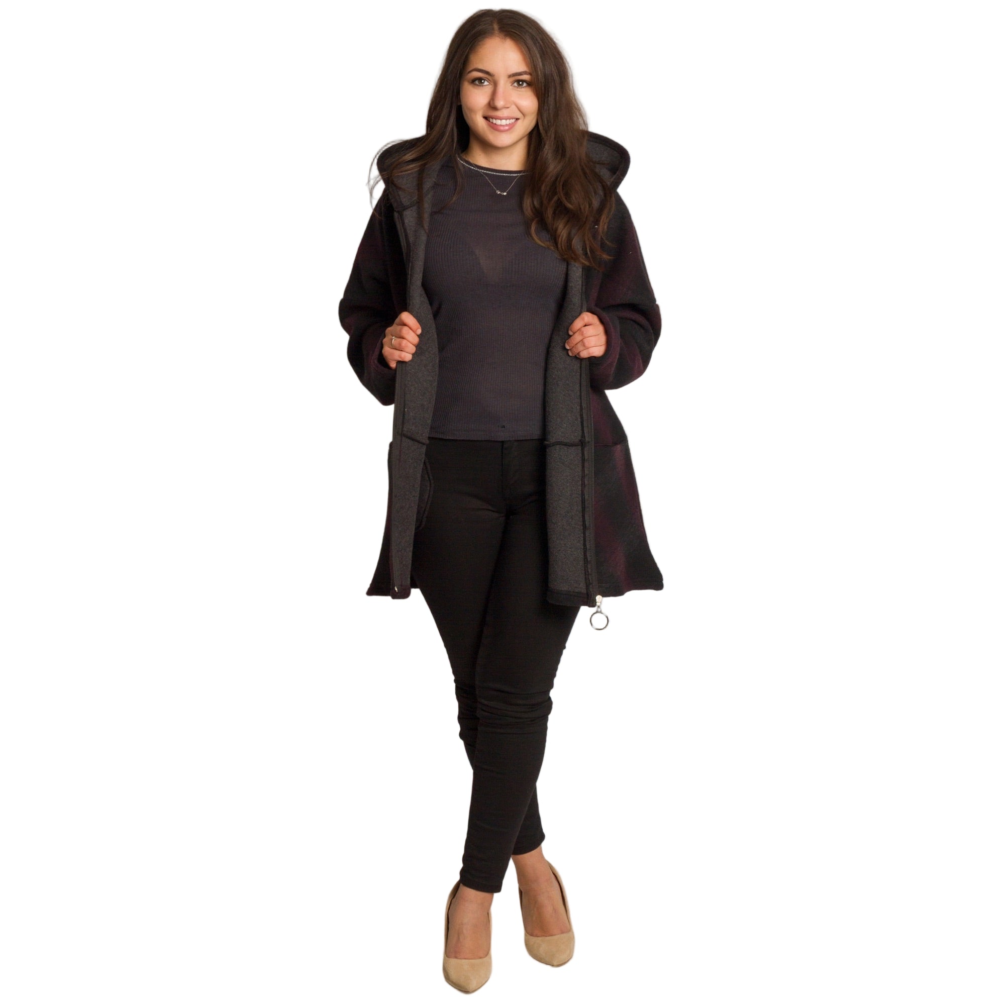 Palton bicolor cu glugă, îmbinând stilul și căldura. Model cu croială decupată și fermoar pentru o închidere convenabilă, confecționat din 50% lână și 50% acril. Alegerea ideală pentru zilele reci de iarnă.
