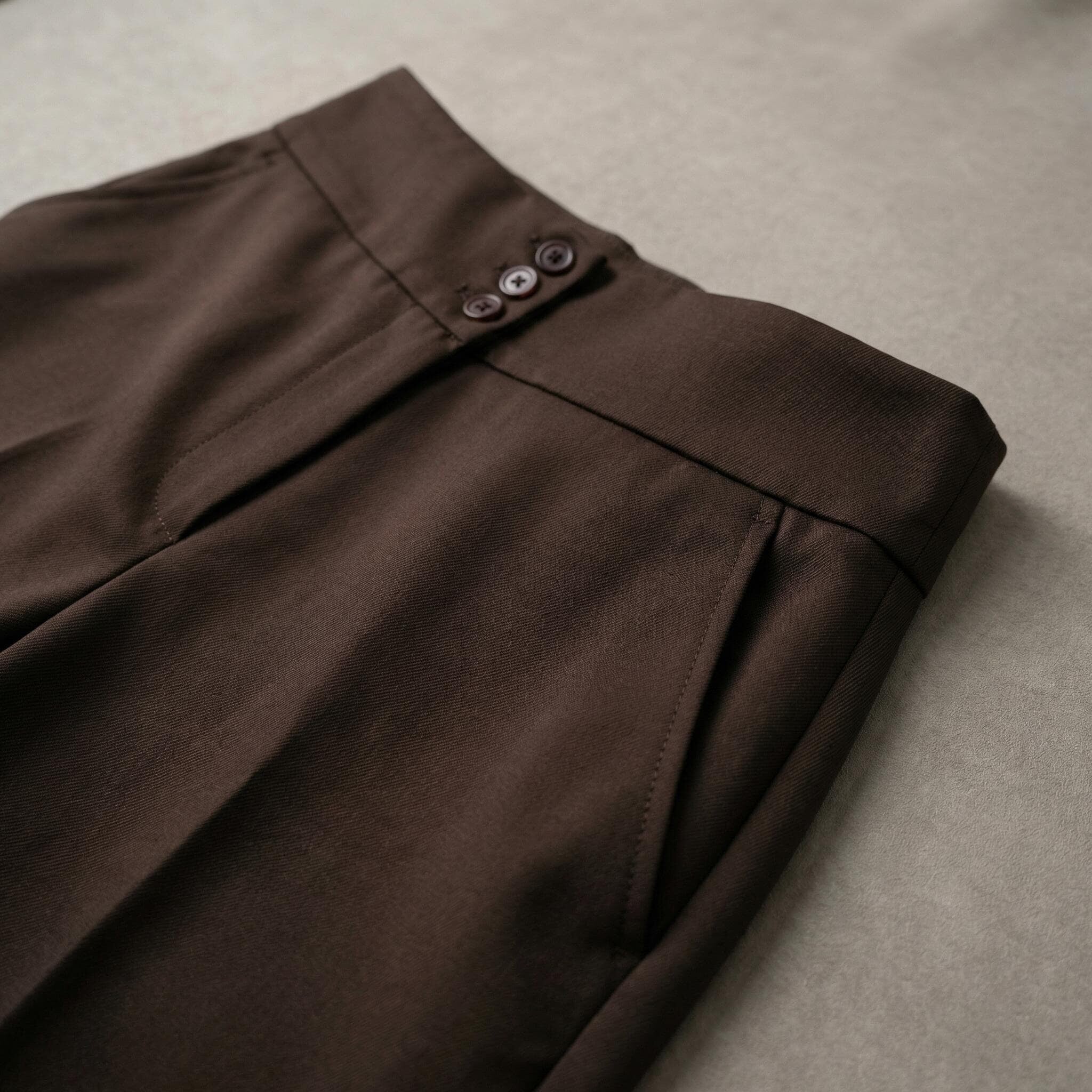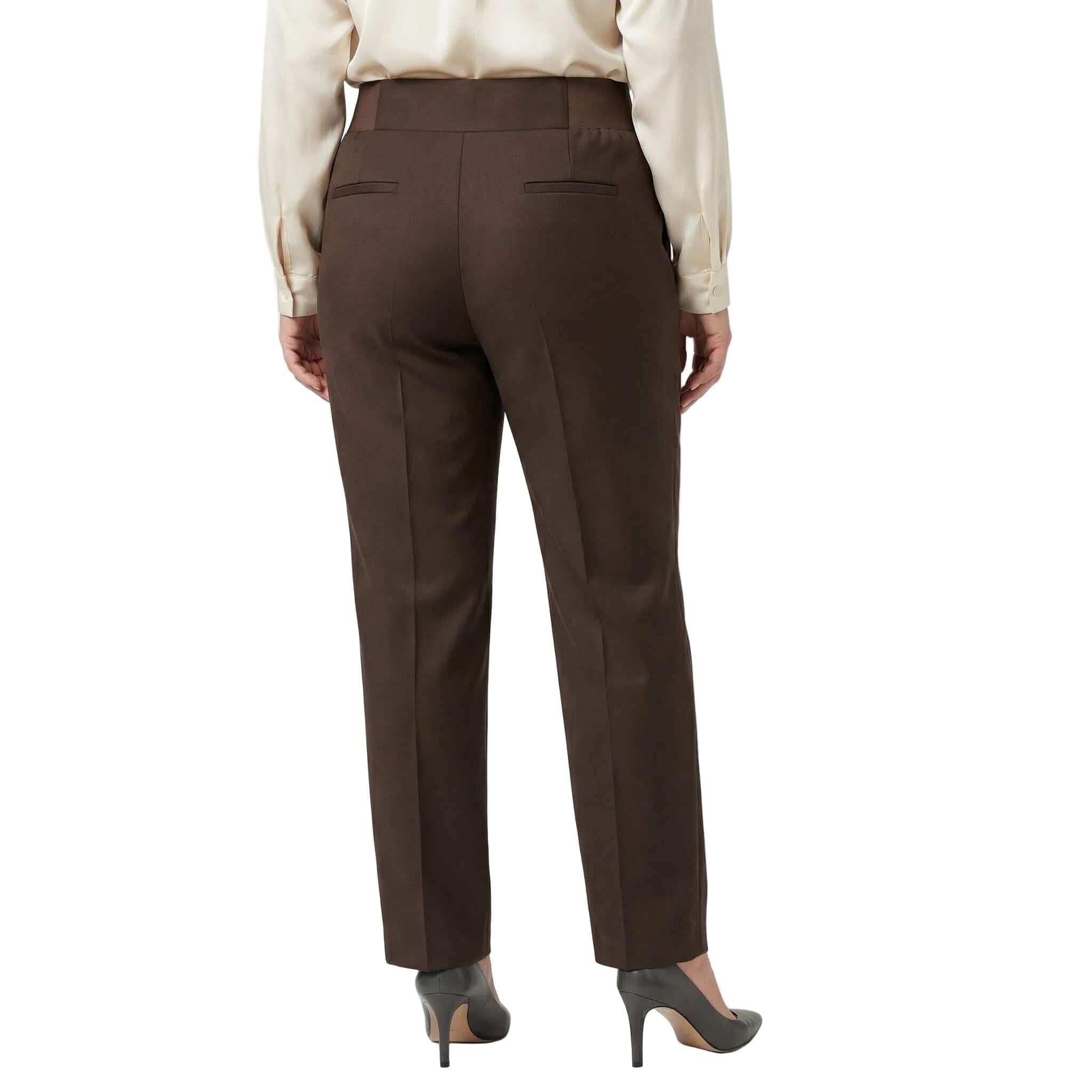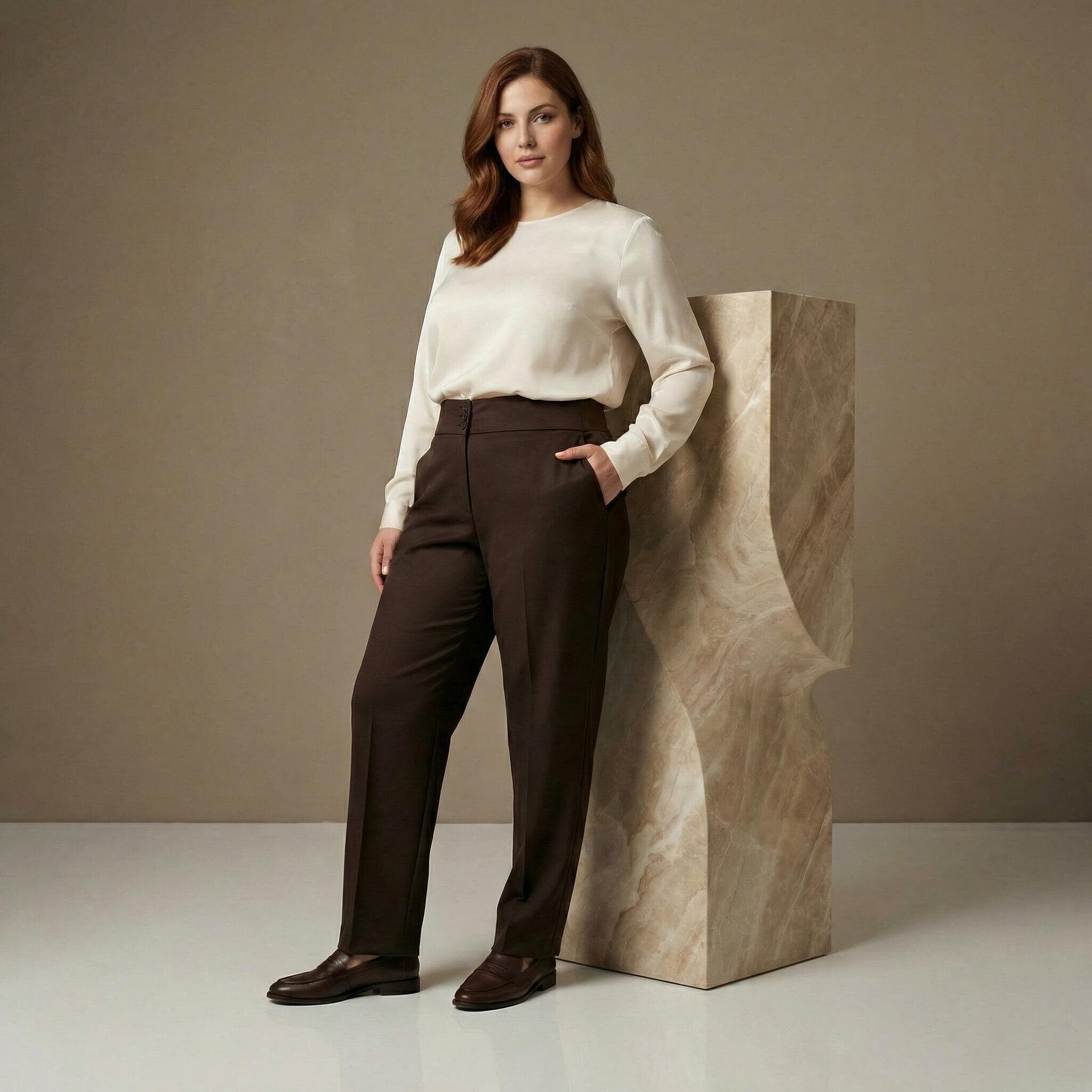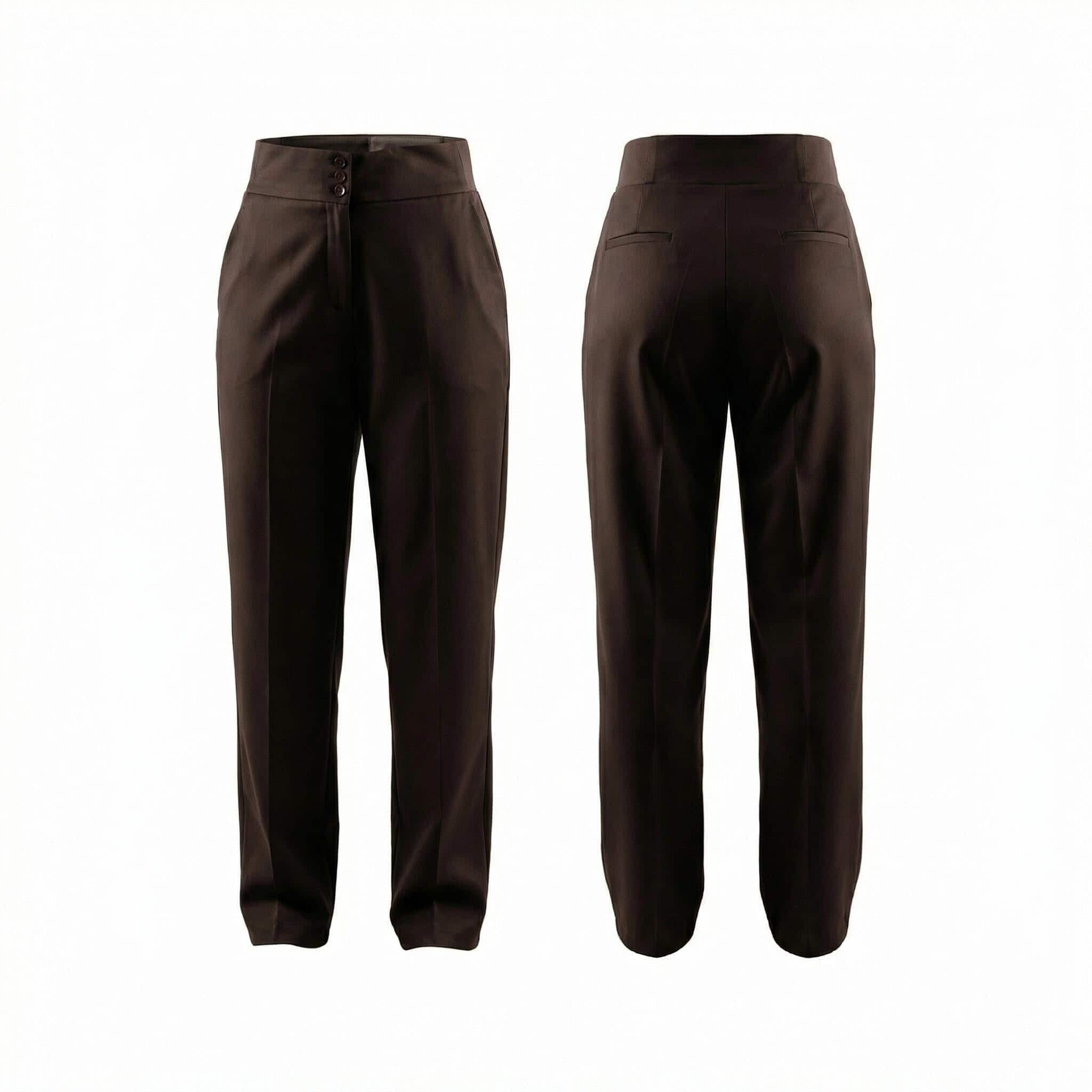 Pantaloni eleganți maro cu talie înaltă și nasturi, mărimi mari