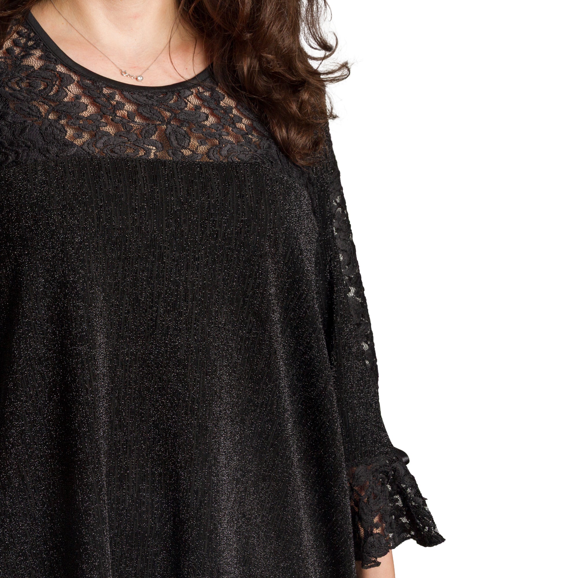 Adaugă culoare și eleganță ținutei tale cu această tunică lejeră în mărimi maxi. Modelul prezintă un imprimeu superb în tonuri bogate de verde și albastru, completat de un accent diagonal albastru închis din țesătură satinată, care adaugă rafinament și alungește vizual silueta. Croiul este lejer și confortabil, cu decolteu rotund și mâneci scurte - o alegere ideală atât pentru ocazii de zi cu zi, cât și pentru ocazii mai formale.