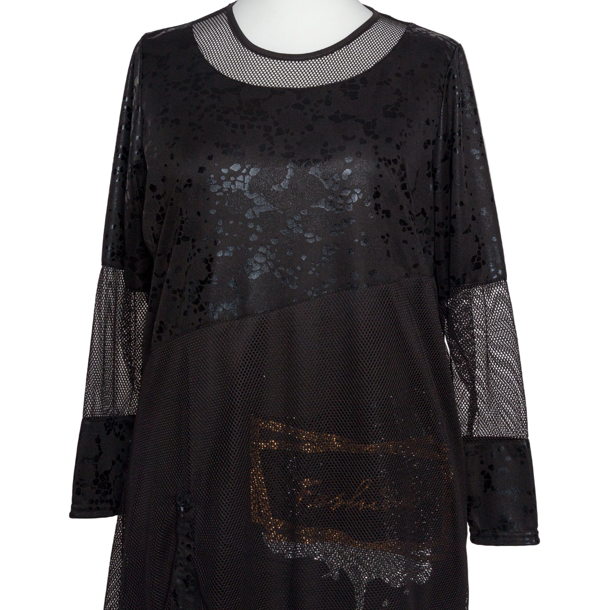 Adaugă culoare și eleganță ținutei tale cu această tunică lejeră în mărimi maxi. Modelul prezintă un imprimeu superb în tonuri bogate de verde și albastru, completat de un accent diagonal albastru închis din țesătură satinată, care adaugă rafinament și alungește vizual silueta. Croiul este lejer și confortabil, cu decolteu rotund și mâneci scurte - o alegere ideală atât pentru ocazii de zi cu zi, cât și pentru ocazii mai formale.