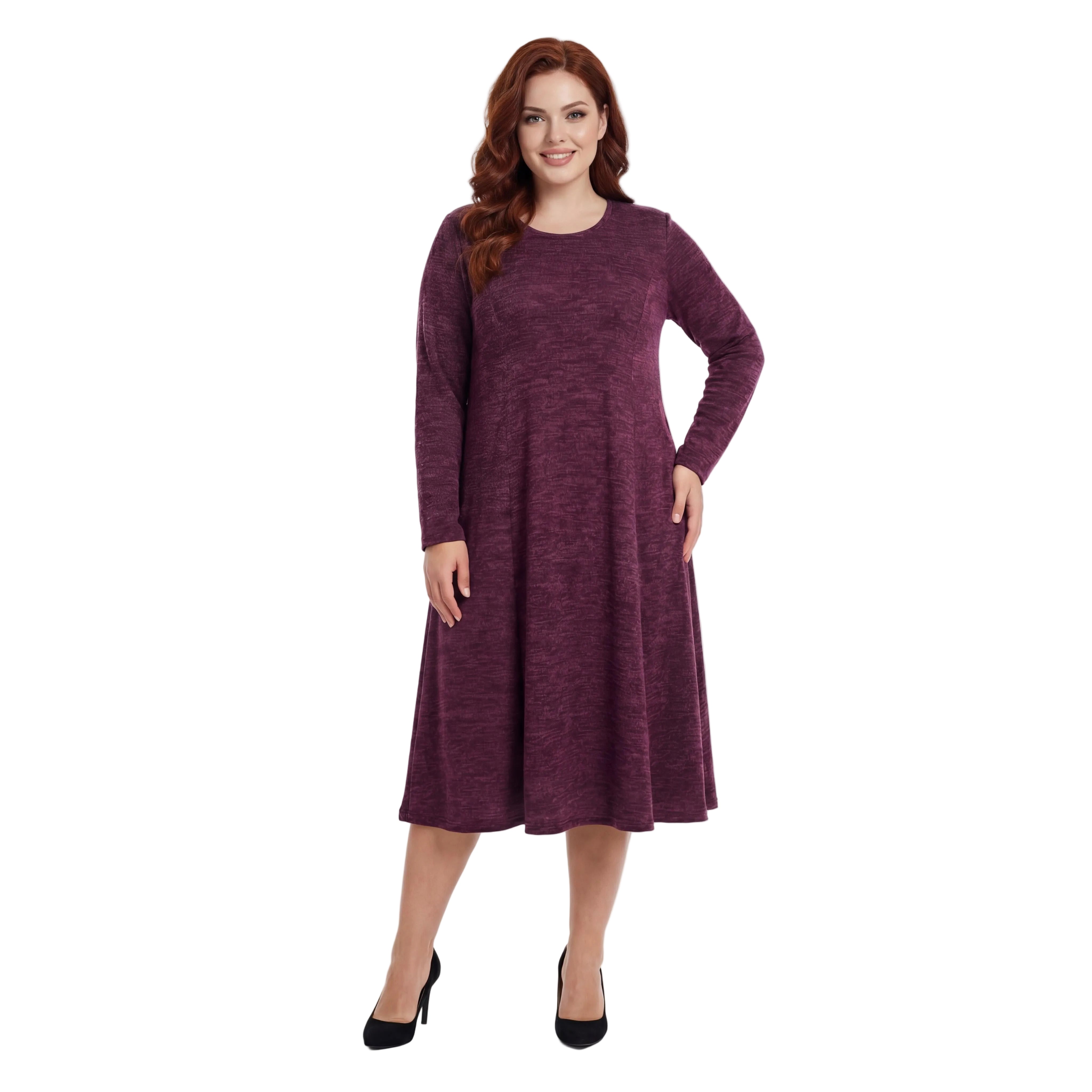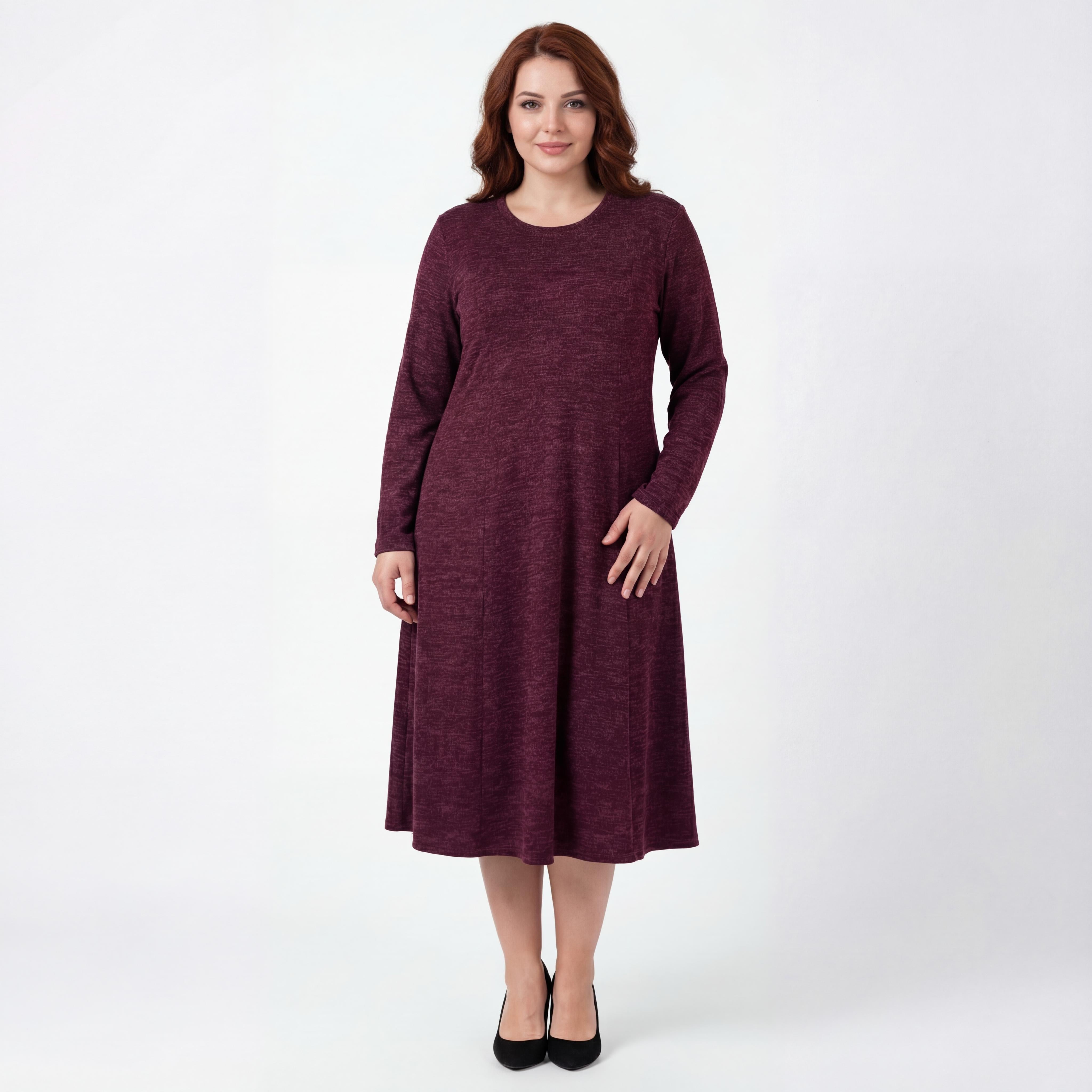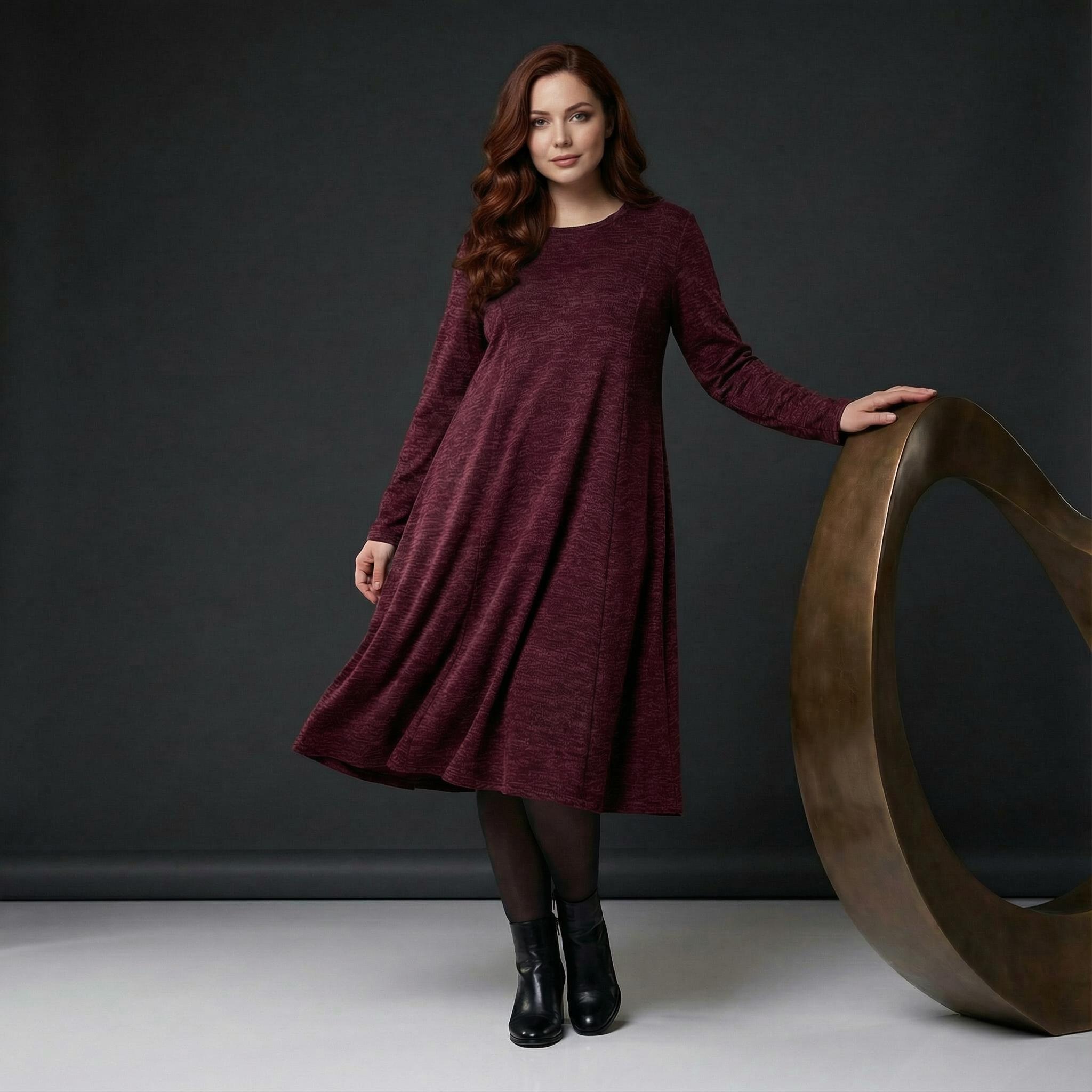 Подарете си усещане за лукс и безкомпромисен комфорт с нашата нова зимна рокля в цвят бордо меланж. Създадена специално, за да подчертае красотата на извивките на българската дама, тази рокля съчетава класическа елегантност с безупречно удобство. Плътната материя с високо съдържание на вискоза пада тежко и меко, осигурявайки топлина през студените дни. Специалната разкроена кройка с А-силует и вертикални оформящи шевове визуално издължава фигурата и осигурява пълна свобода на движенията, падайки свободно около ханша. Независимо дали се подготвяте за офис парти, семейна вечеря или официално събитие, тази рокля ще ви накара да се чувствате уверена, стилна и неустоима.