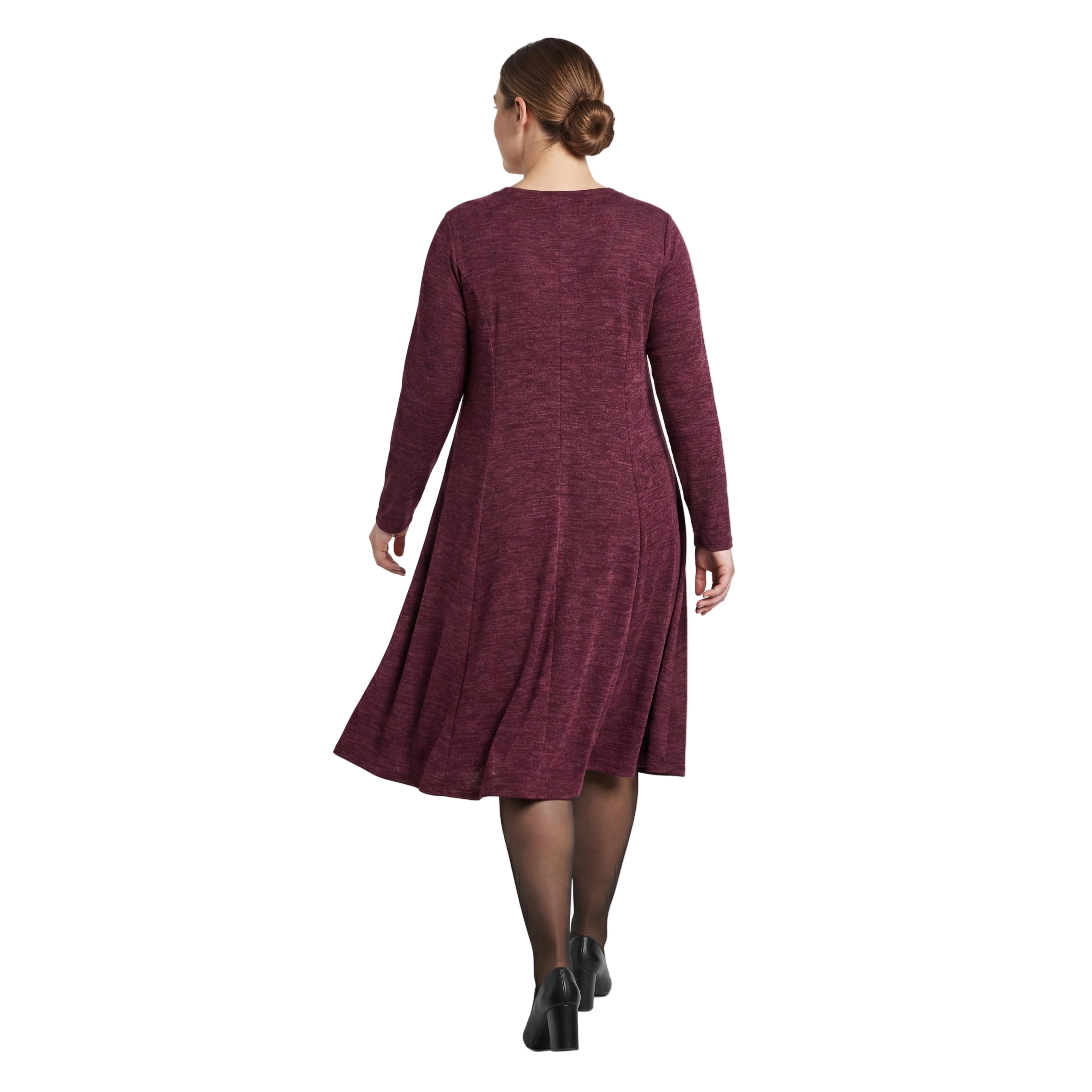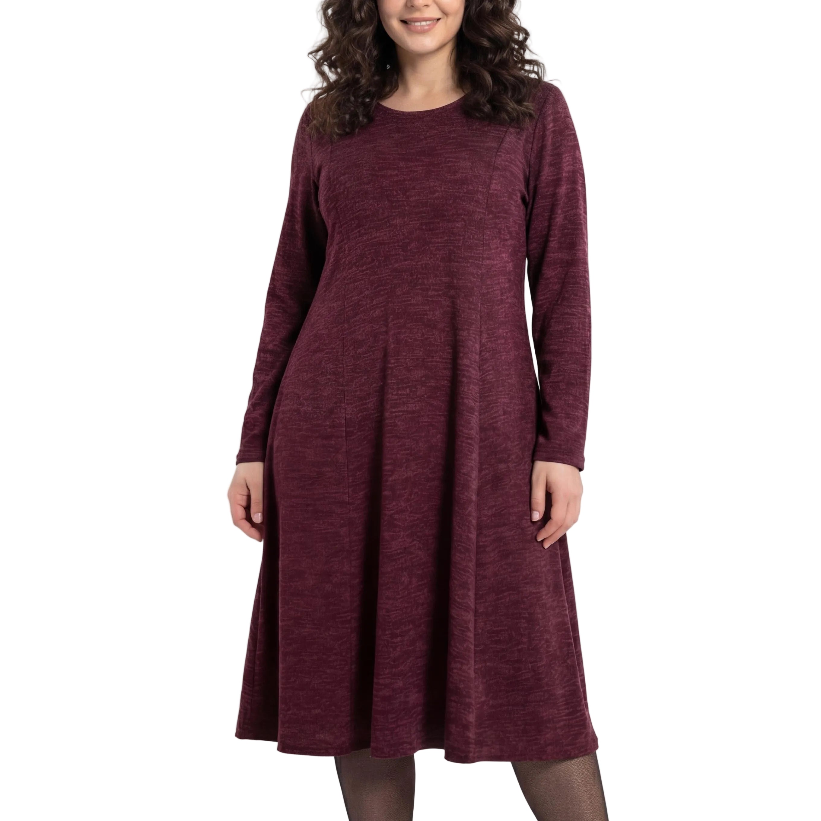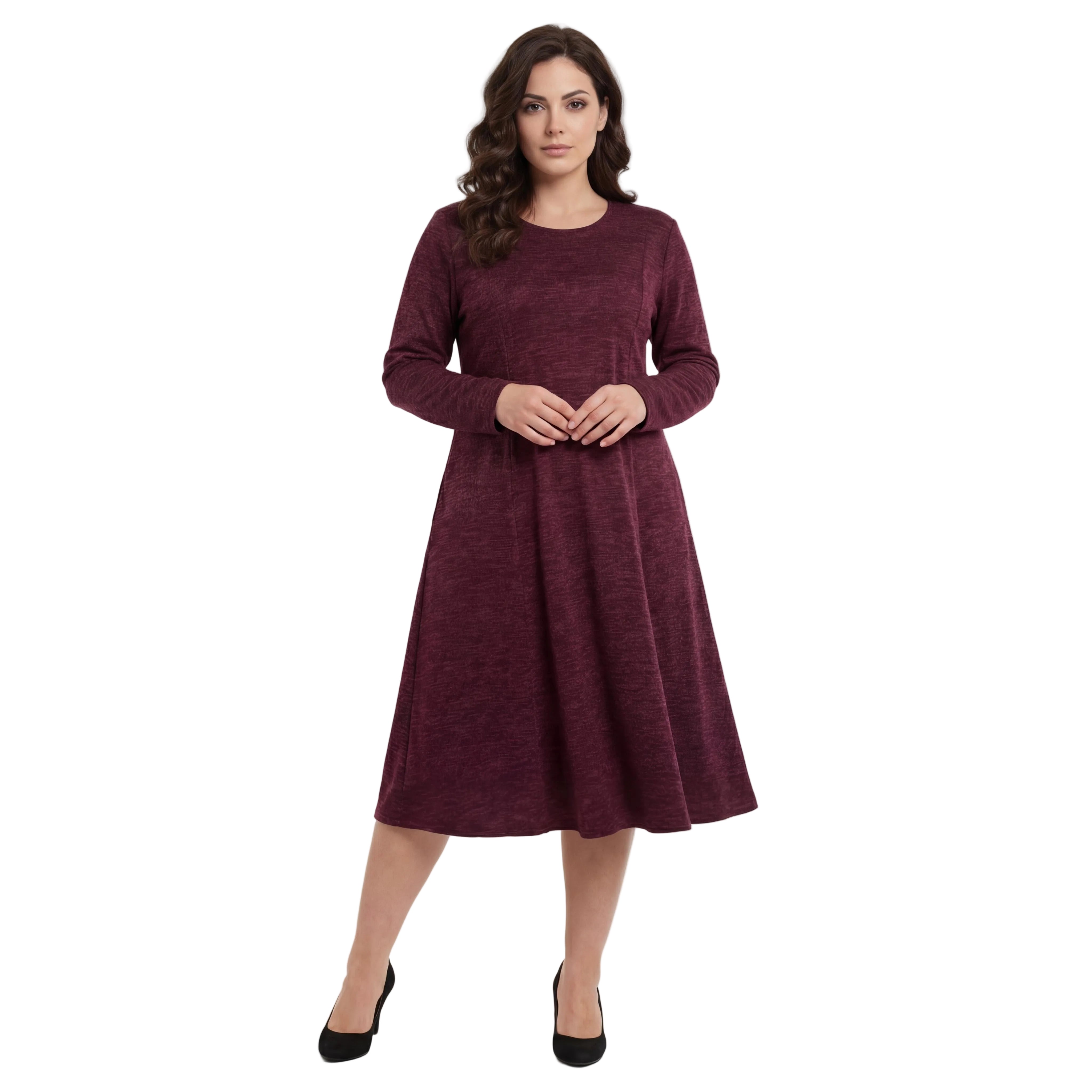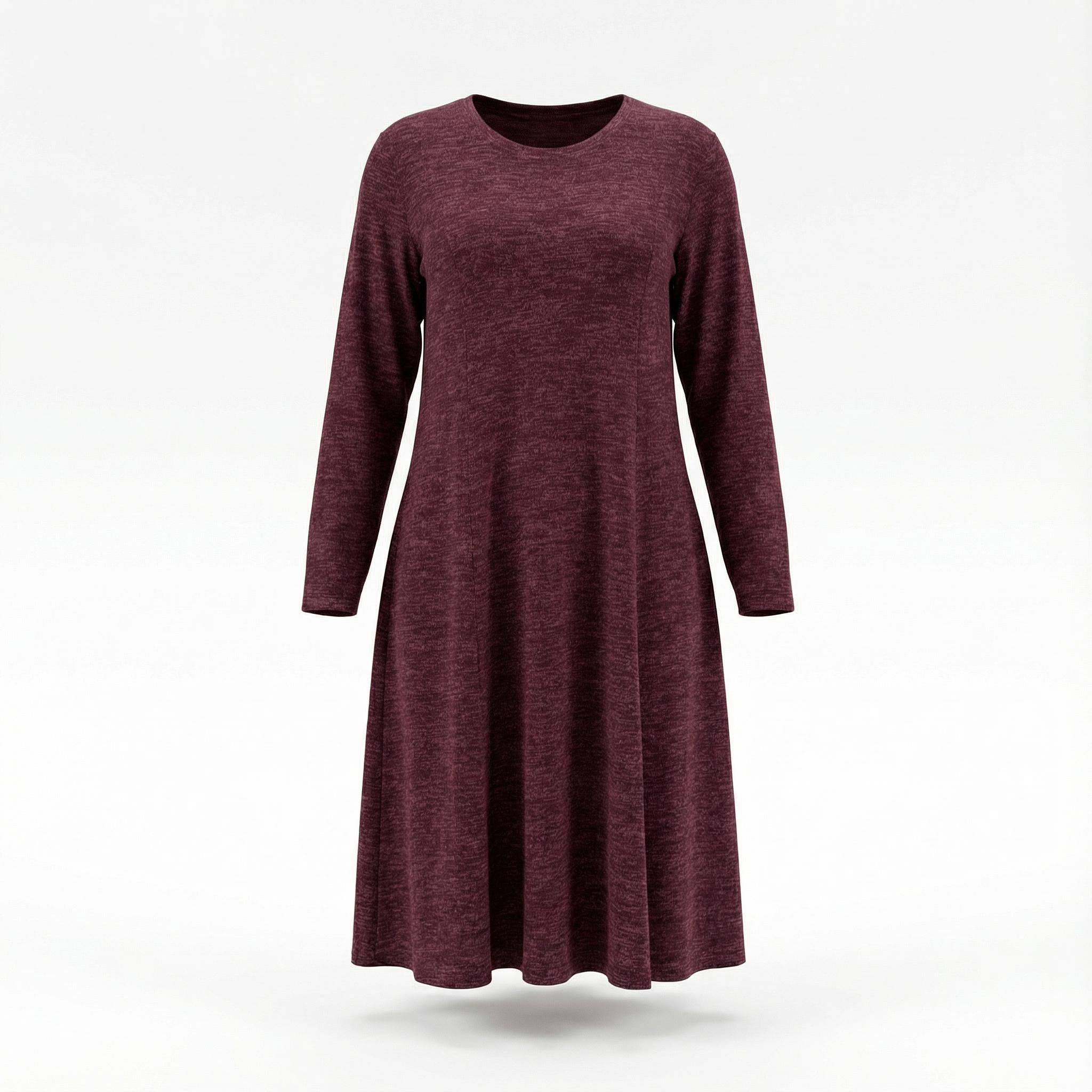 Подарете си усещане за лукс и безкомпромисен комфорт с нашата нова зимна рокля в цвят бордо меланж. Създадена специално, за да подчертае красотата на извивките на българската дама, тази рокля съчетава класическа елегантност с безупречно удобство. Плътната материя с високо съдържание на вискоза пада тежко и меко, осигурявайки топлина през студените дни. Специалната разкроена кройка с А-силует и вертикални оформящи шевове визуално издължава фигурата и осигурява пълна свобода на движенията, падайки свободно около ханша. Независимо дали се подготвяте за офис парти, семейна вечеря или официално събитие, тази рокля ще ви накара да се чувствате уверена, стилна и неустоима.