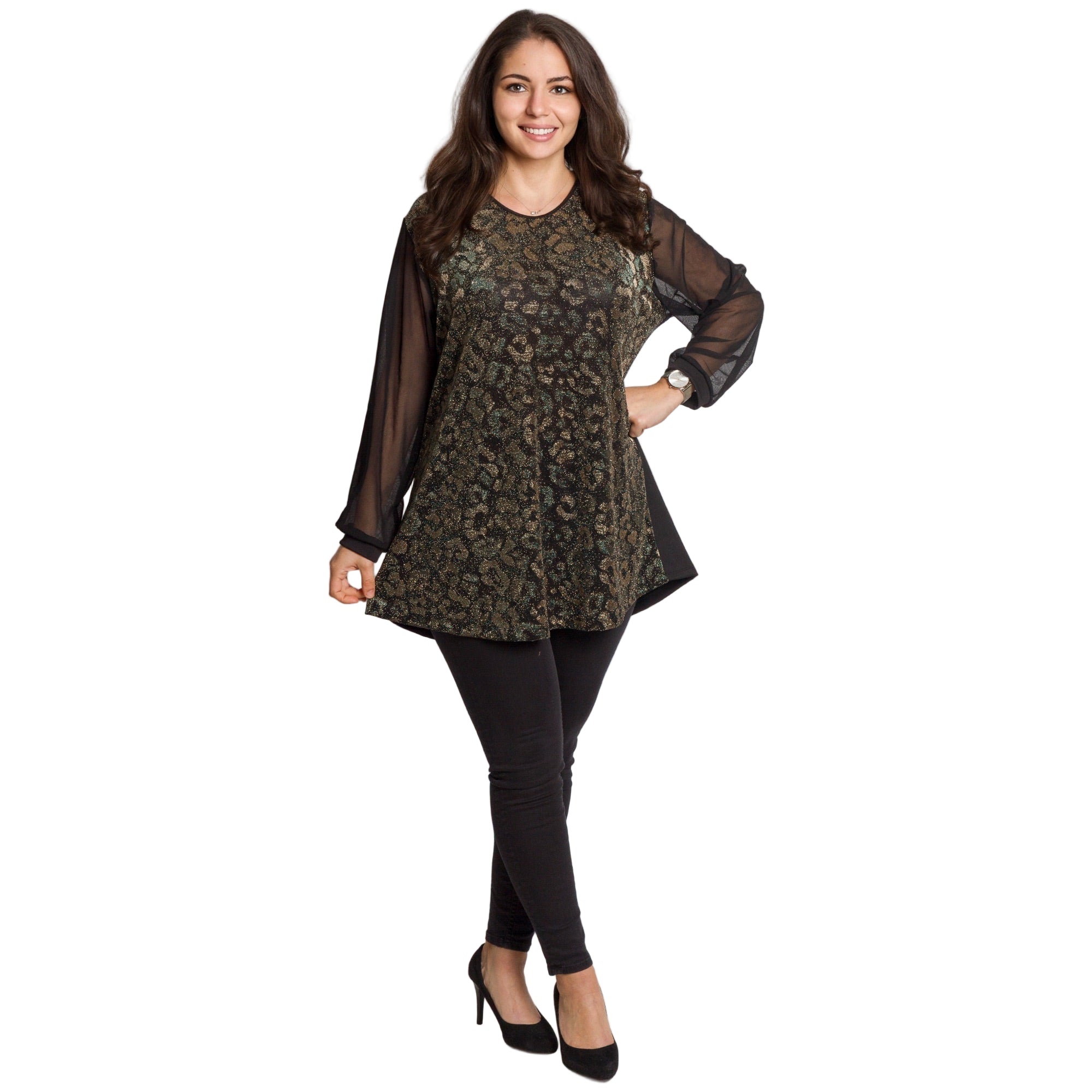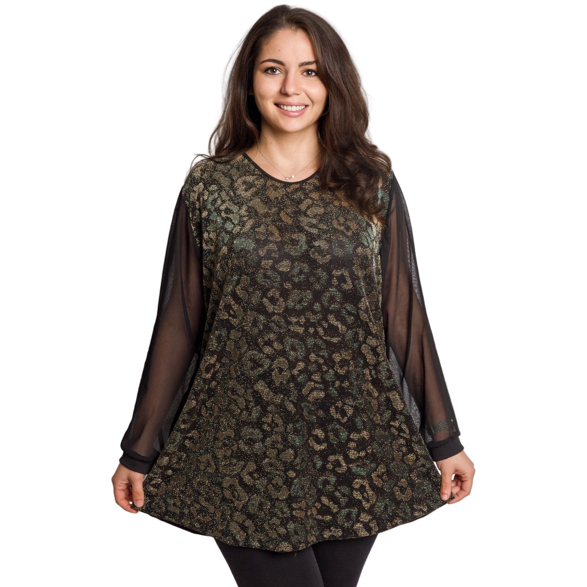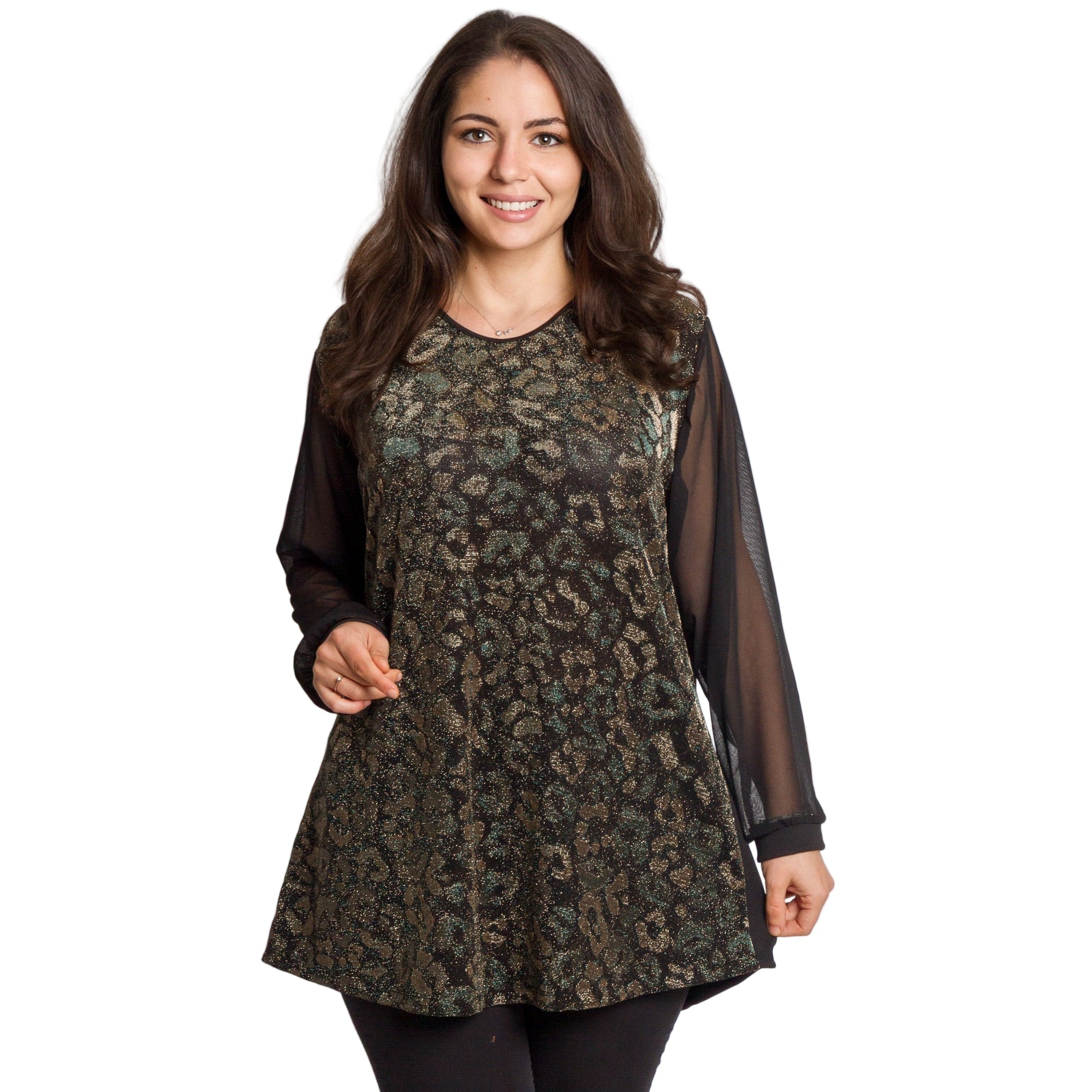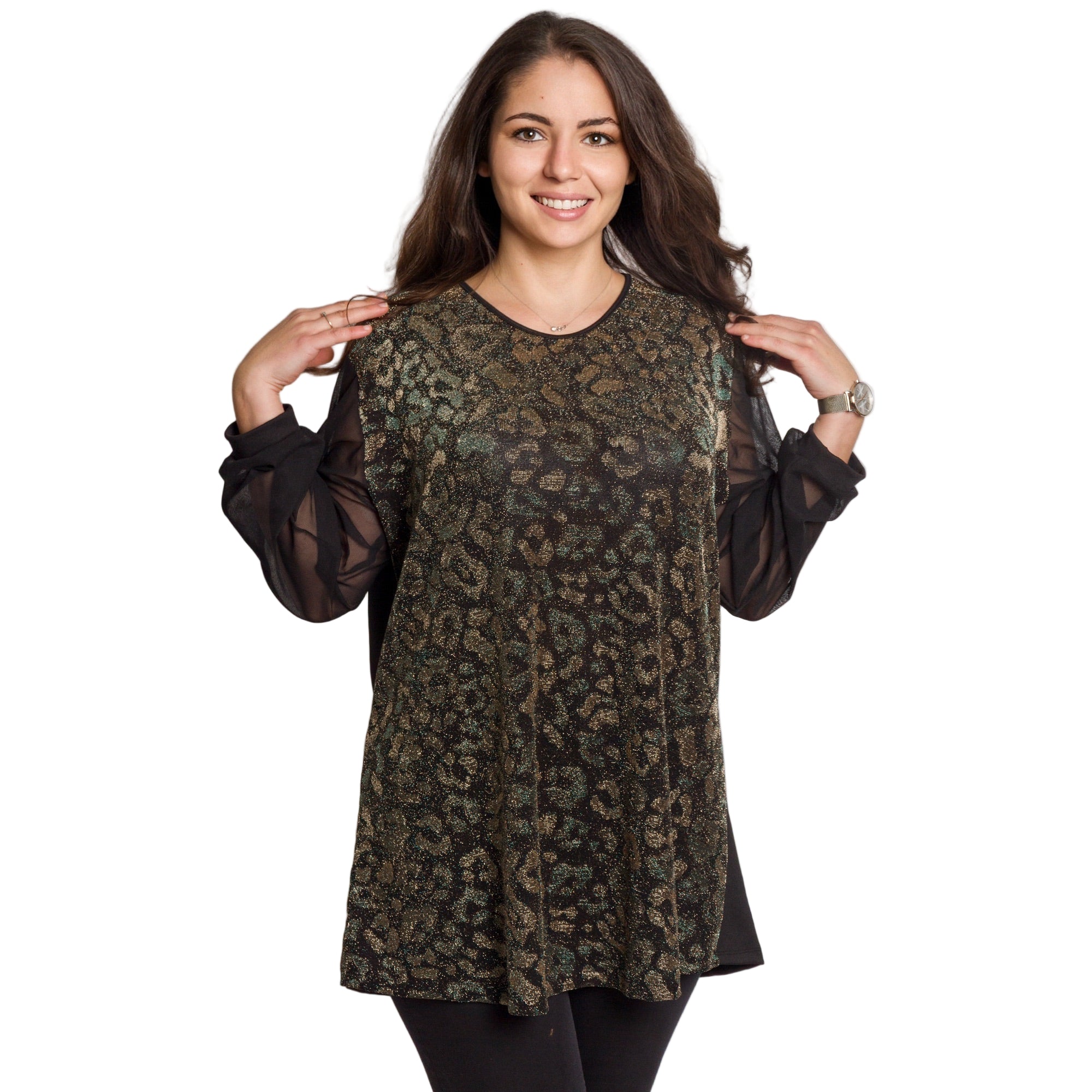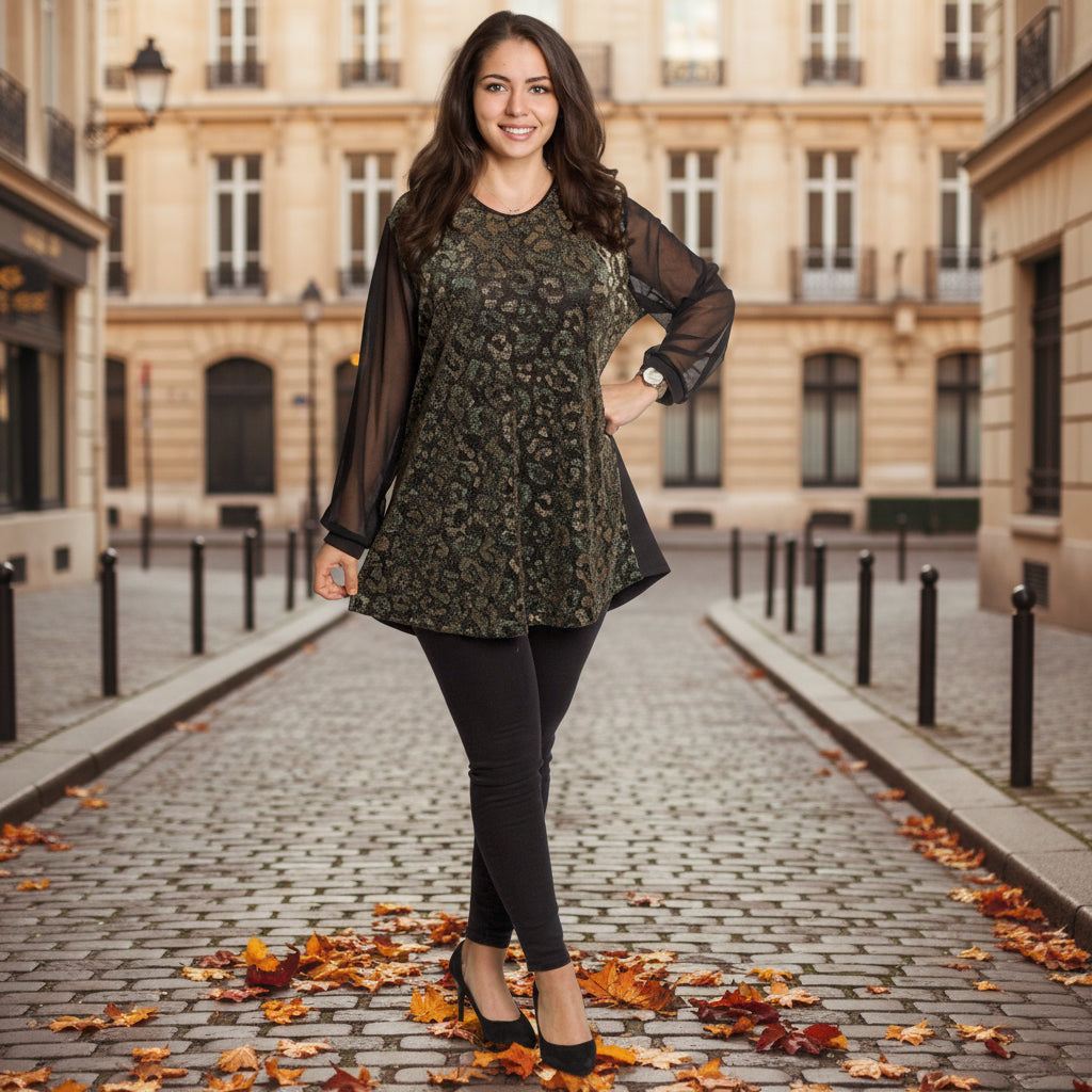 Tunică lejeră în mărimi mari cu accente din piele