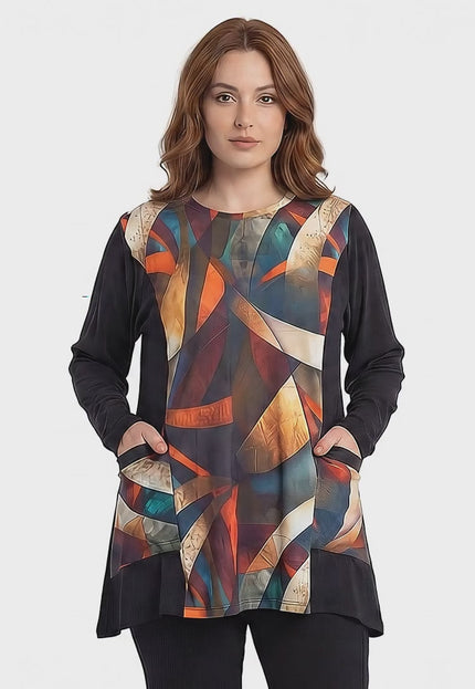 Tunică elegantă cu imprimeu abstract Frunze de toamnă