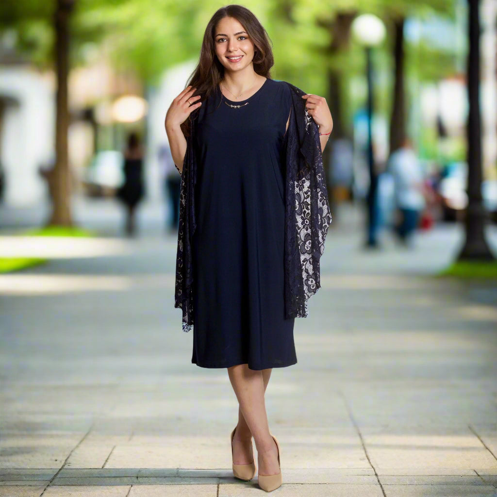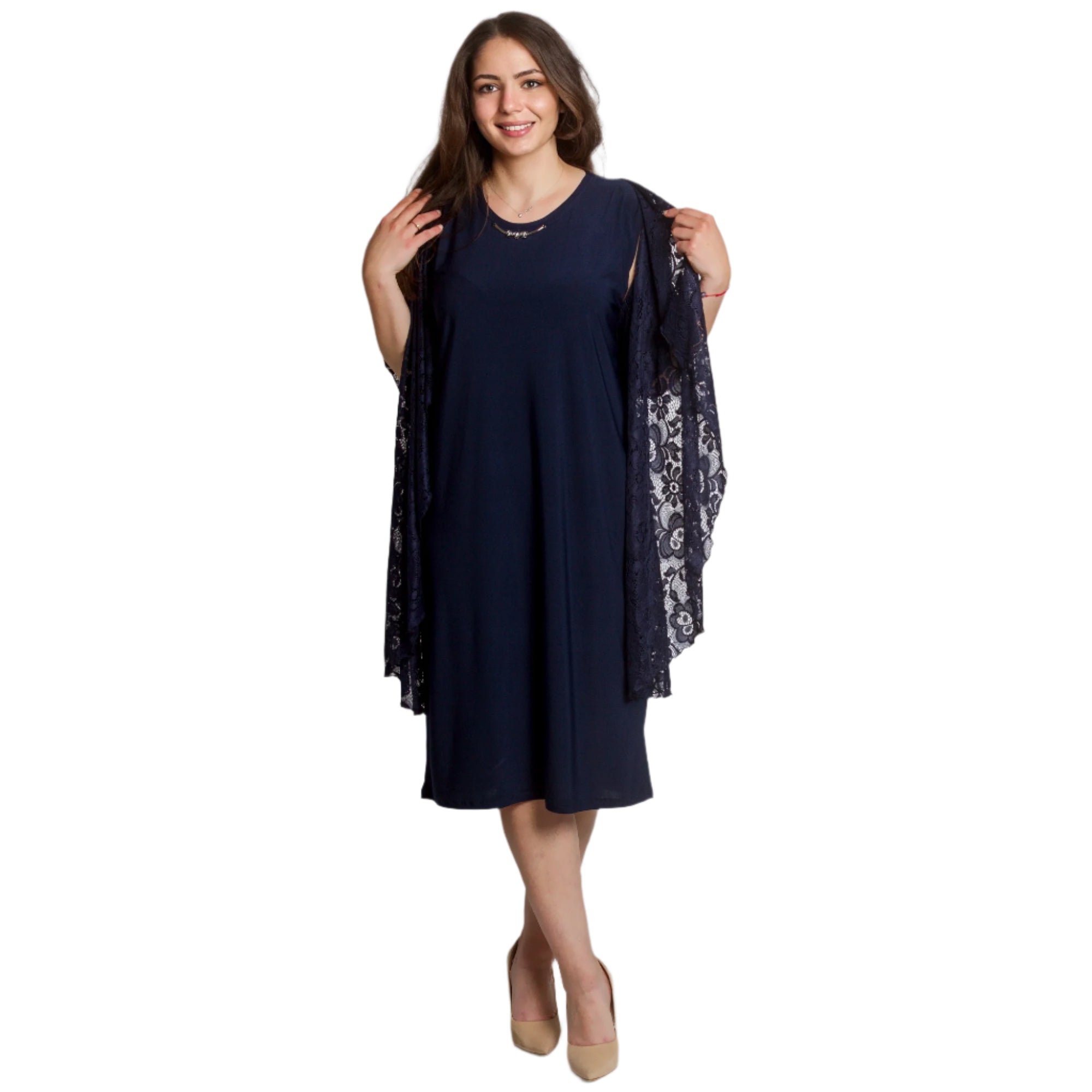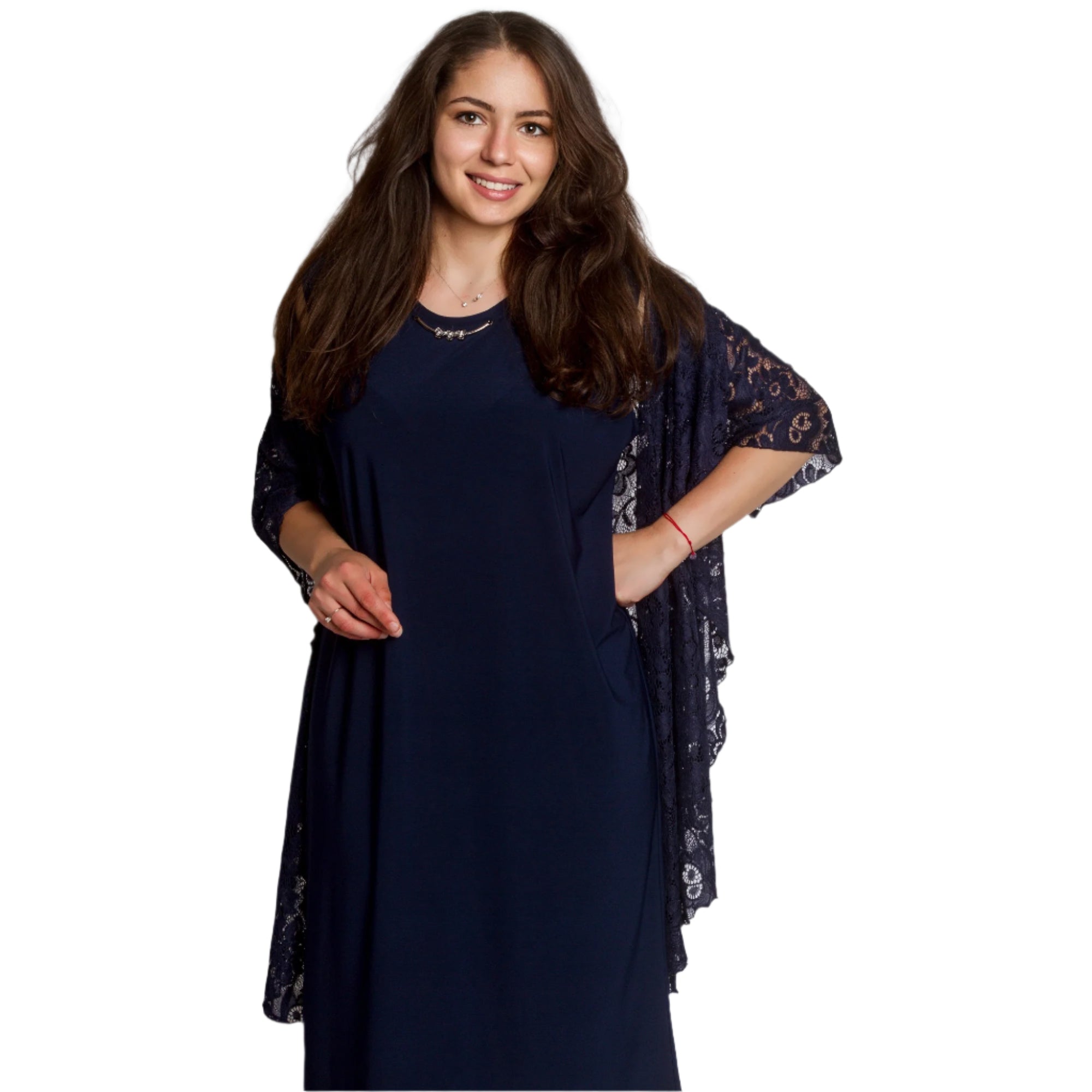 Acest set elegant pentru femei include o rochie și o jachetă din dantelă, concepute pentru a vă oferi stil și confort. Perfect pentru evenimente formale și ocazii speciale, acest set este disponibil în culorile clasice negru, vișiniu și albastru.
