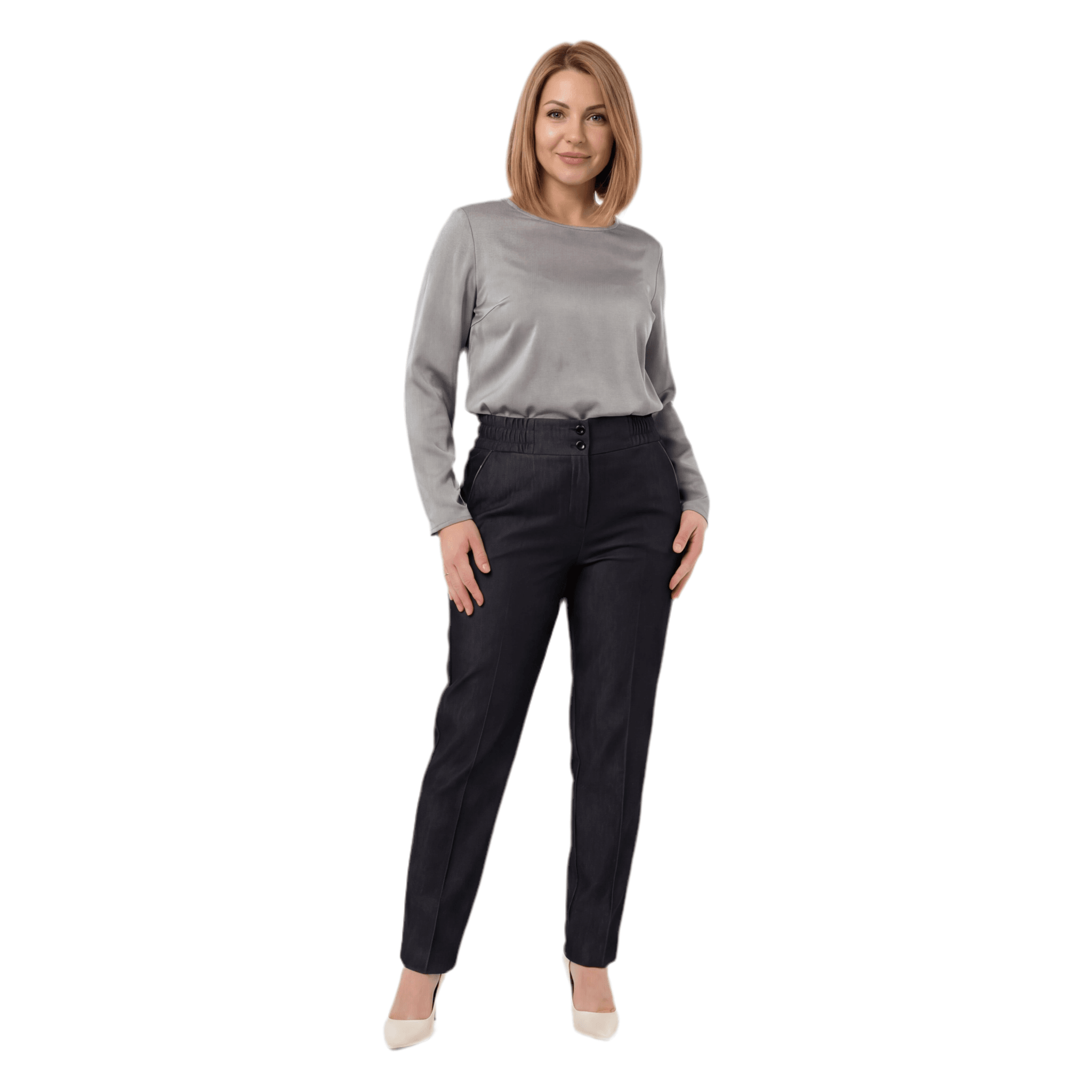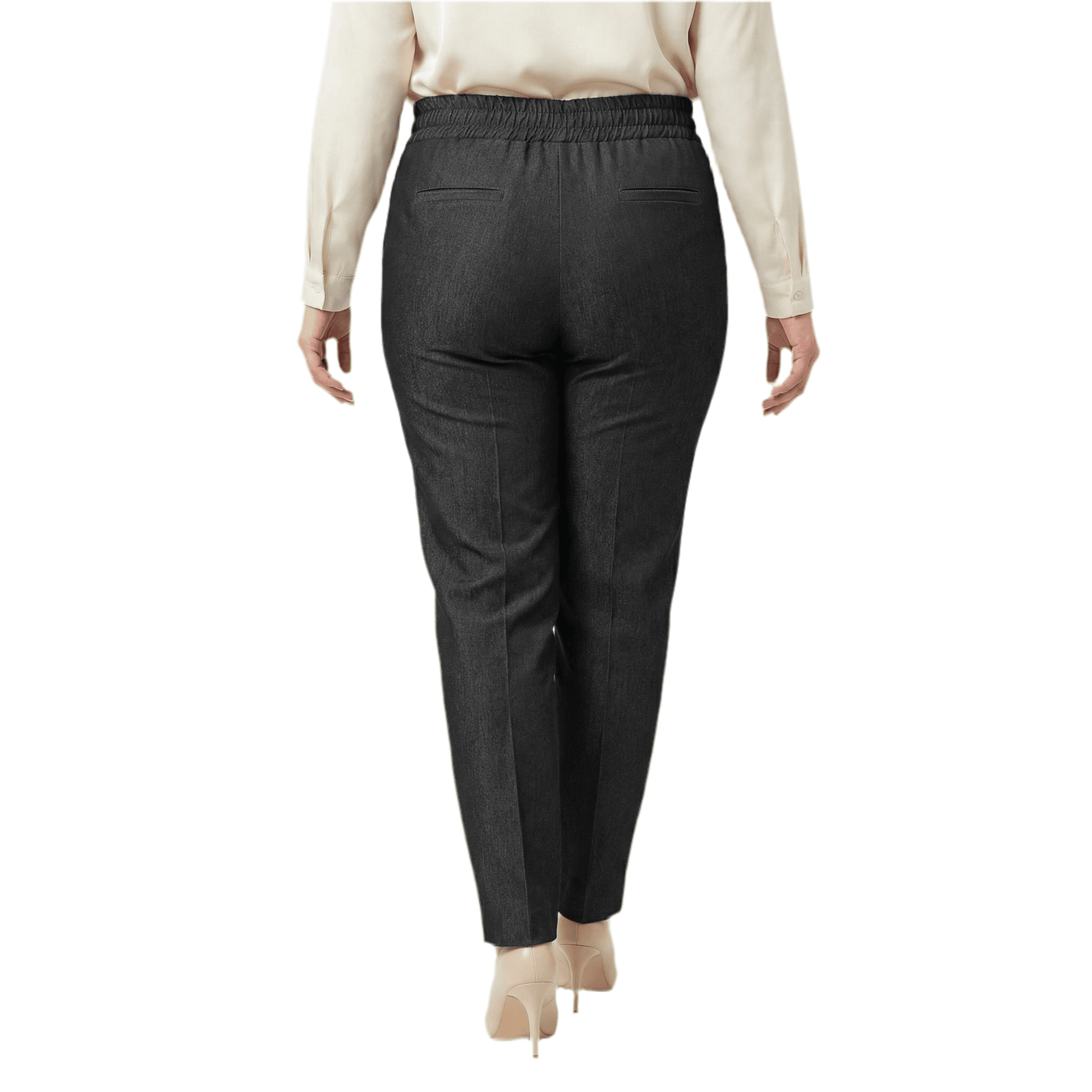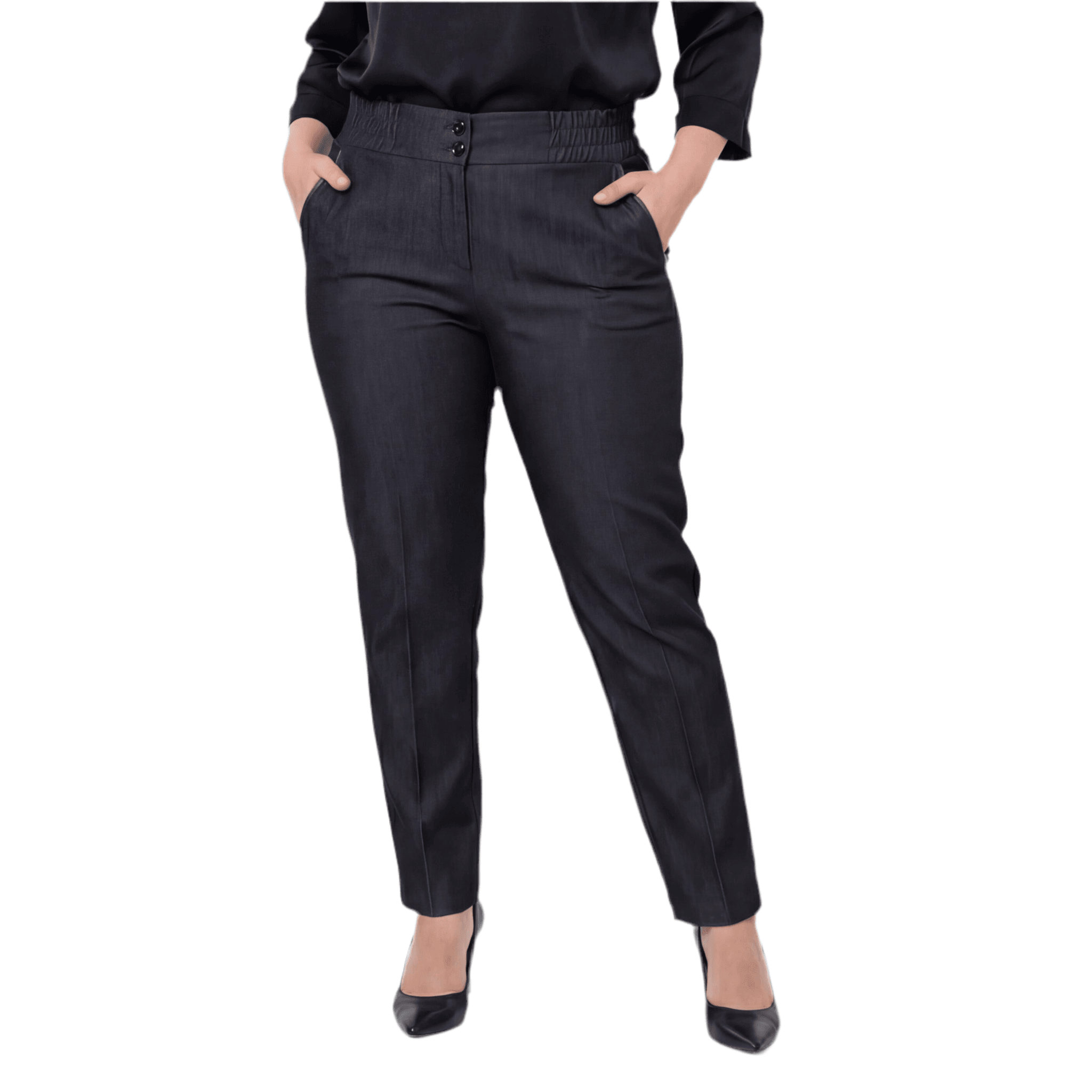 Pantaloni negri de damă, eleganți, cu croială dreaptă și talie elastică, mărimi mari