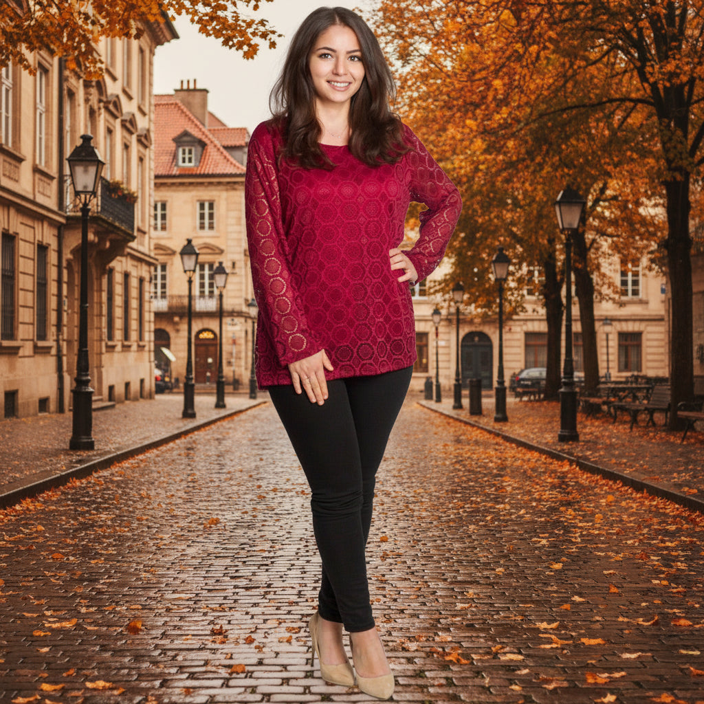 Găsește-ți tunica formală perfectă la Maxi Market! Această tunică neagră cu decolteu tip barcă și model cu buline este alegerea perfectă pentru orice ocazie formală din sezonul toamnă-iarnă. Fabricată în întregime din poliester, această tunică cu o croială lejeră garantează confort fără a compromite stilul. Lungimea atractivă adaugă eleganță și rafinament, potrivită pentru orice doamnă care caută calitate și frumusețe în hainele pentru femei plus size.