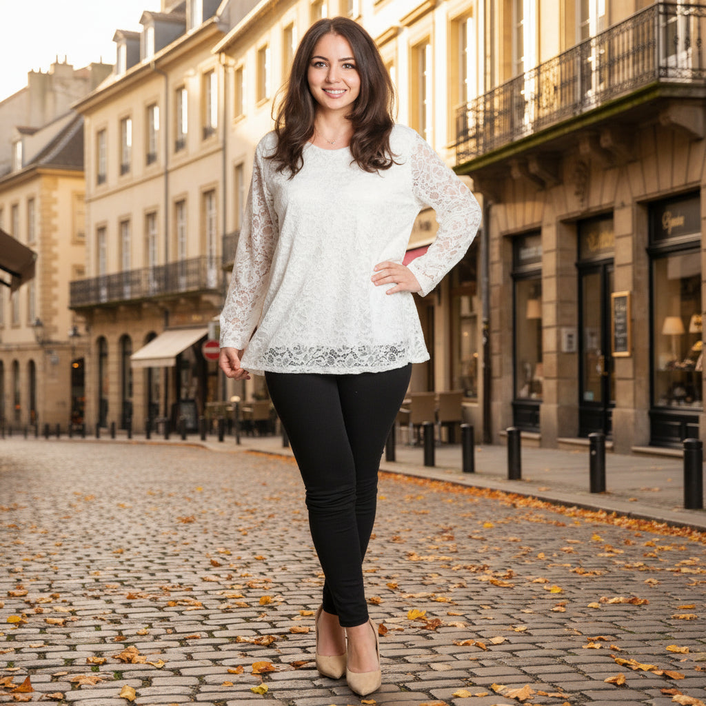 Găsește-ți tunica formală perfectă la Maxi Market! Această tunică neagră cu decolteu tip barcă și model cu buline este alegerea perfectă pentru orice ocazie formală din sezonul toamnă-iarnă. Fabricată în întregime din poliester, această tunică cu o croială lejeră garantează confort fără a compromite stilul. Lungimea atractivă adaugă eleganță și rafinament, potrivită pentru orice doamnă care caută calitate și frumusețe în hainele pentru femei plus size.