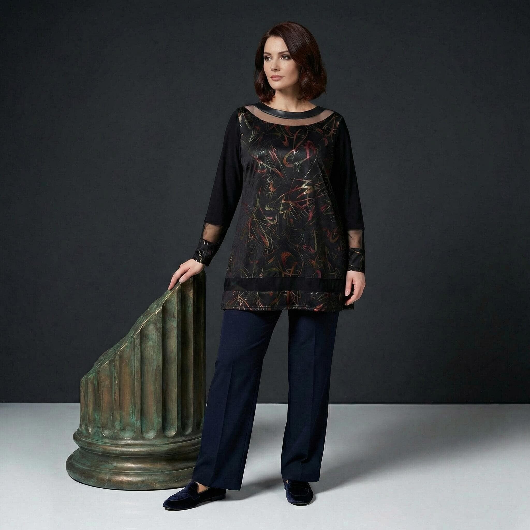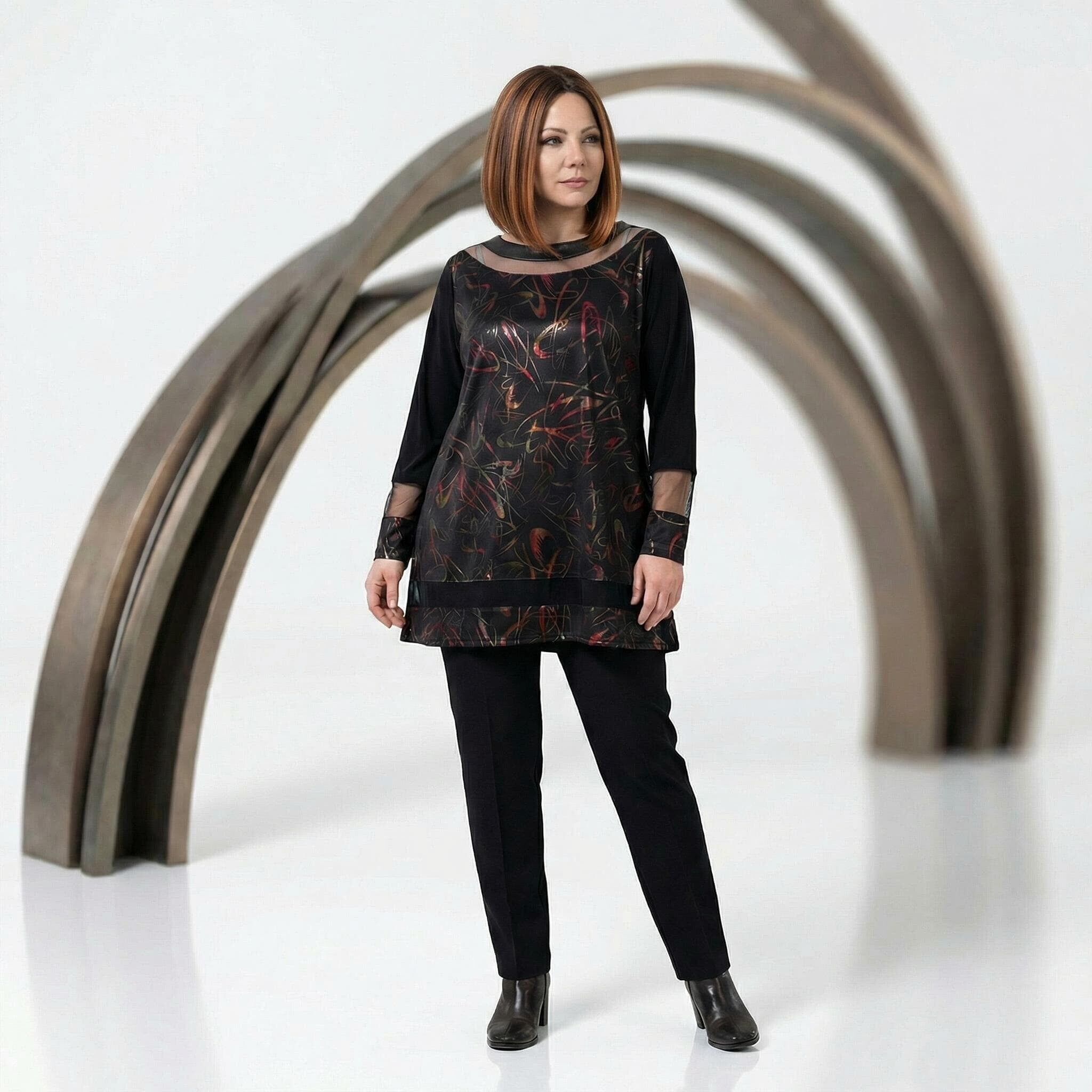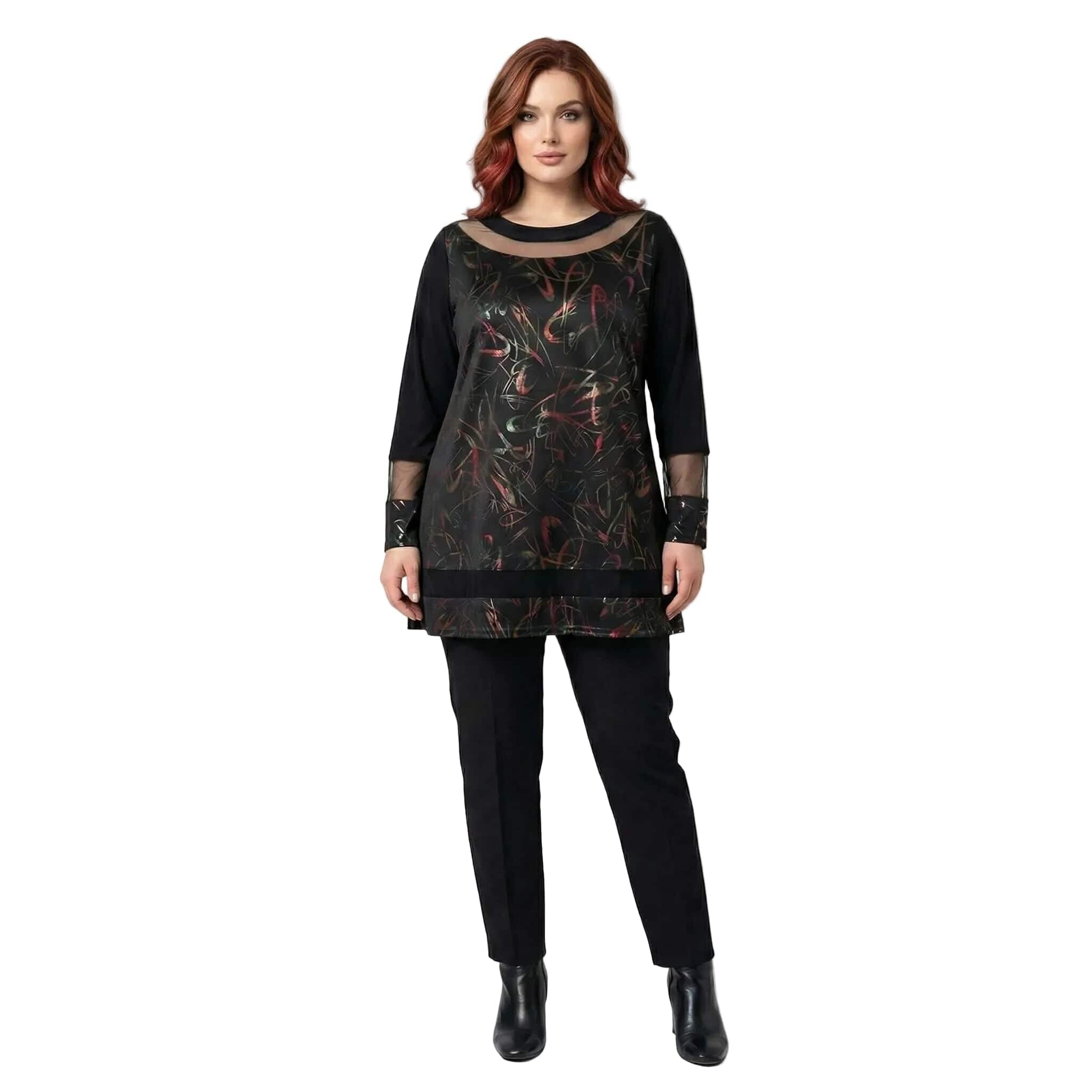 Tunică neagră elegantă, mărimi mari, cu decolteu spectaculos