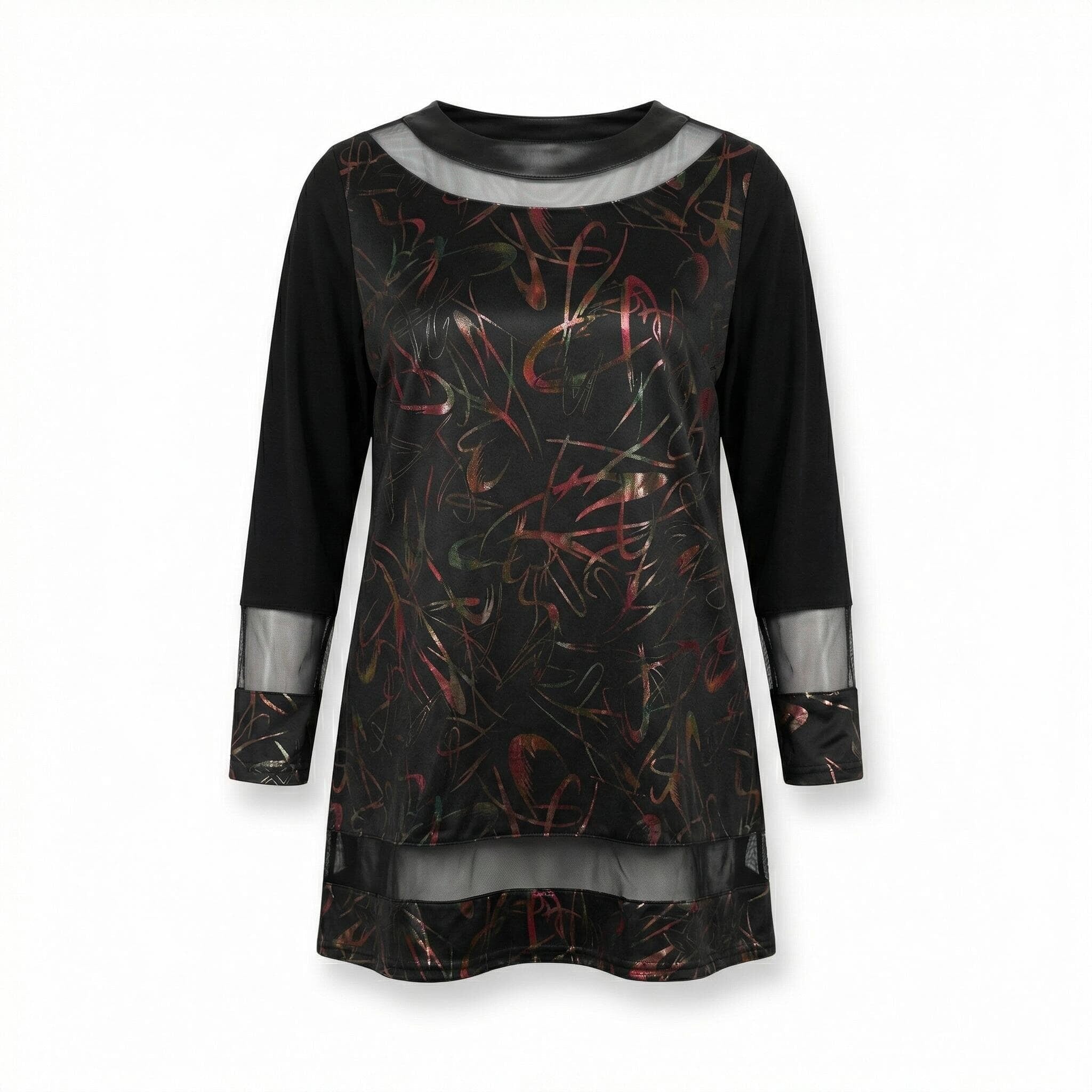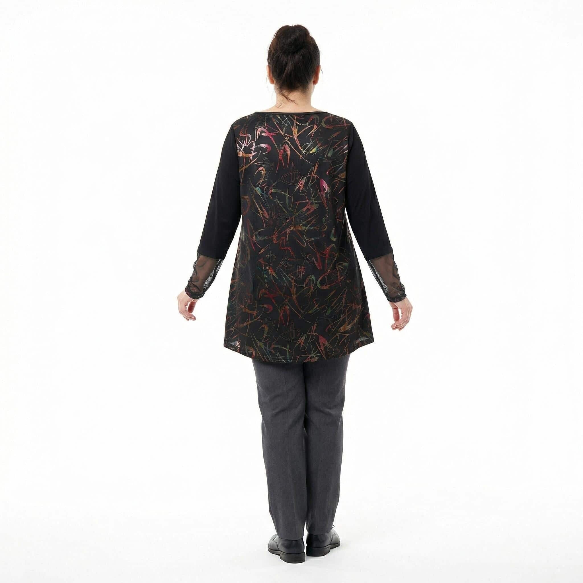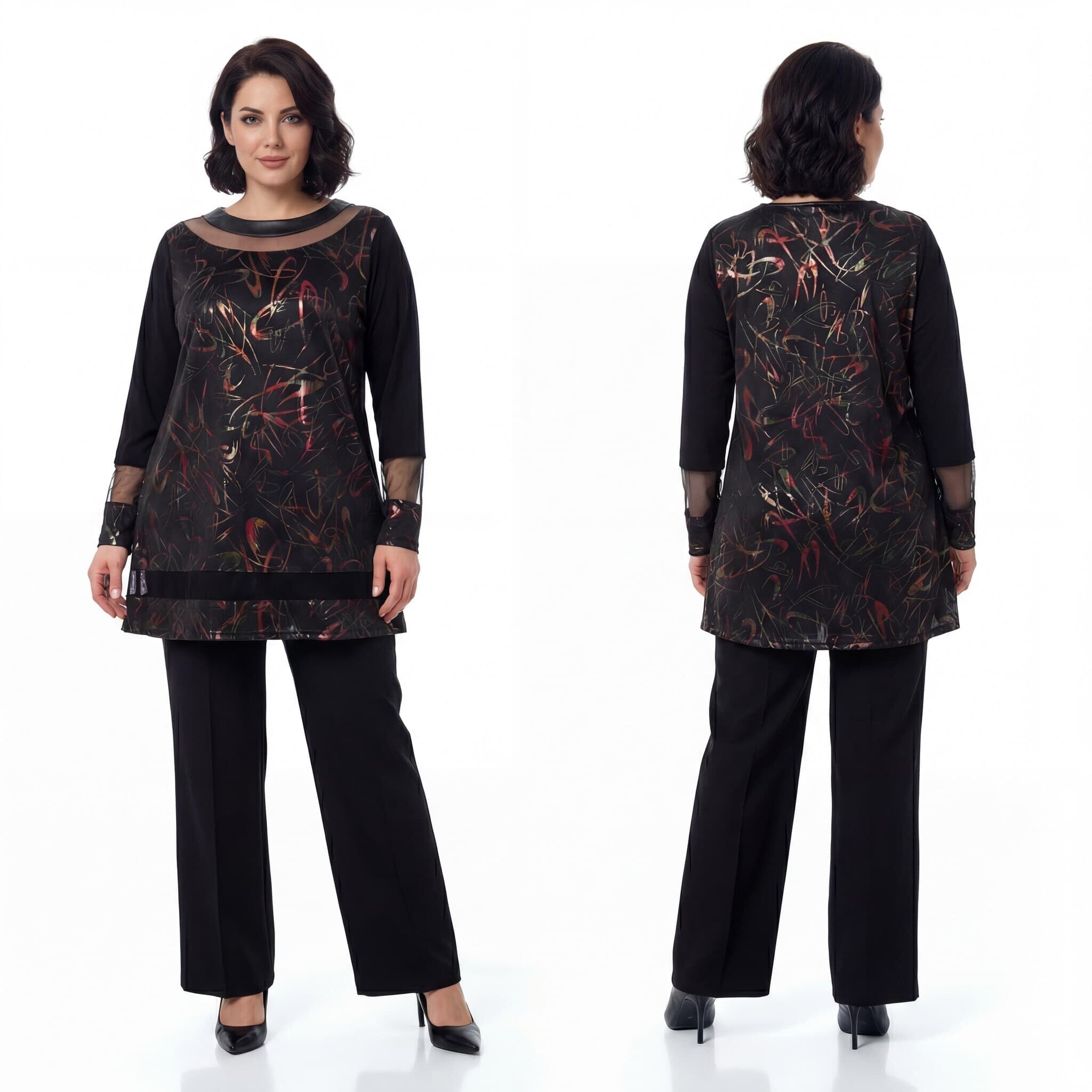 Tunică neagră elegantă, mărimi mari, cu decolteu spectaculos
