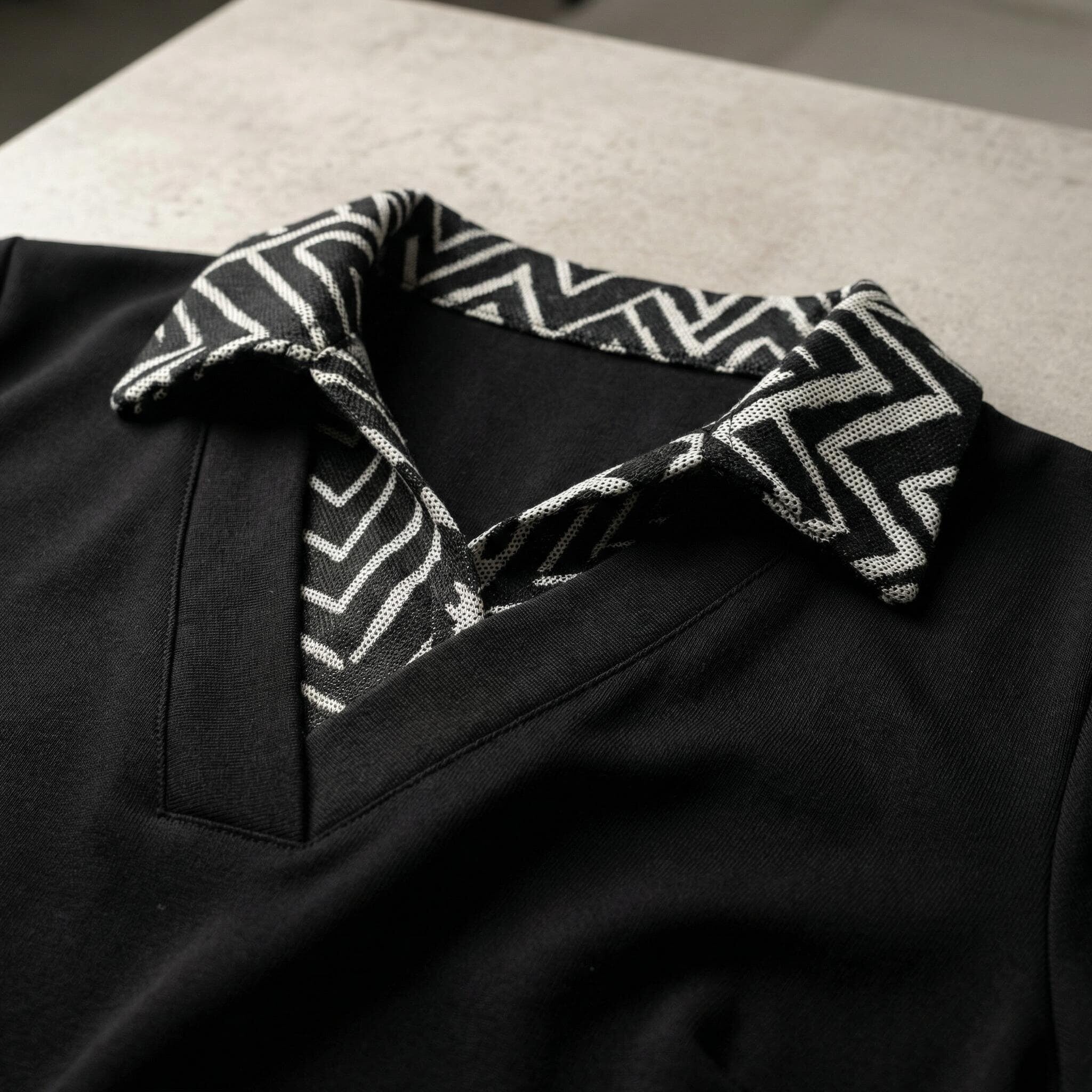 - Елегантен дизайн с класическа яка и контрастни маншети за стилна визия.