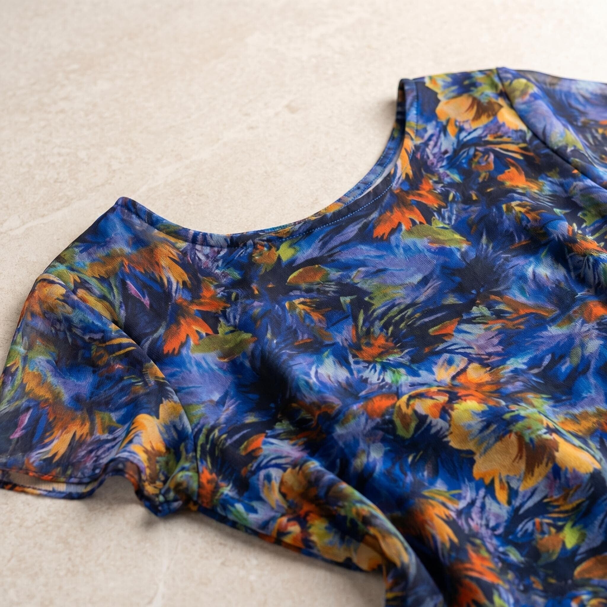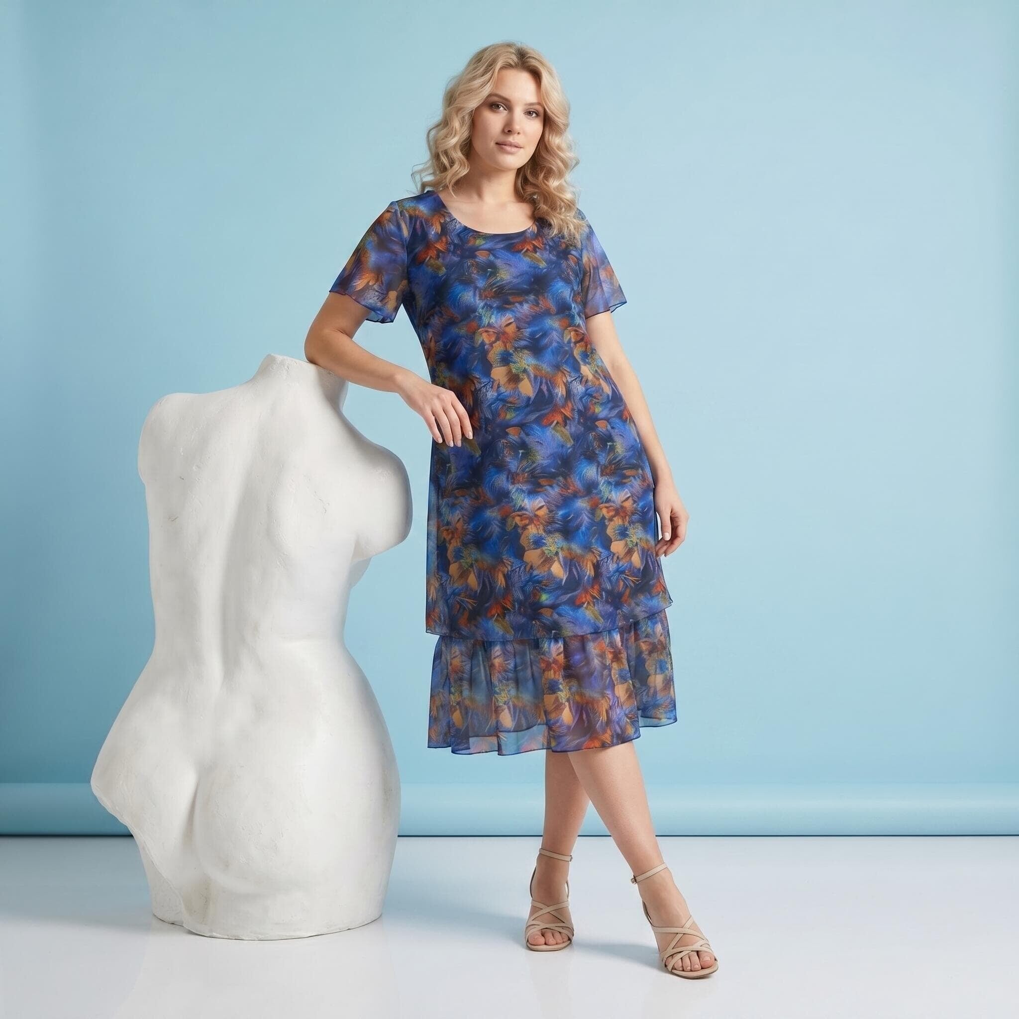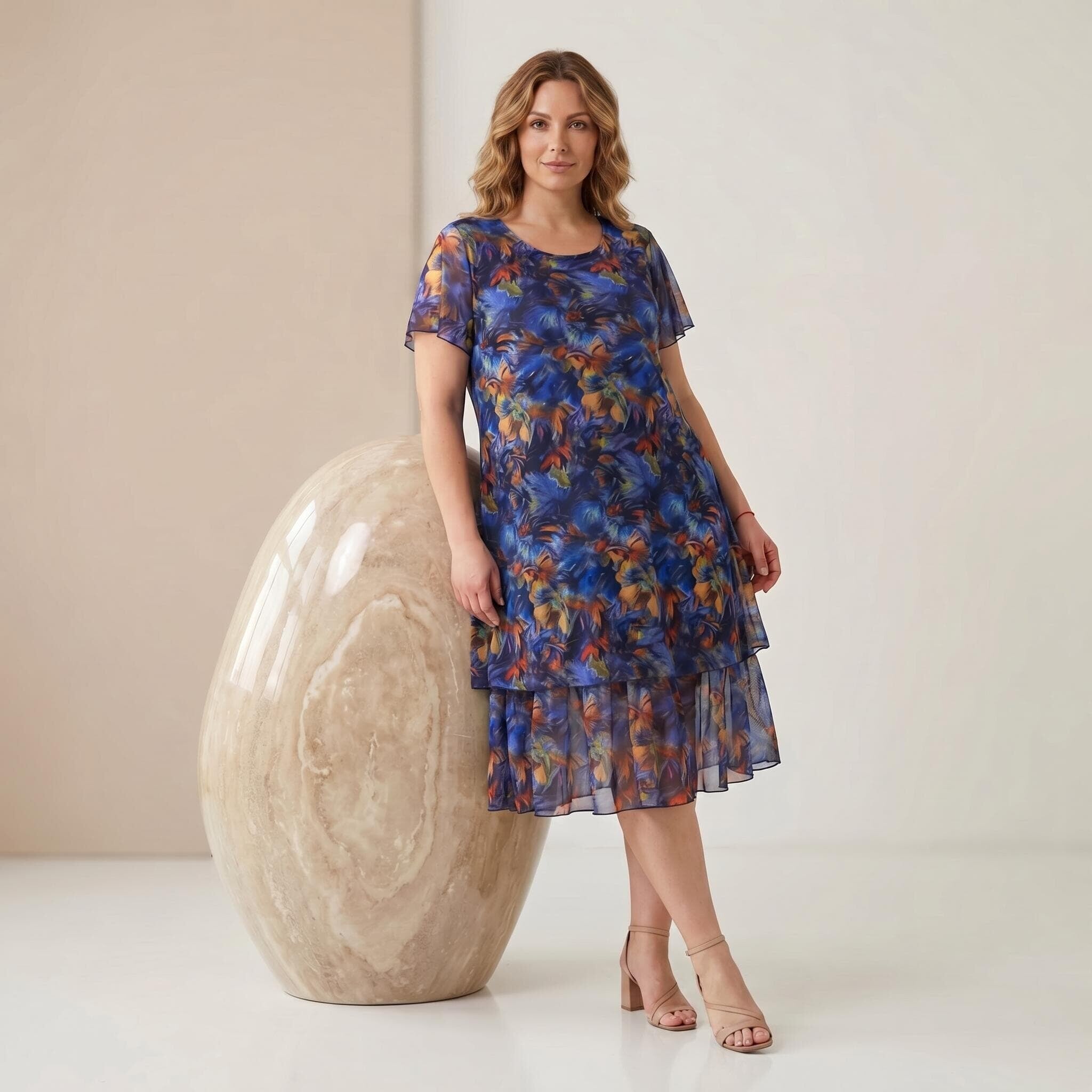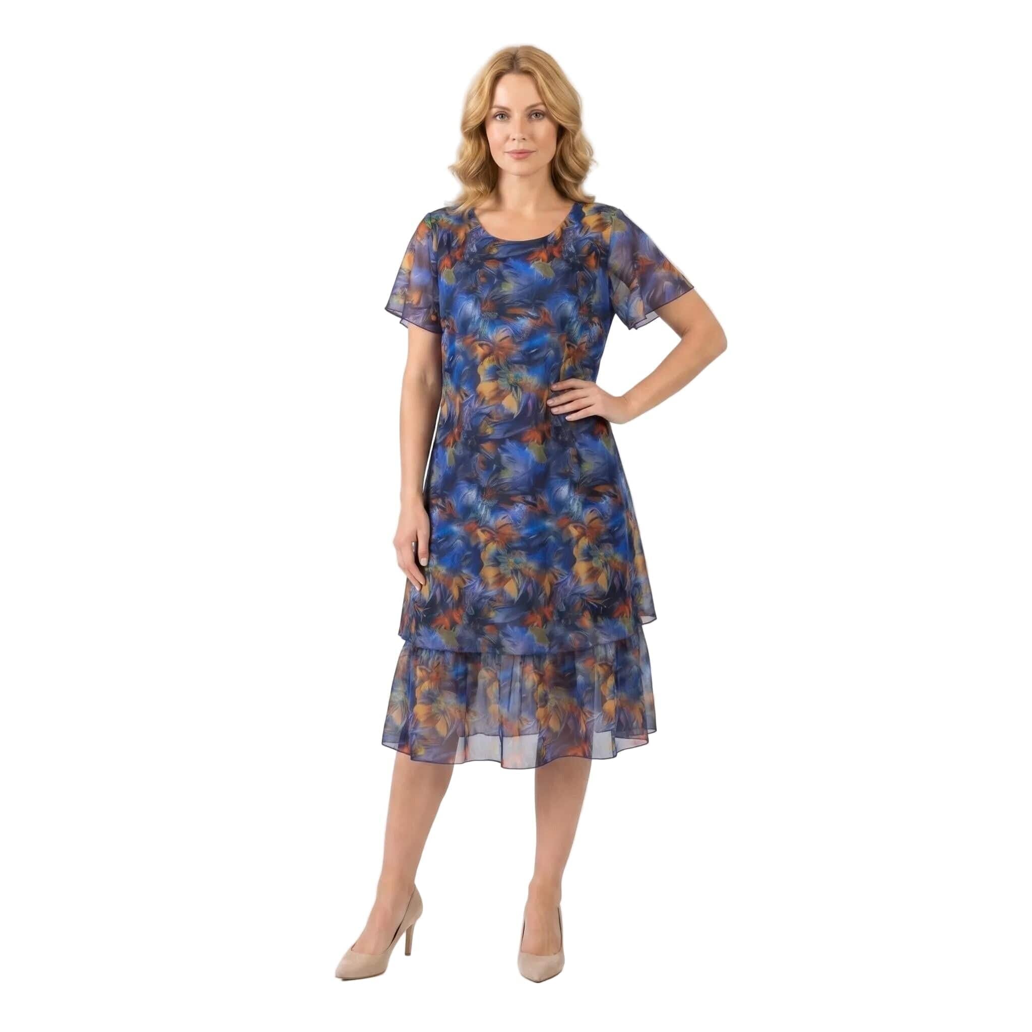 Rochie maxi oficială din șifon multicolor cu siluetă evazată