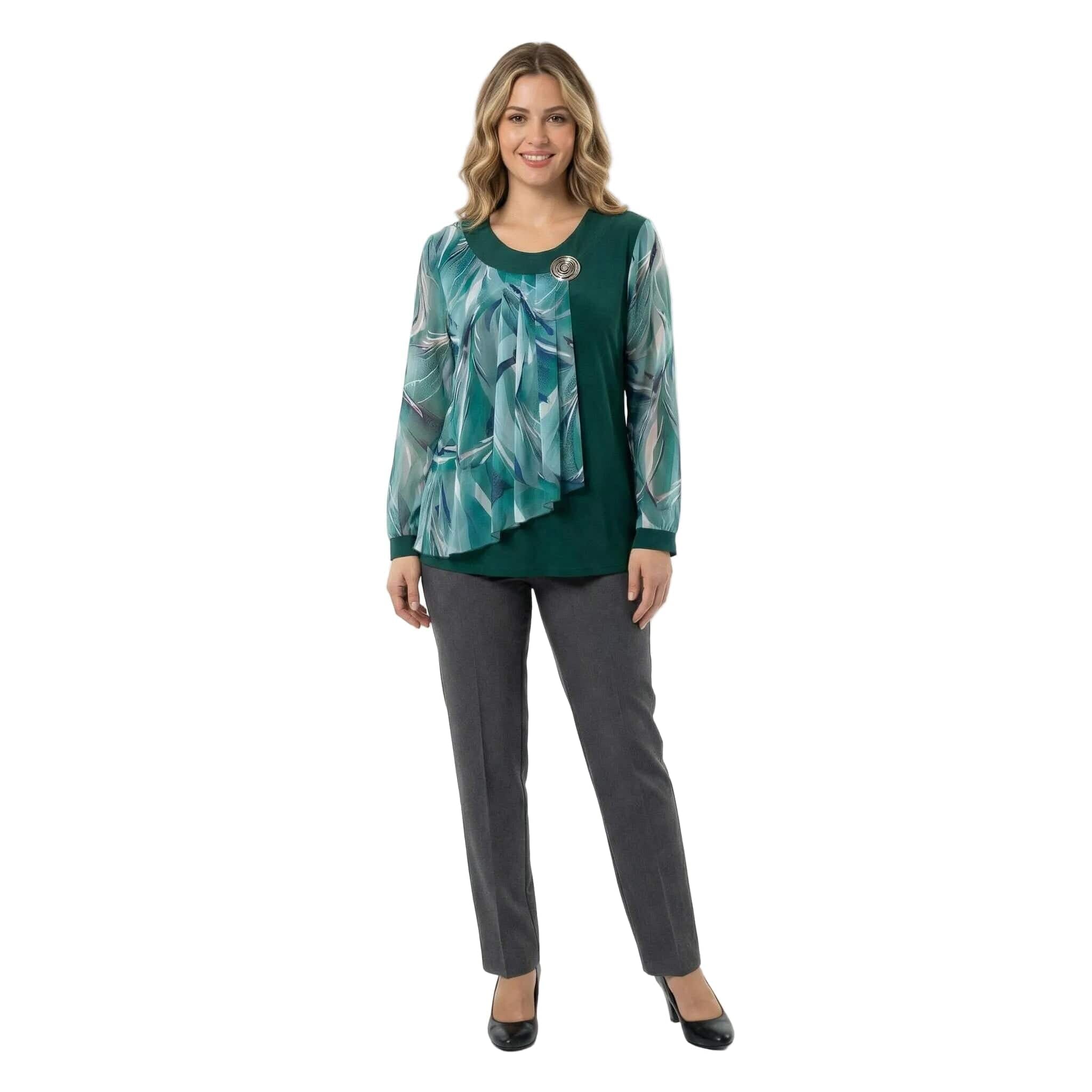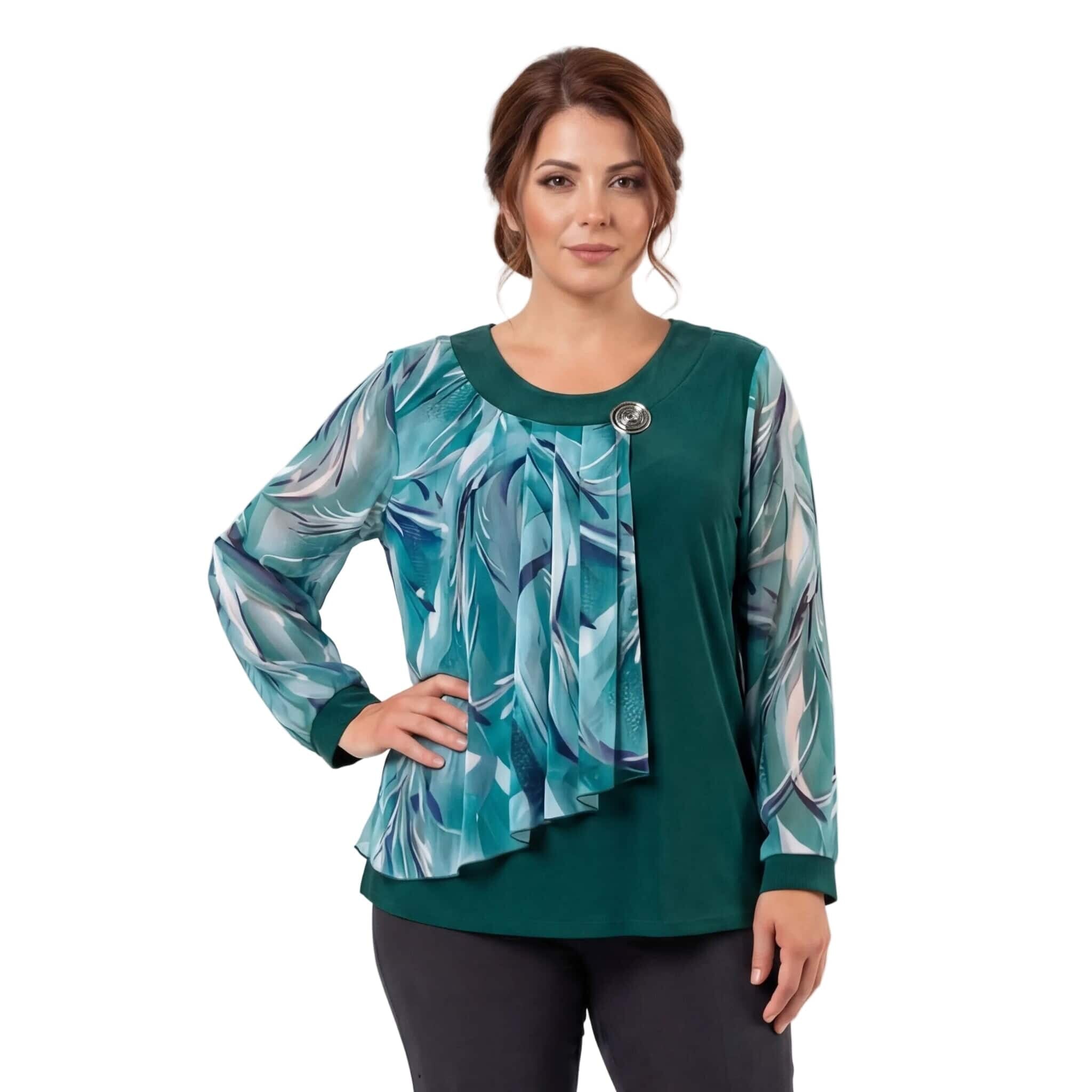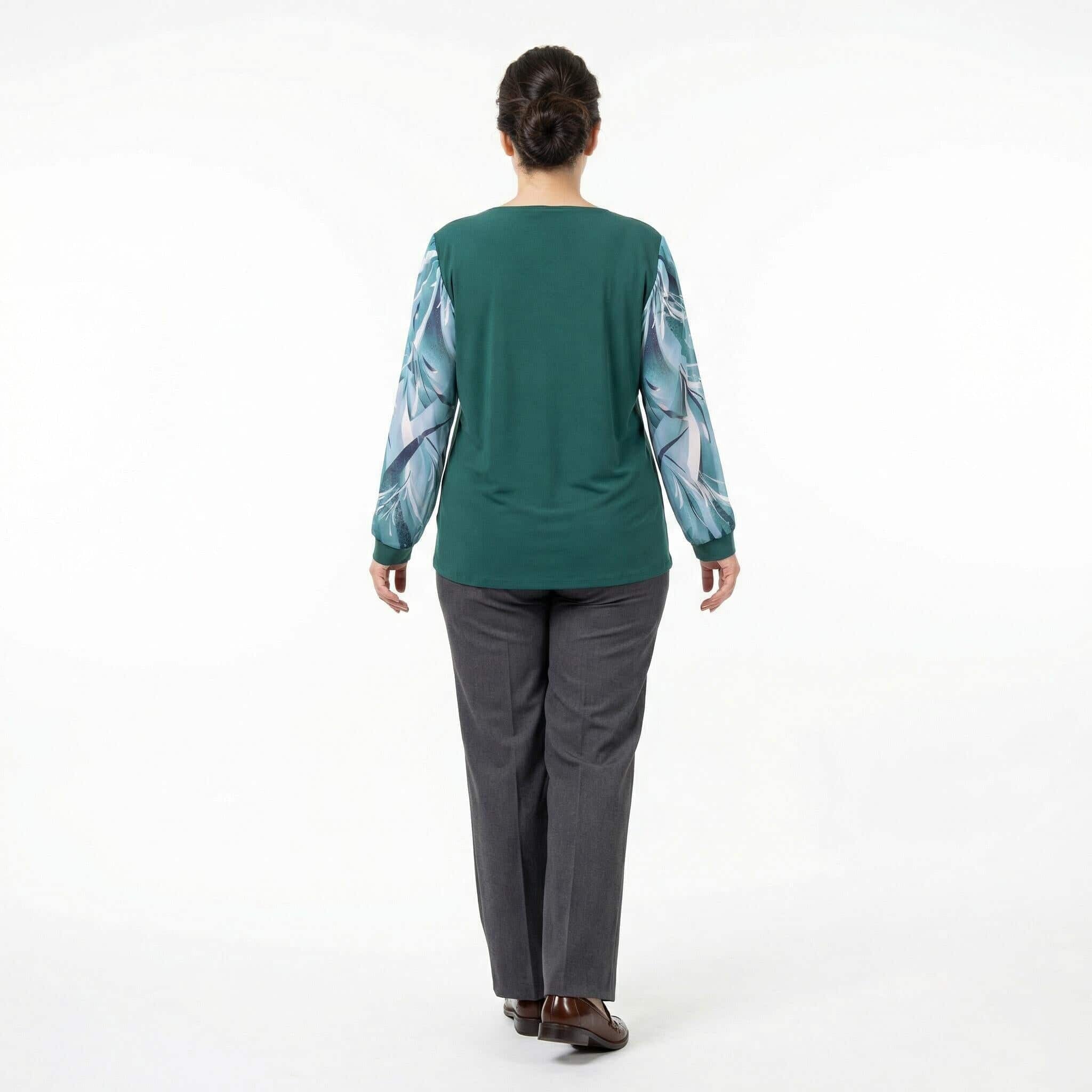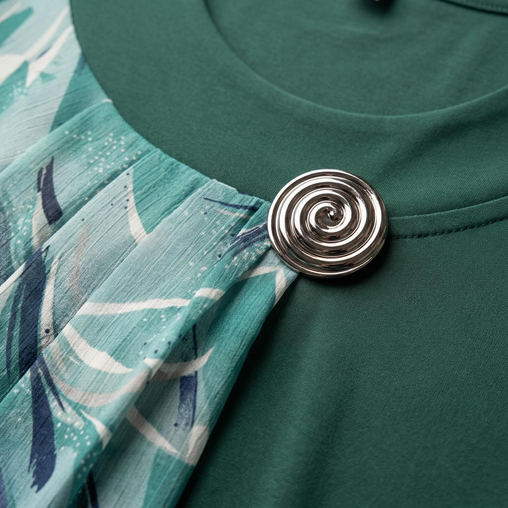Tunică maxi oficială evazată din șifon floral verde-oliv