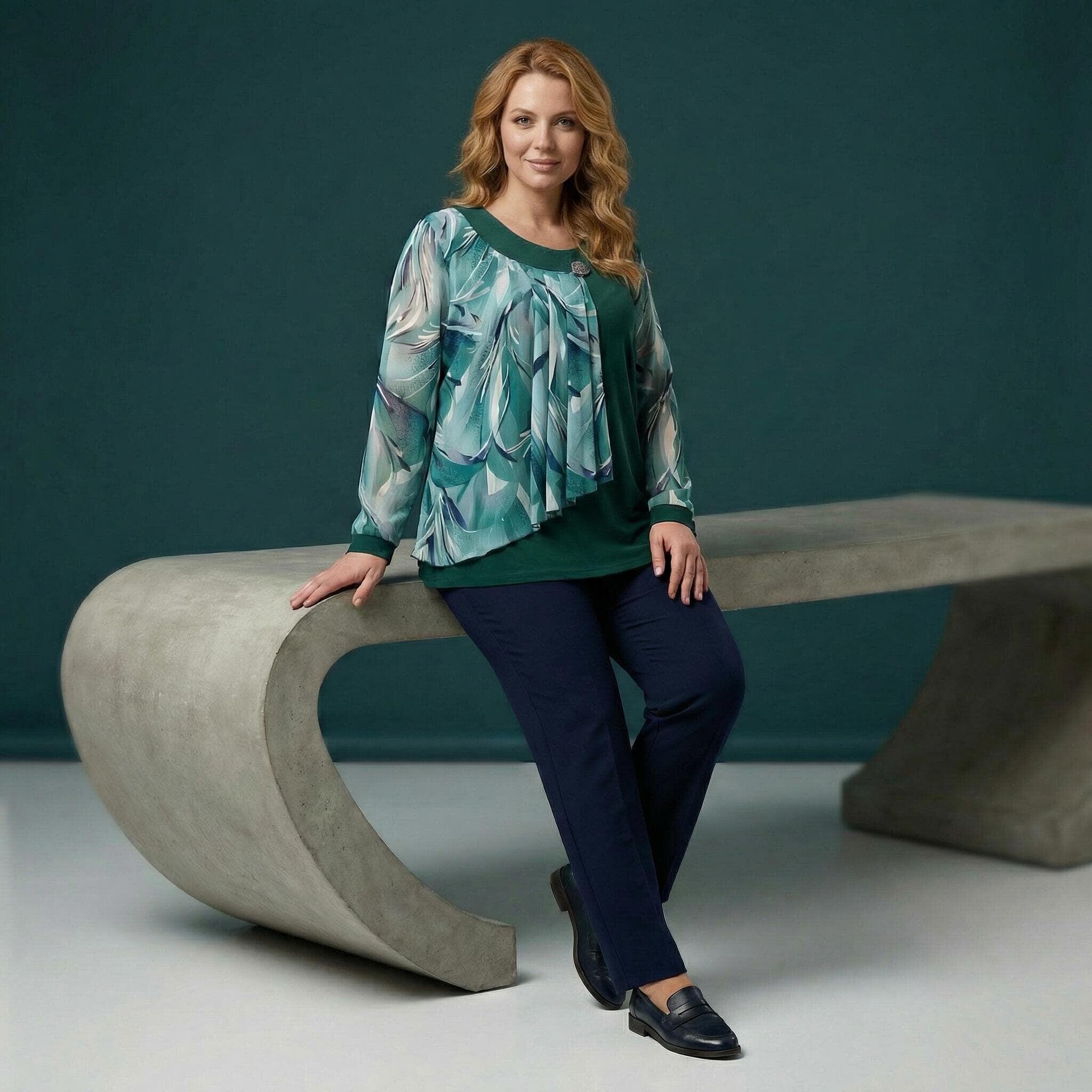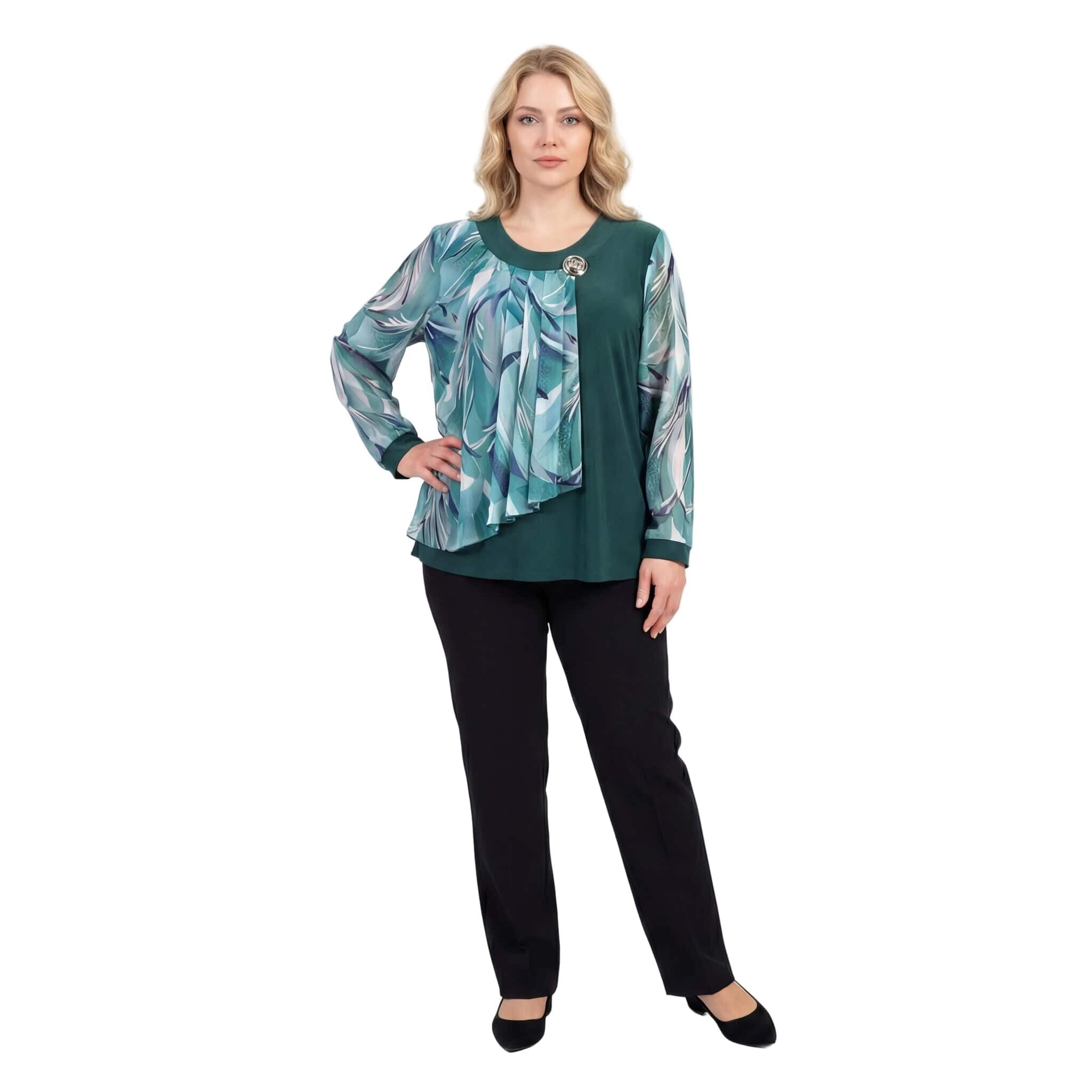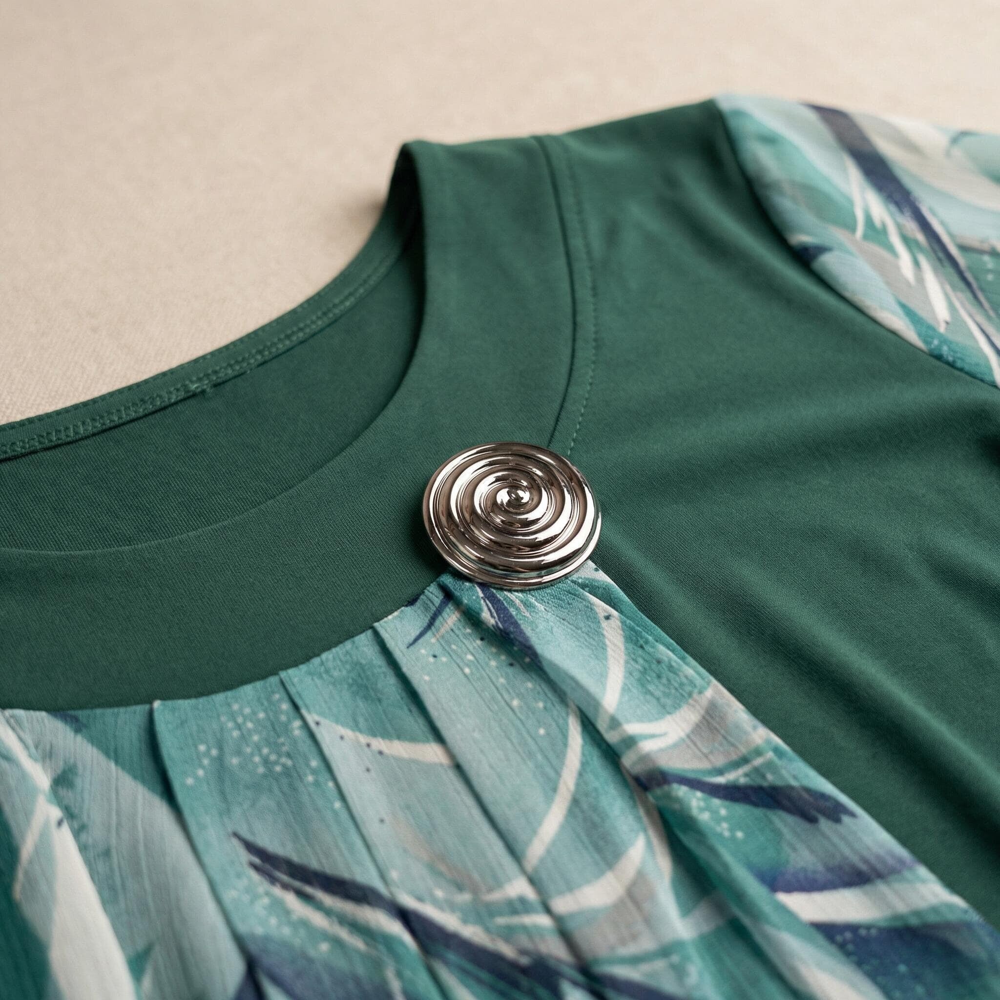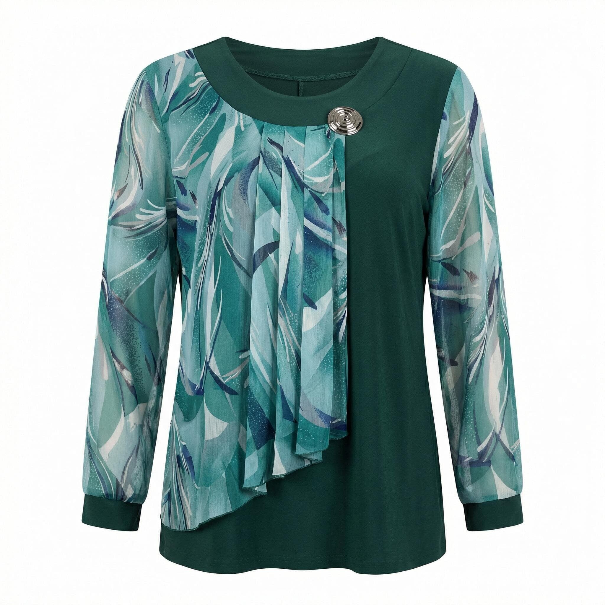 Tunică maxi oficială evazată din șifon floral verde-oliv