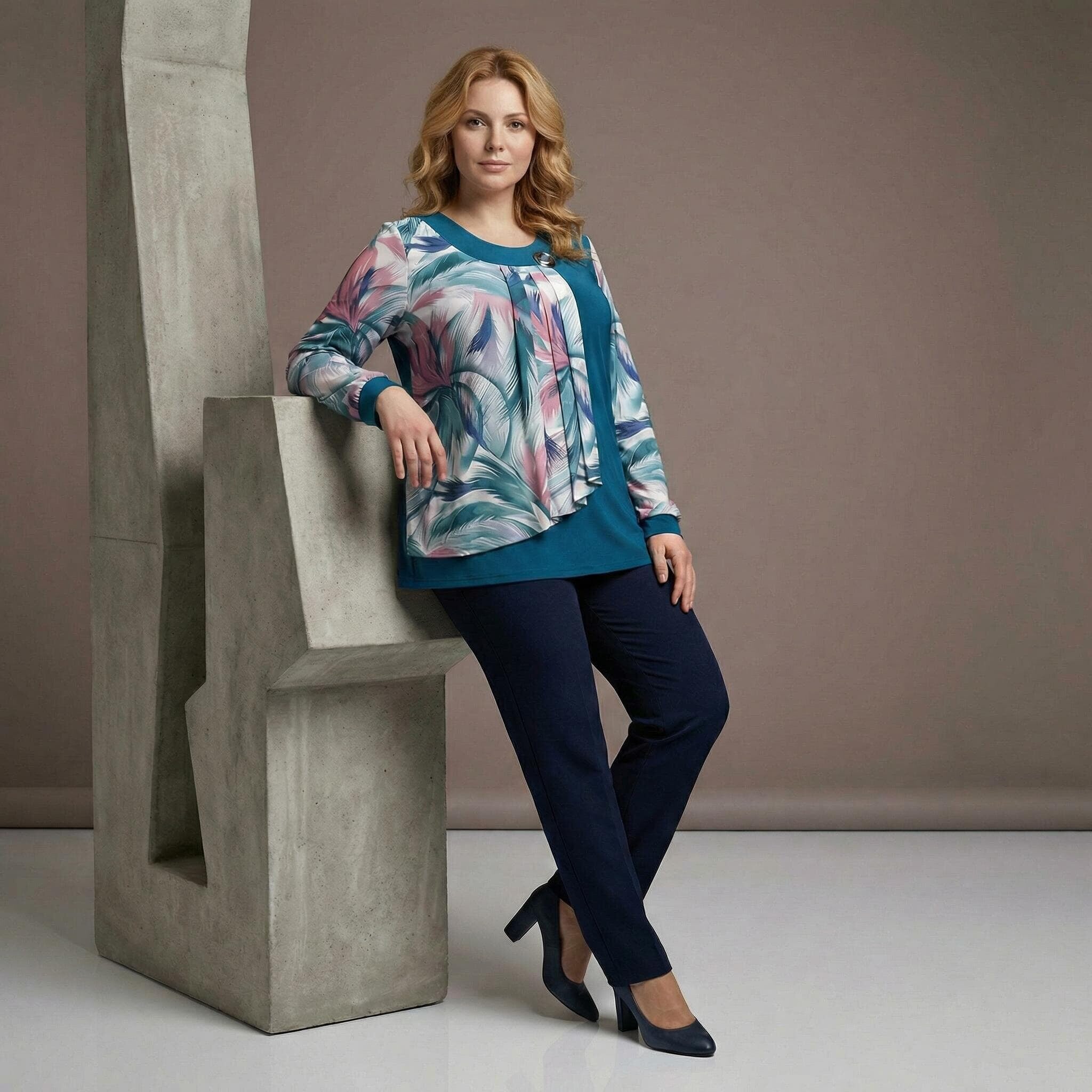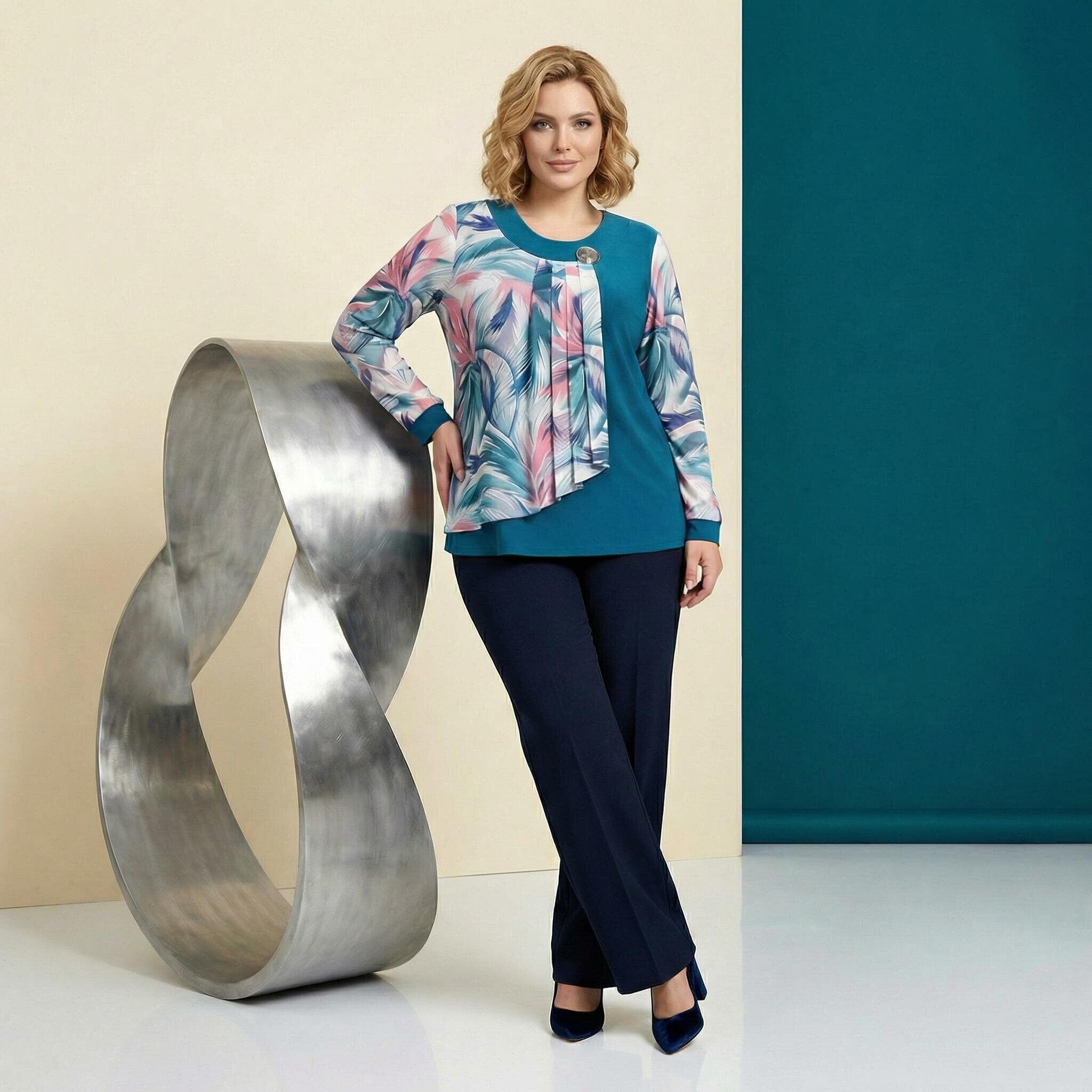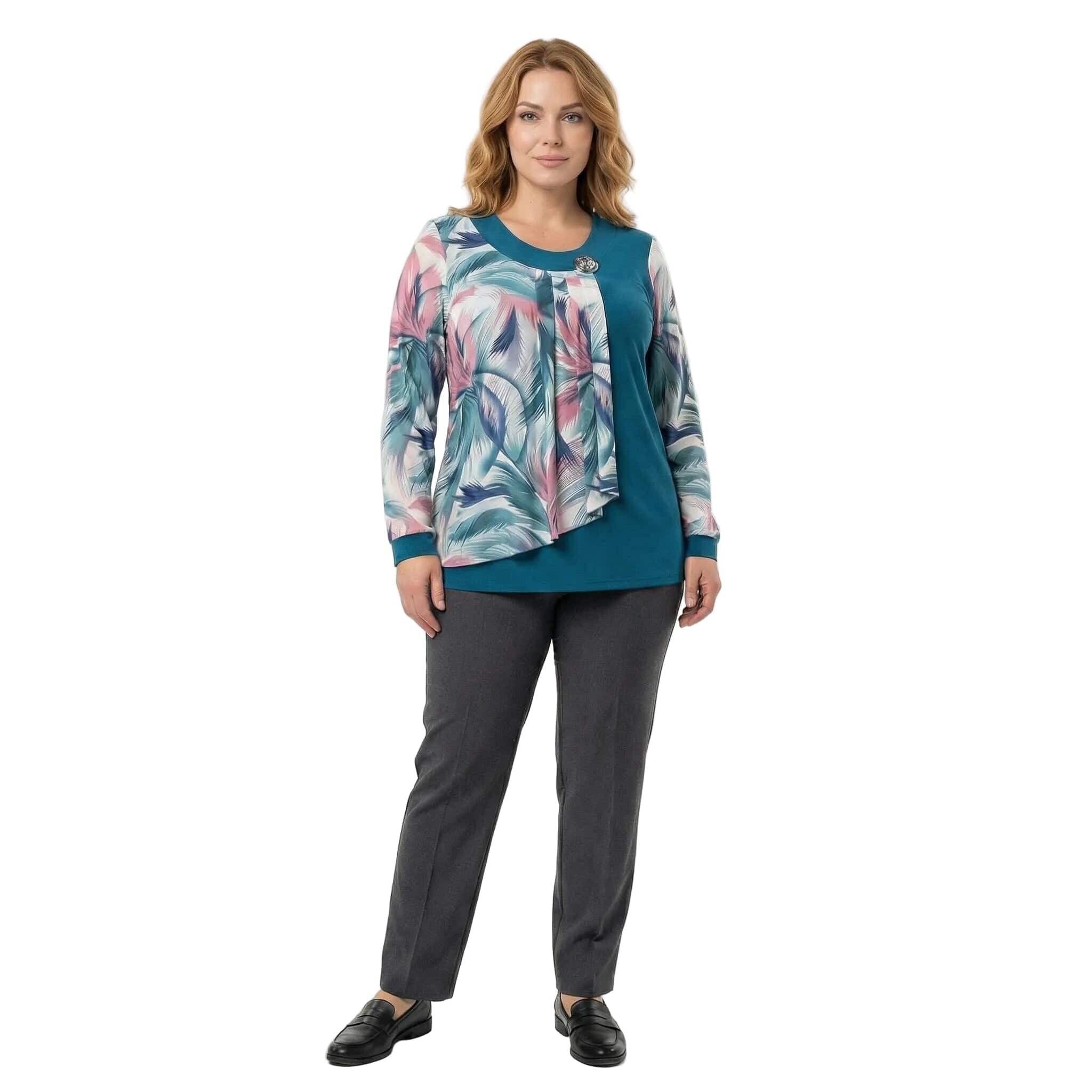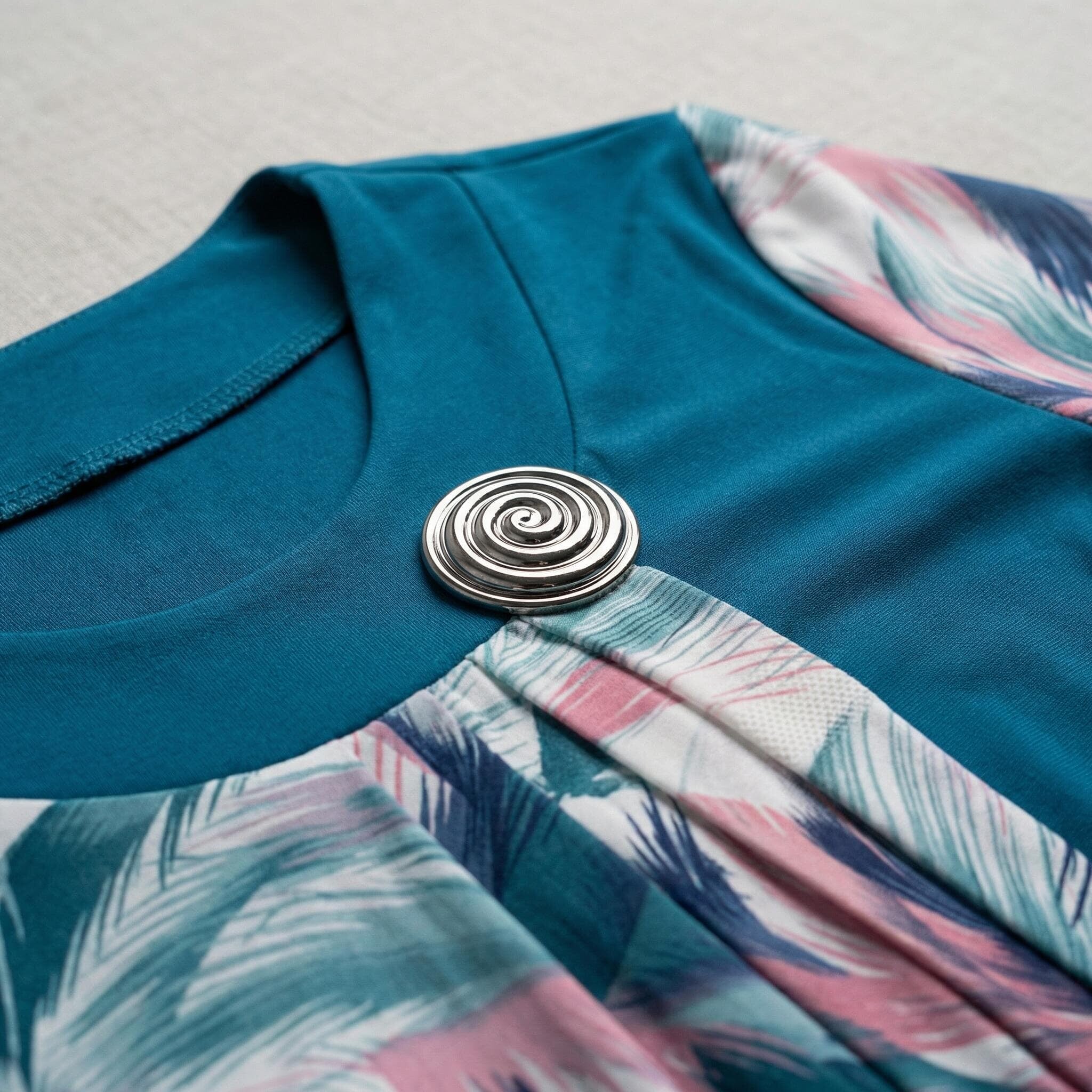 Tunică maxi oficială culoarea petrolului cu șifon diafan și broșă
