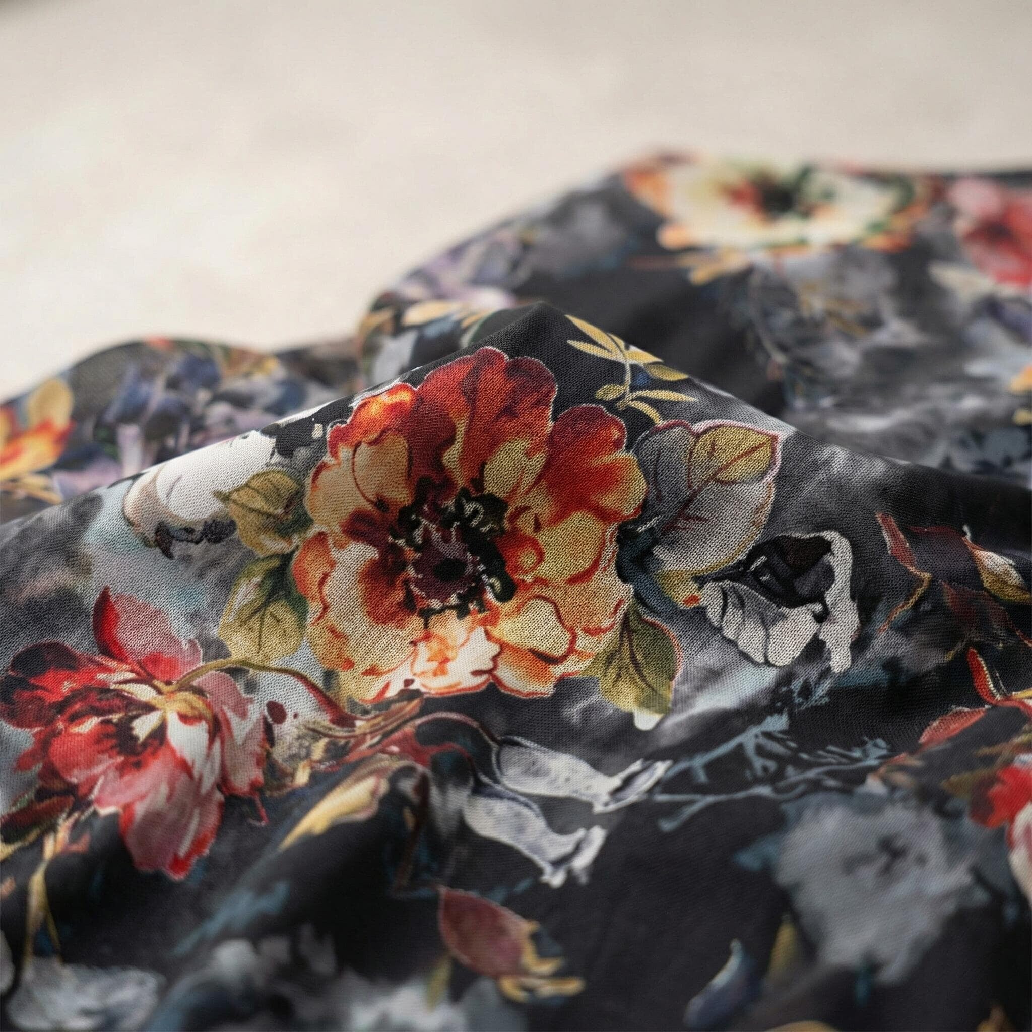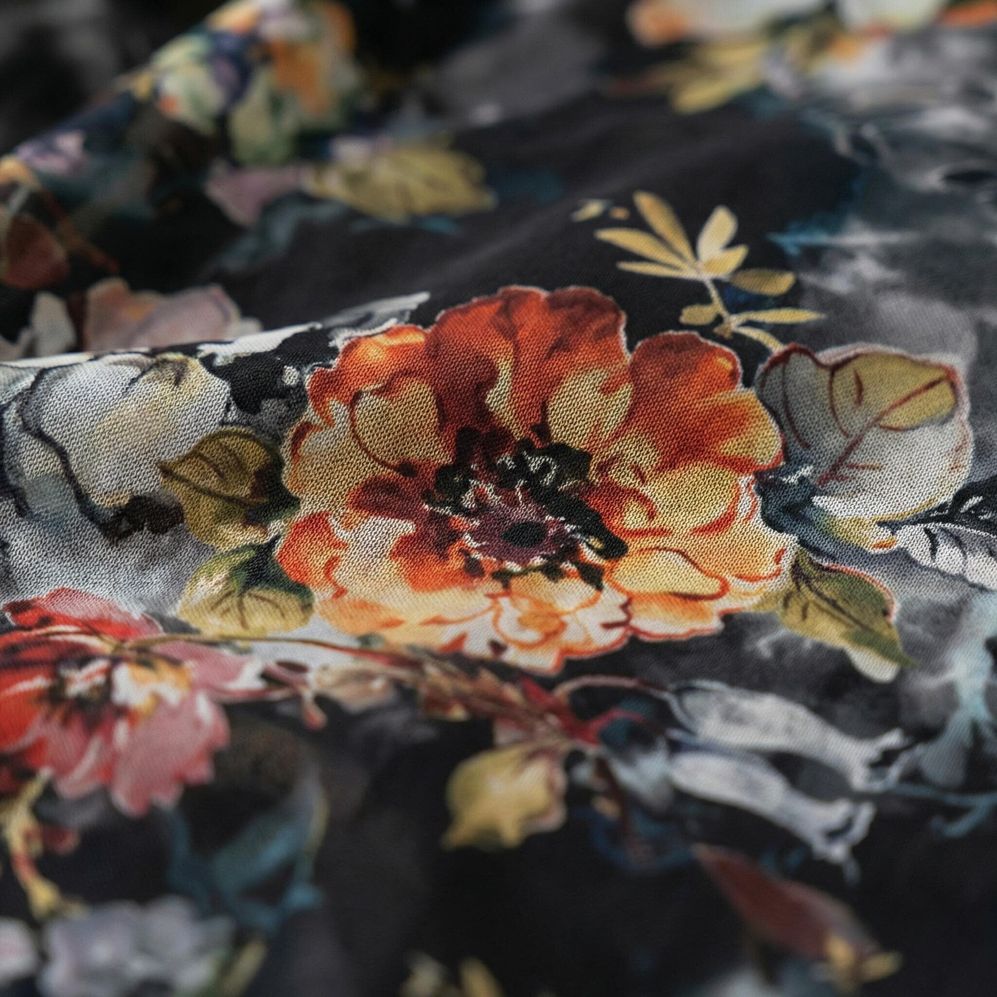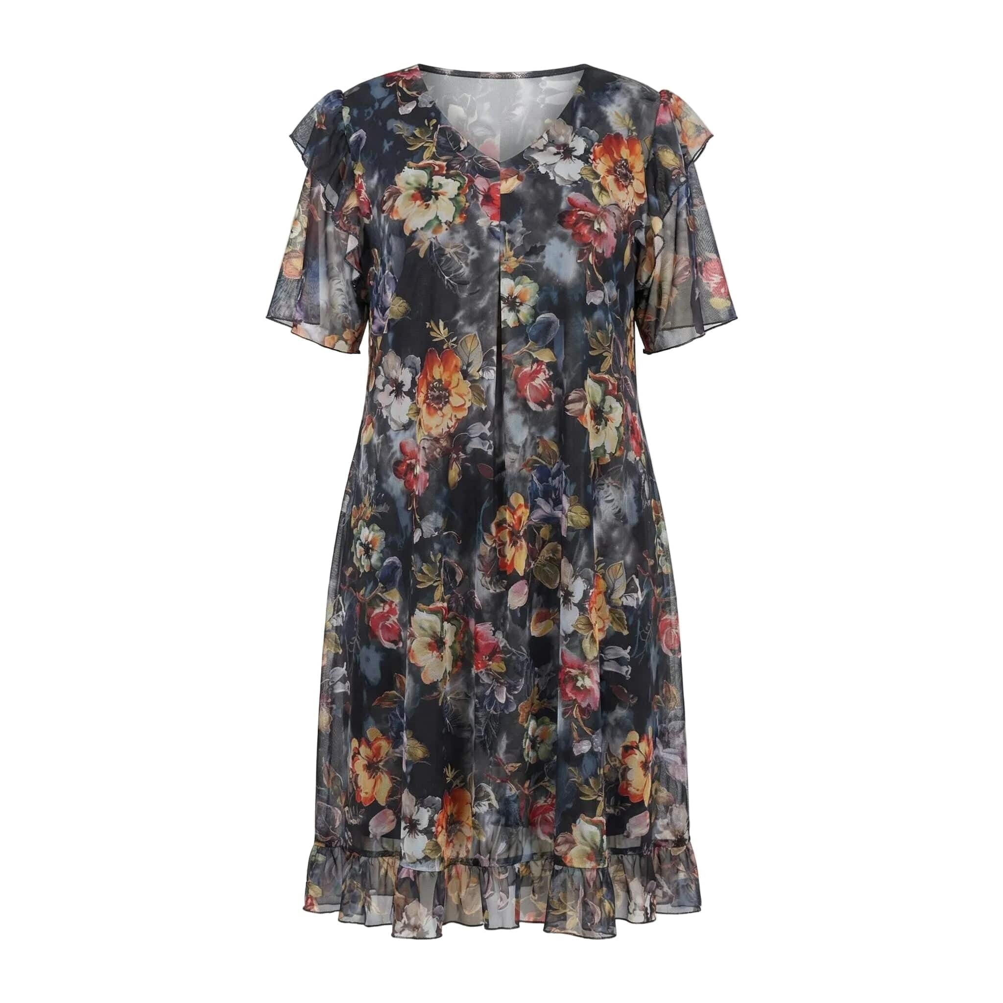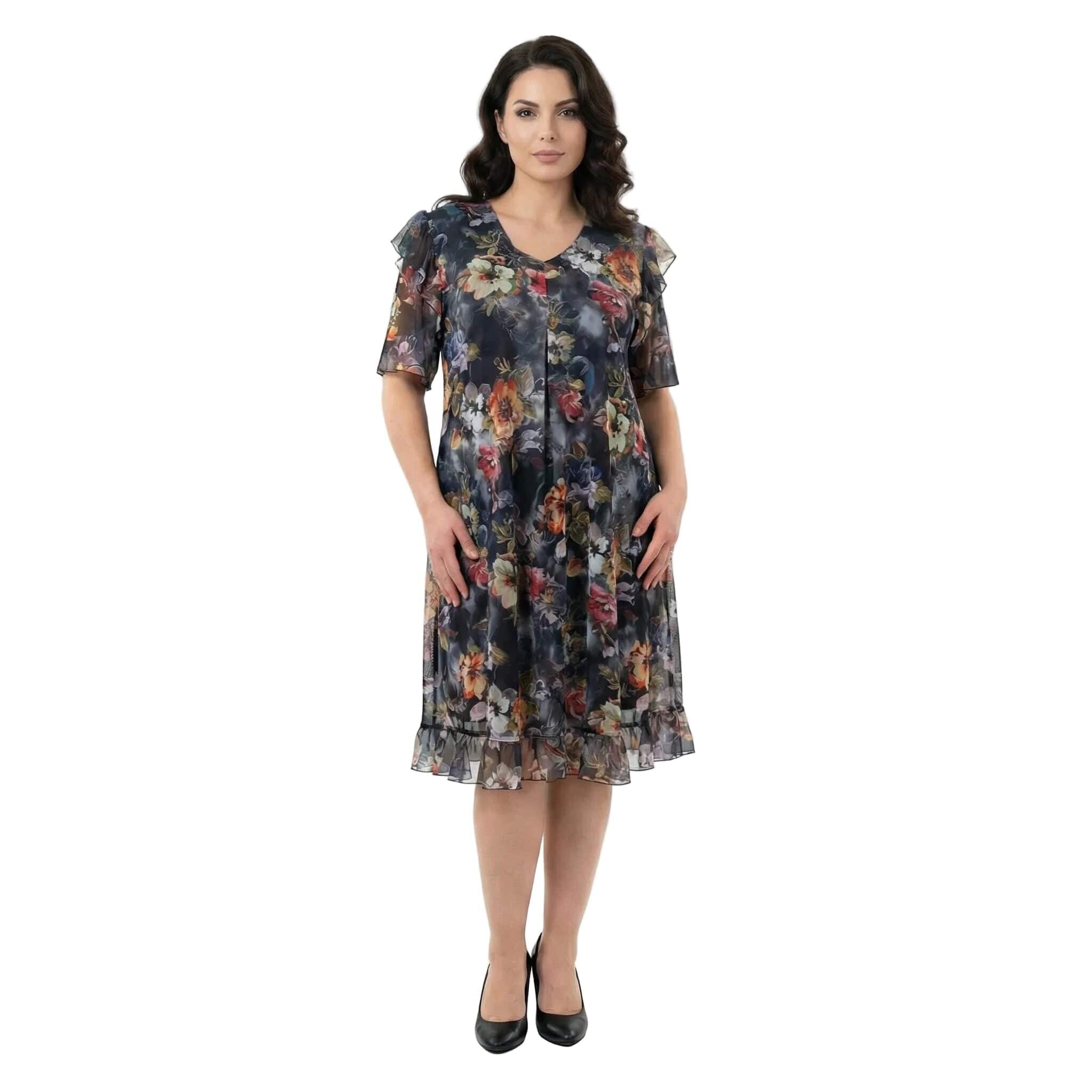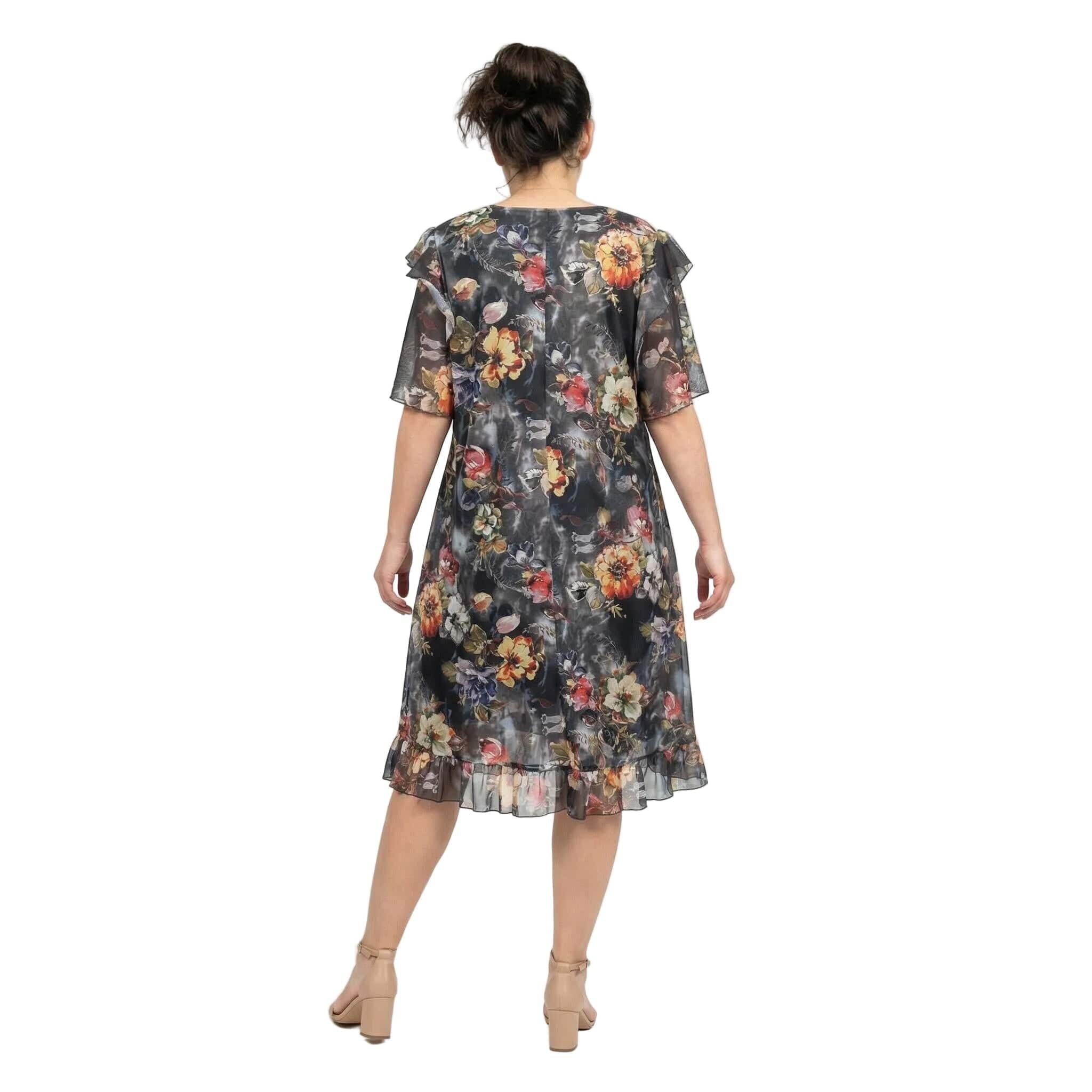 Rochie oficială în cloș, din șifon floral cu căptușeală elastică