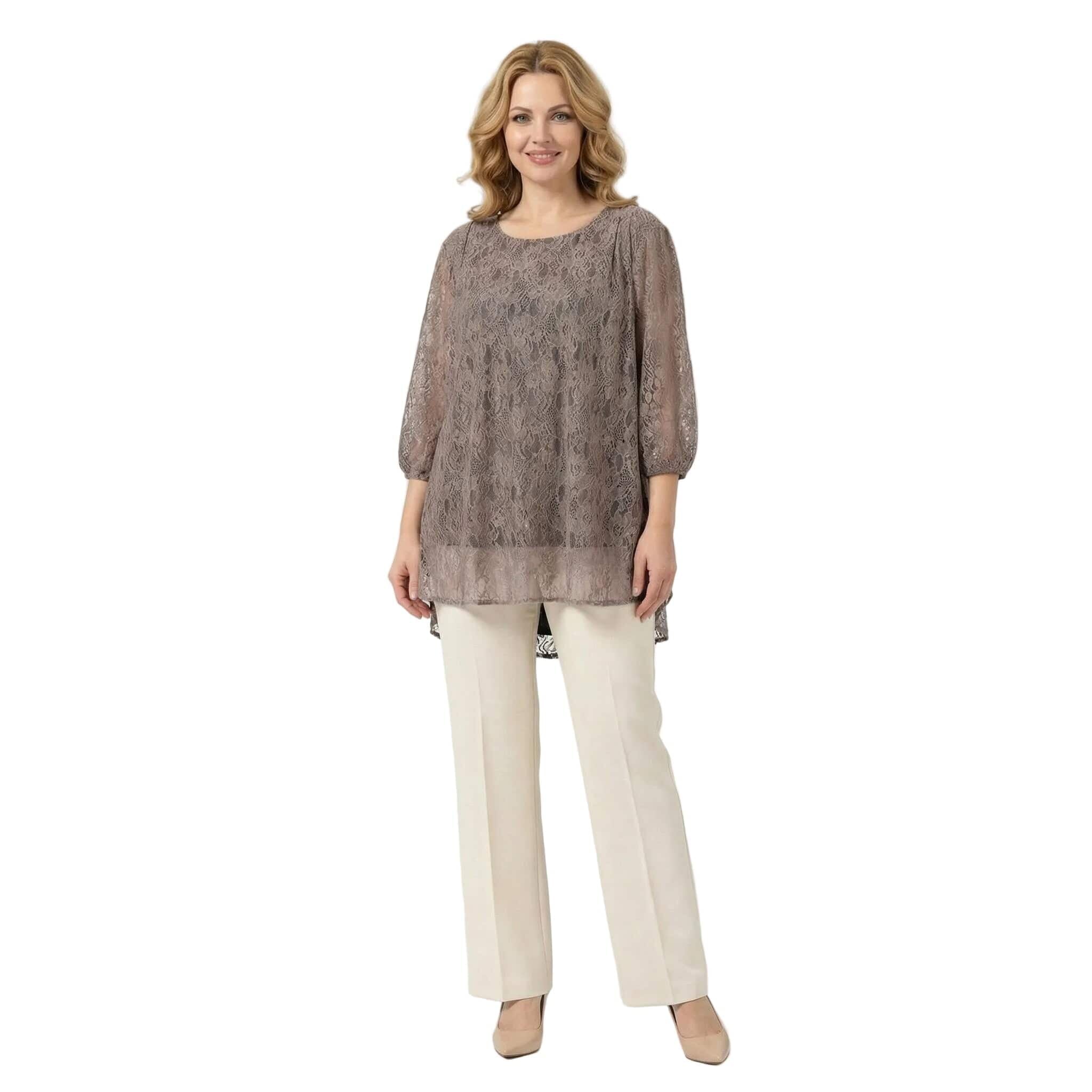 Открийте перфектния баланс между елегантност и комфорт с тази официална туника. Моделът е създаден специално за дами с пищни форми, като предлага свободна и разкроена кройка, която пада тежко и красиво по тялото. Изработена от висококачествена материя , туниката е мека, приятна на допир и притежава отлична еластичност. Акцентът на дизайна е в ефектното деколте, което придава изисканост и стил. Тази дреха е идеалният избор за официални поводи, вечерни събития или празнични моменти.