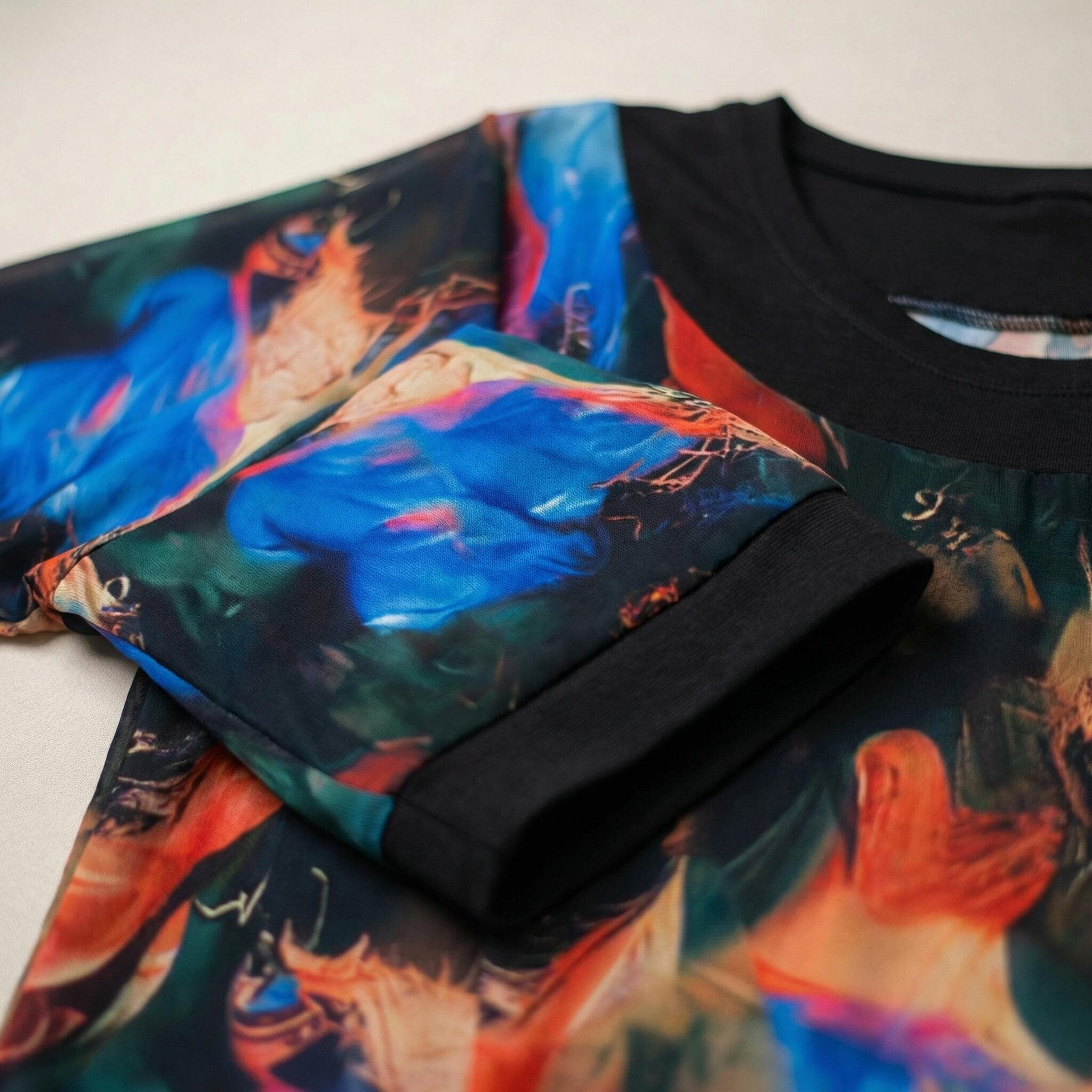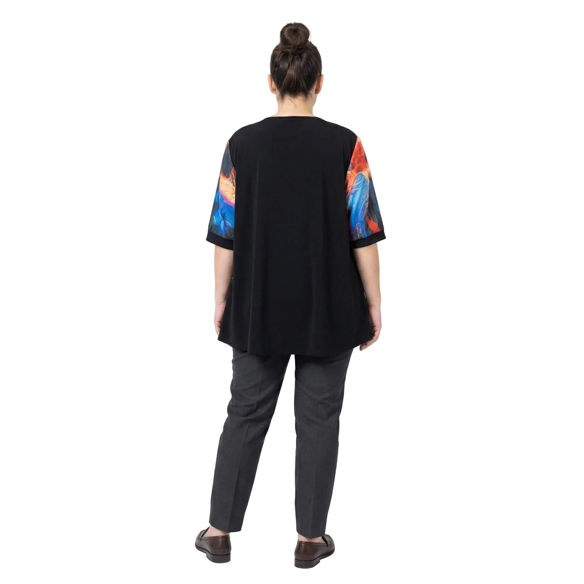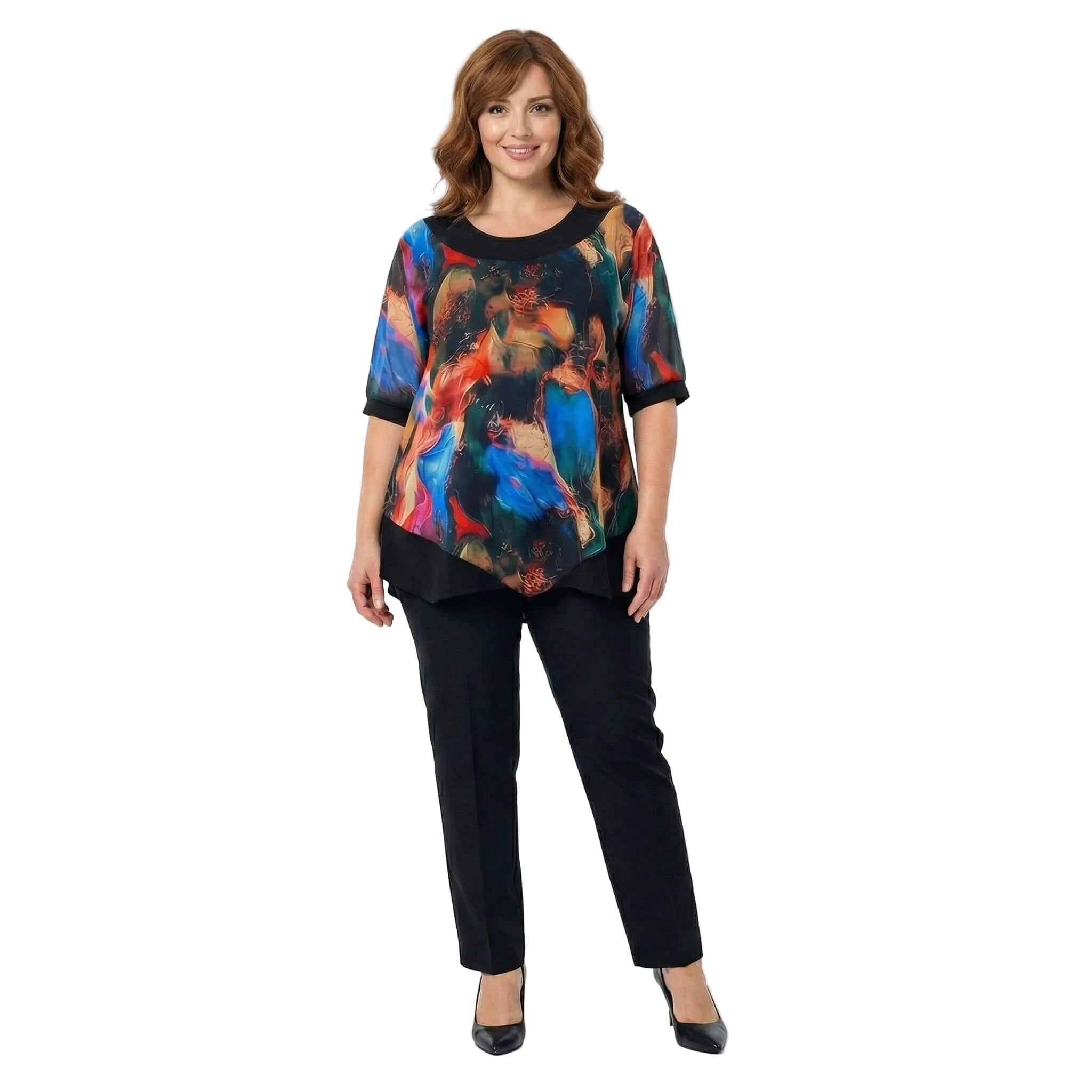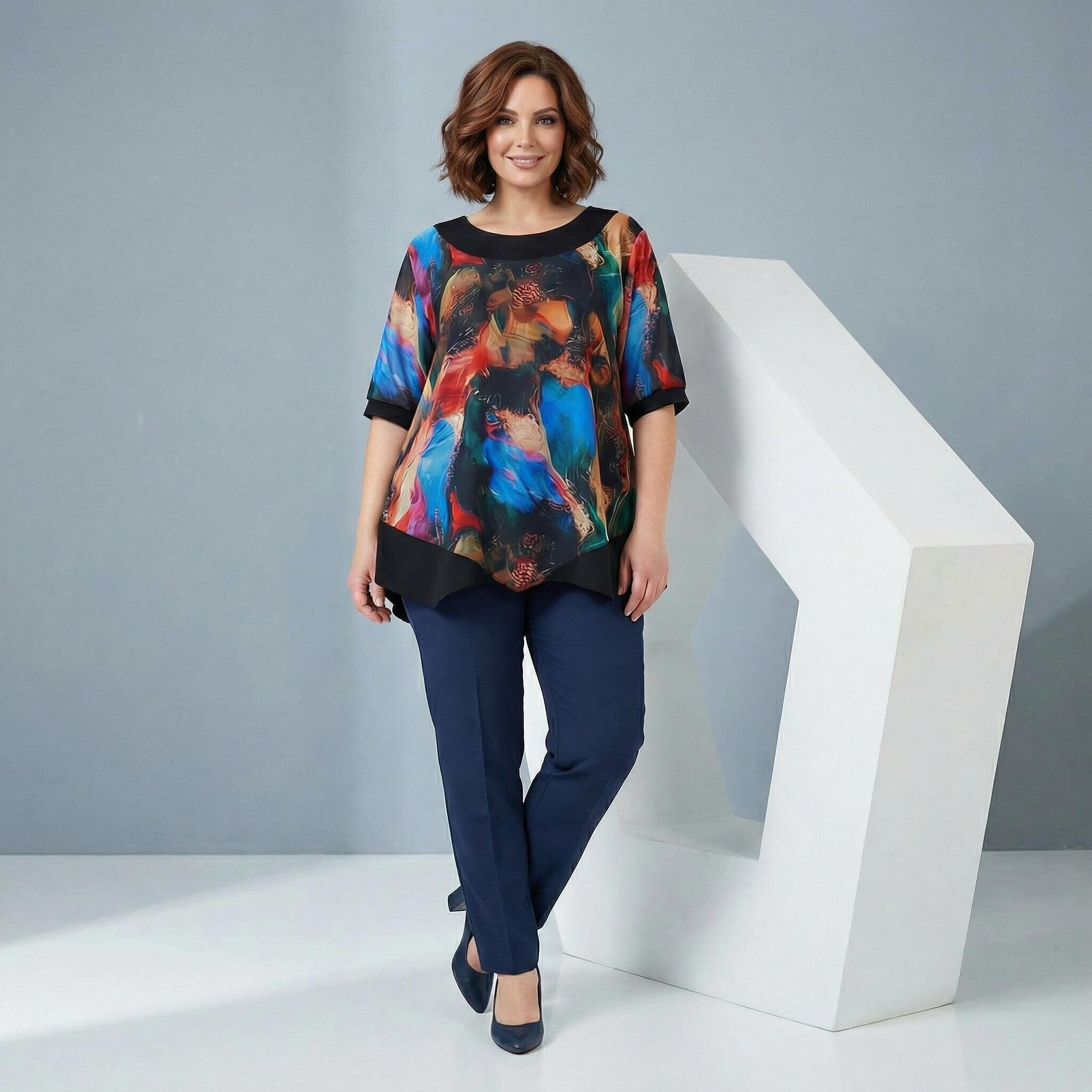 Tunică evazată elegantă cu șifon asimetric și imprimeu floral