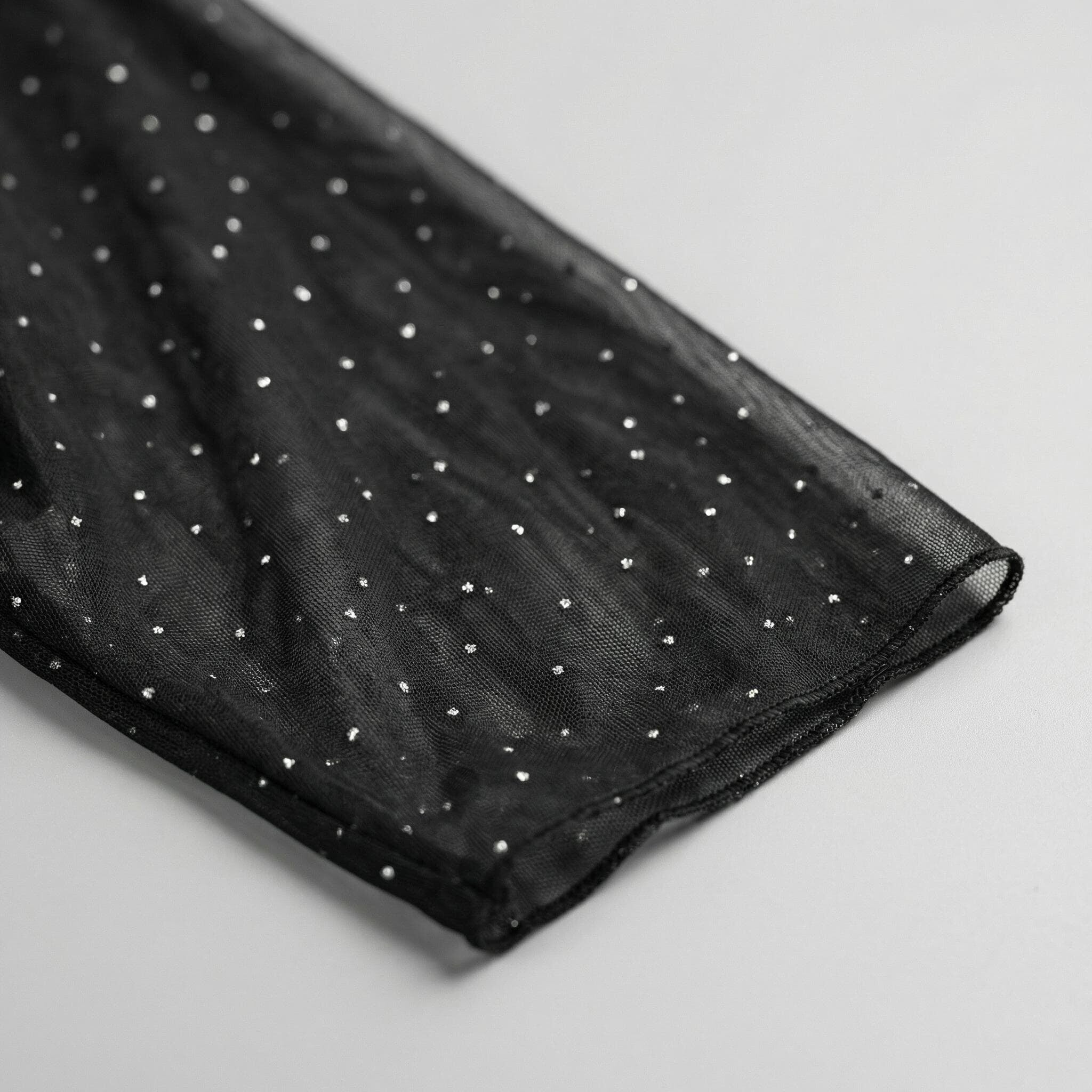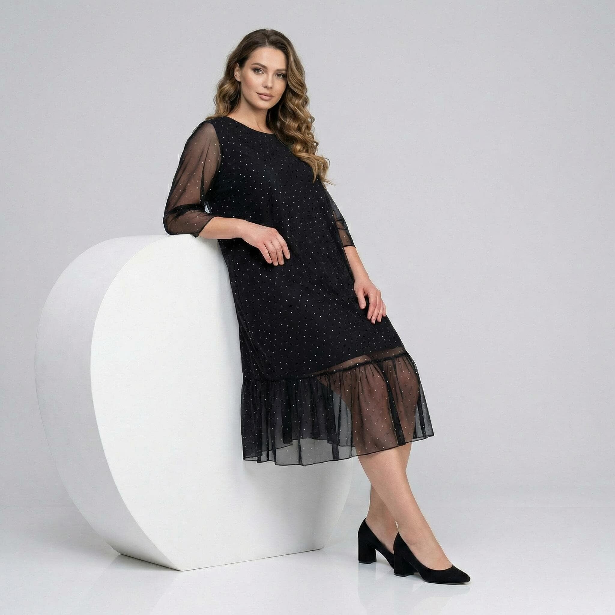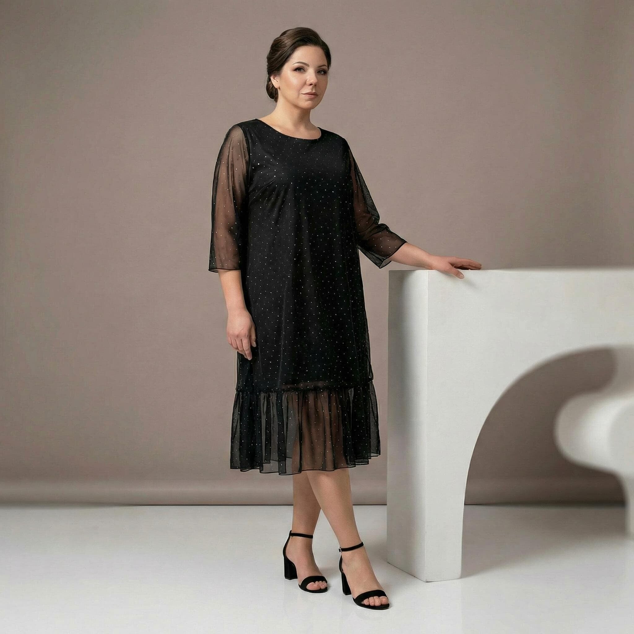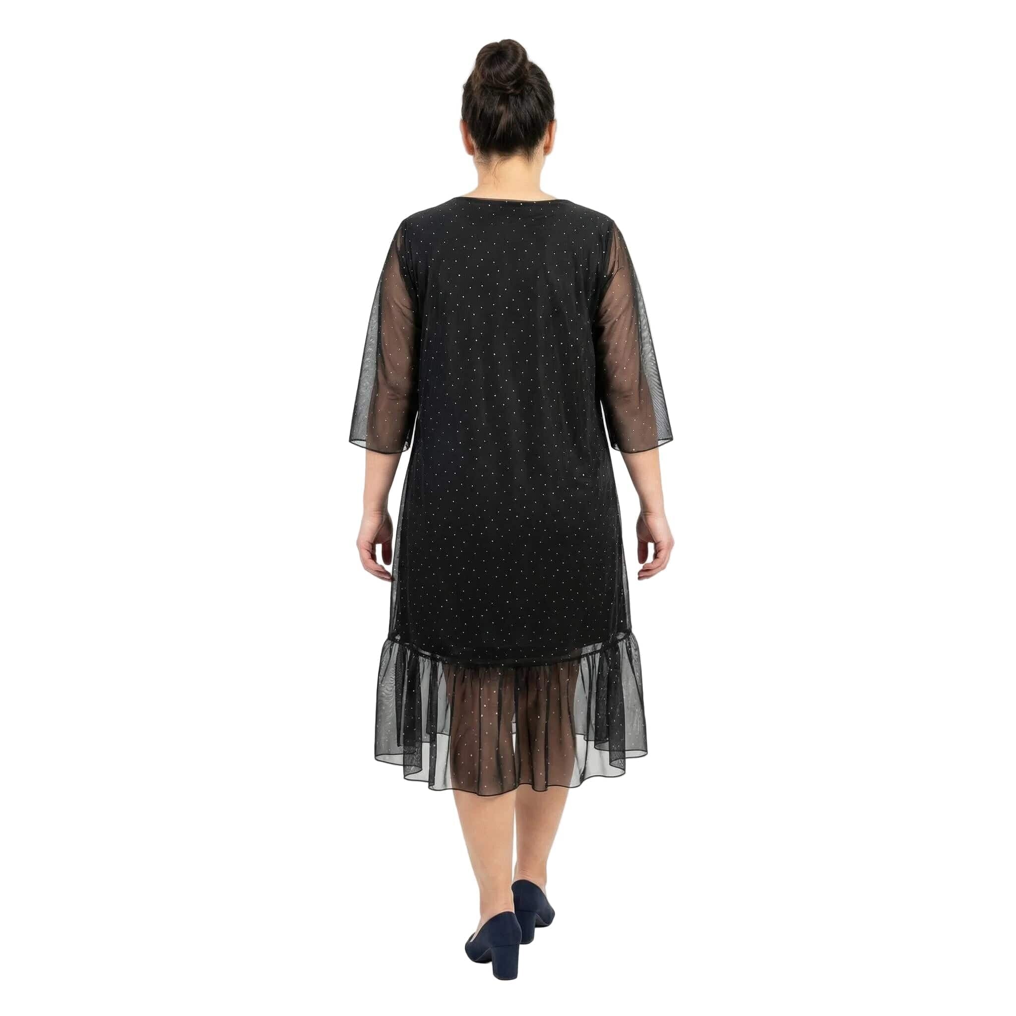 Rochie maxi oficială evazată neagră din șifon cu pietre și mâneci 7/8