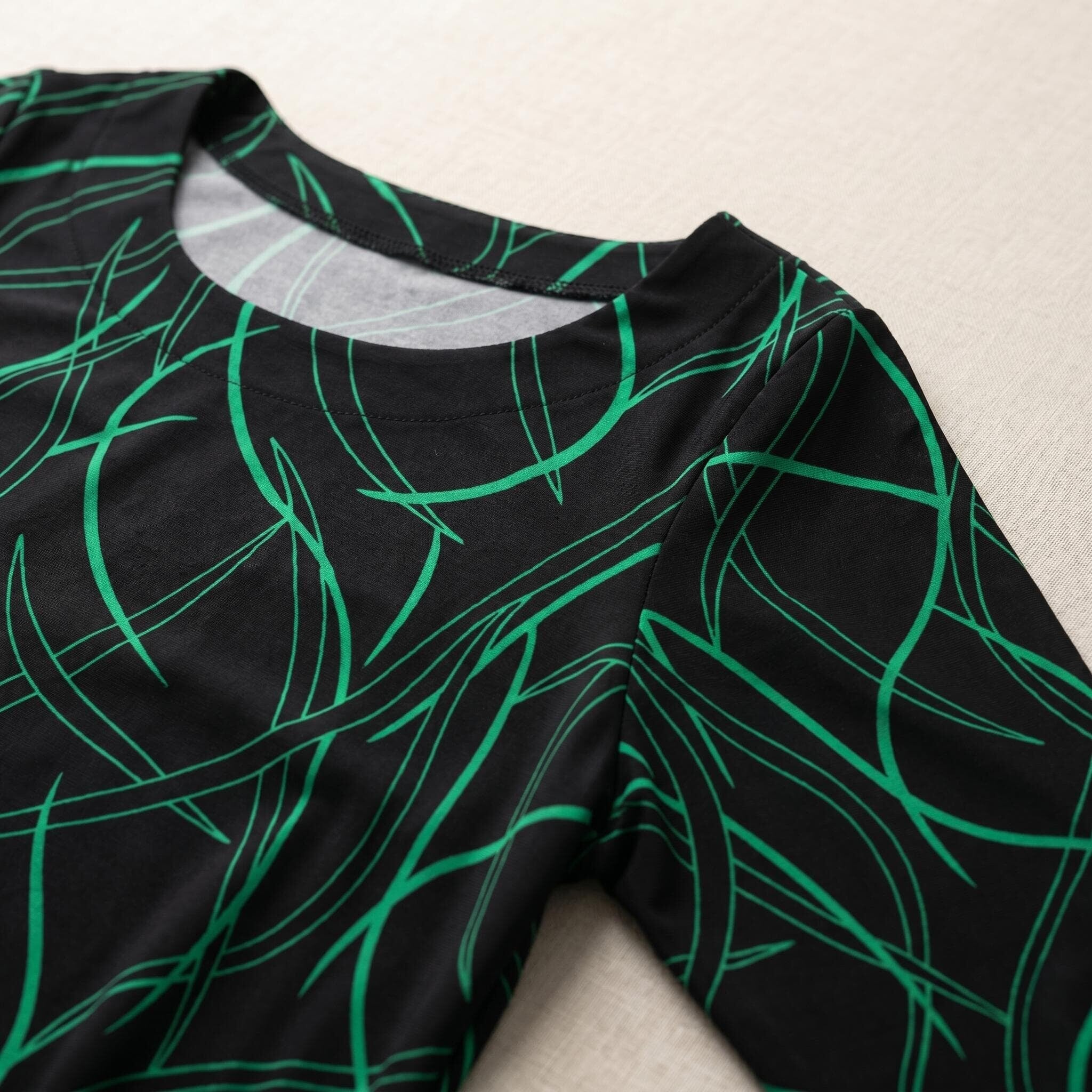 - Красив абстрактен принт със зелени шарки, придаващ модерно и динамично излъчване.