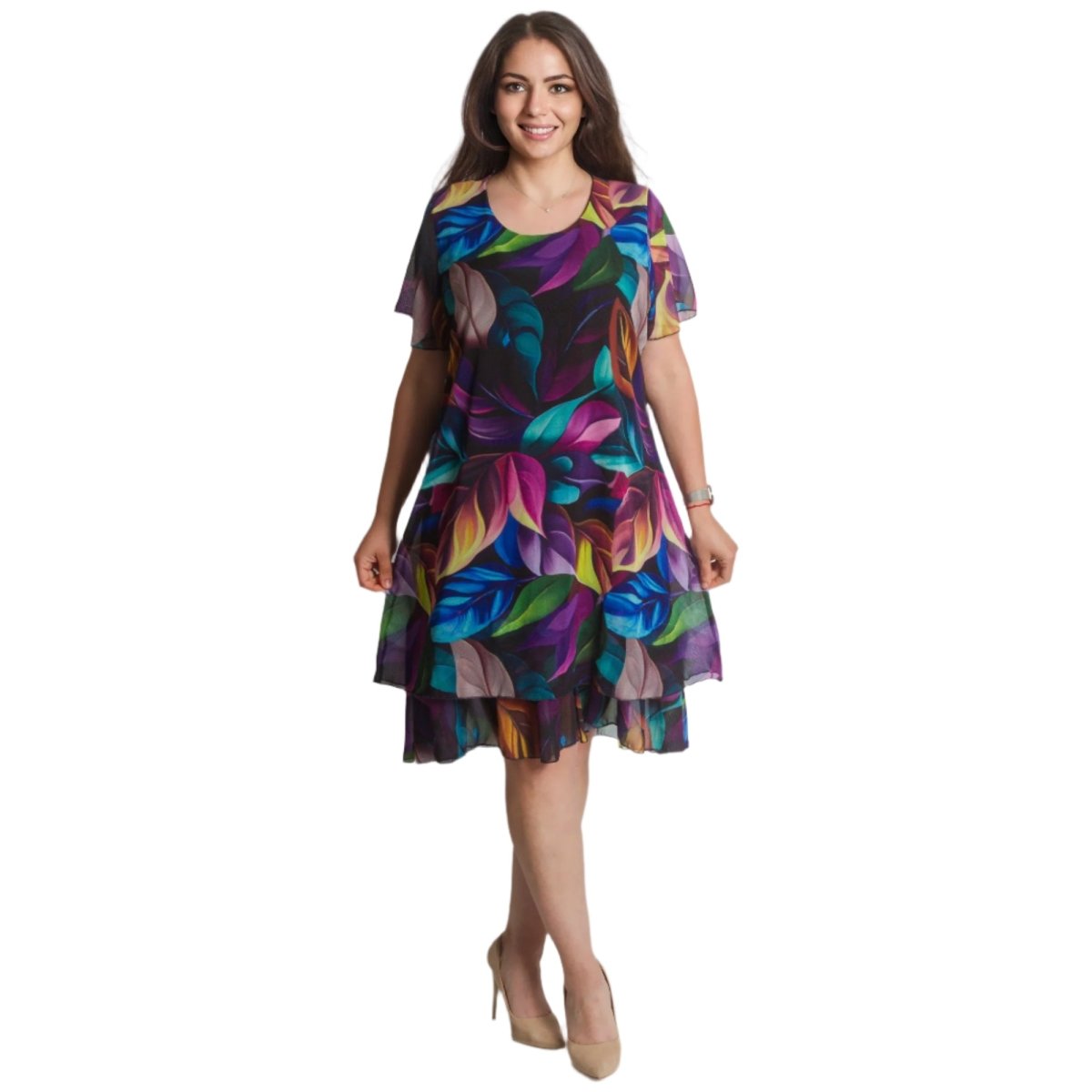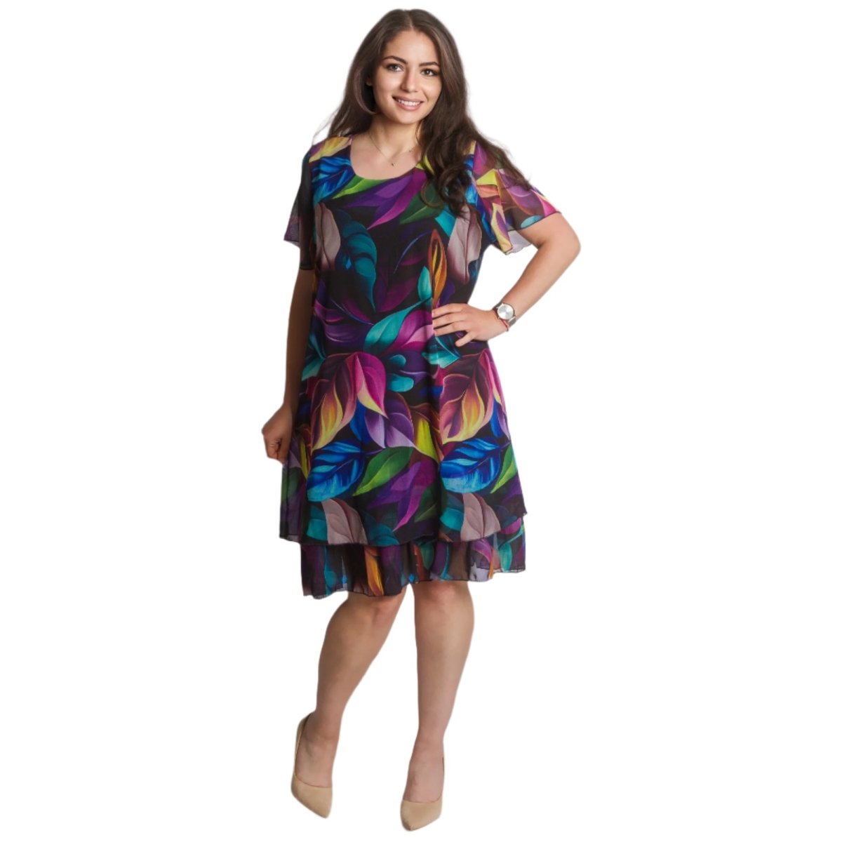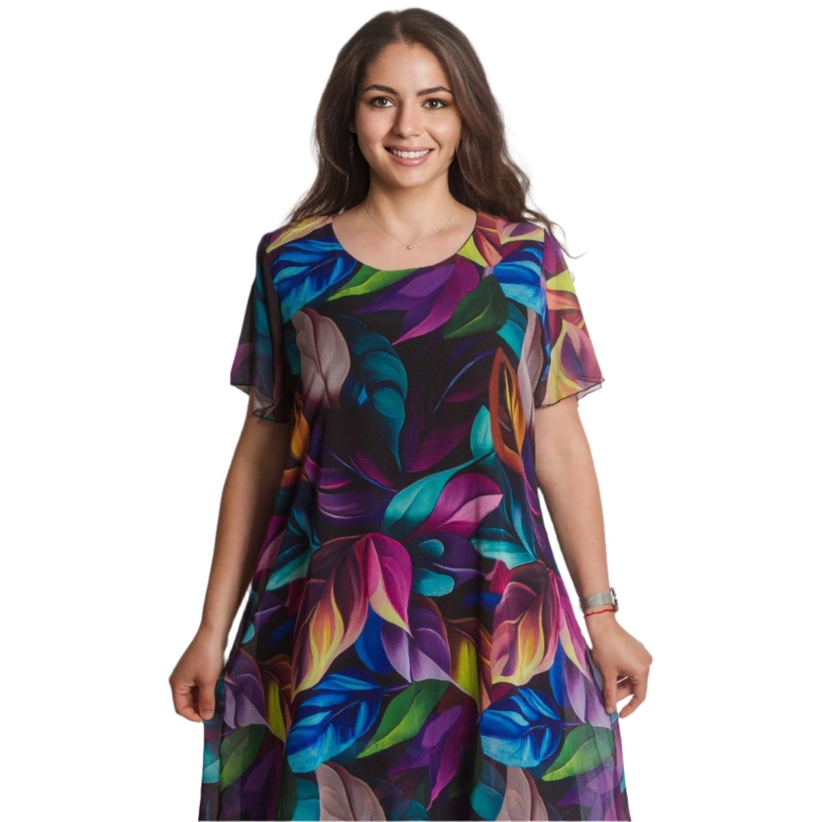 Această rochie maxi vaporoasă de vară este alegerea perfectă pentru ocaziile formale din zilele călduroase. Modelul impresionează printr-un model floral vibrant în culori saturate și o construcție dublă cu o căptușeală fină. Mânecile scurte oferă lejeritate și libertate de mișcare, iar croiul lejer accentuează delicat silueta fără a se agăța. Căptușeala din viscoză și elastan garantează confort pe tot parcursul zilei. Modelul este potrivit atât pentru evenimente festive, cât și pentru o purtare elegantă de zi cu zi.