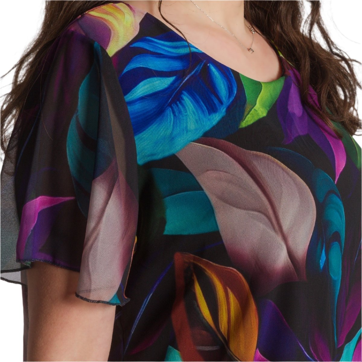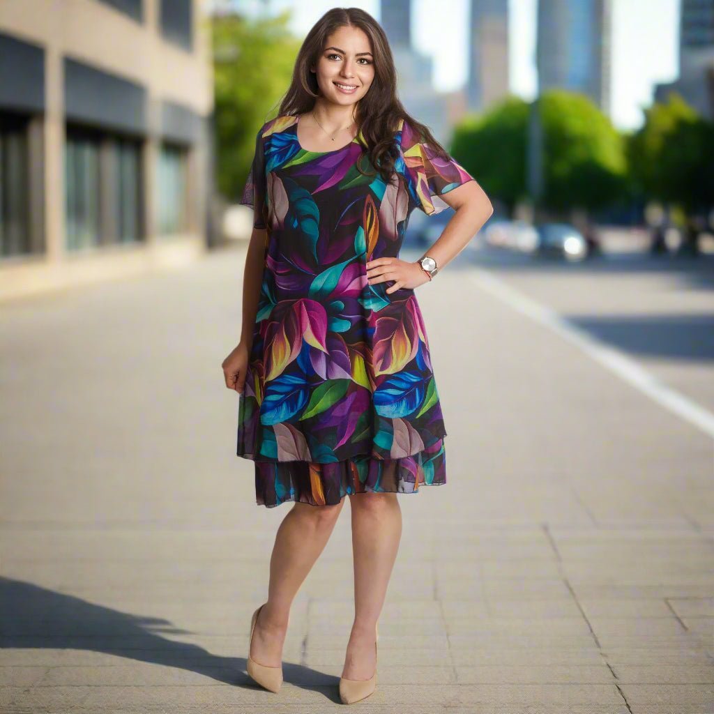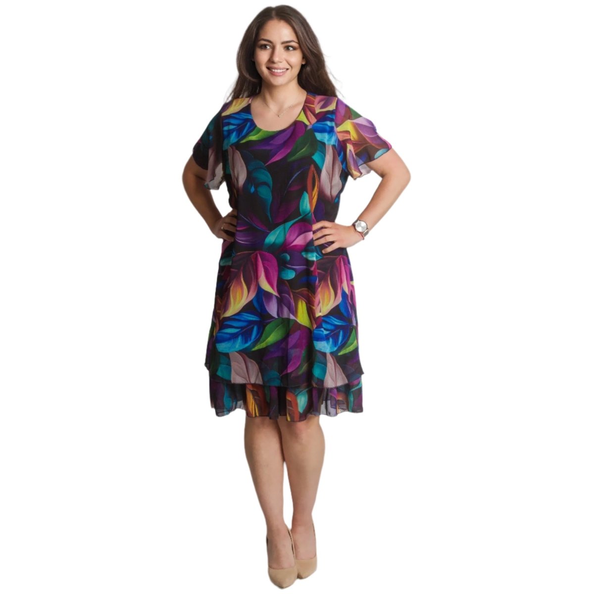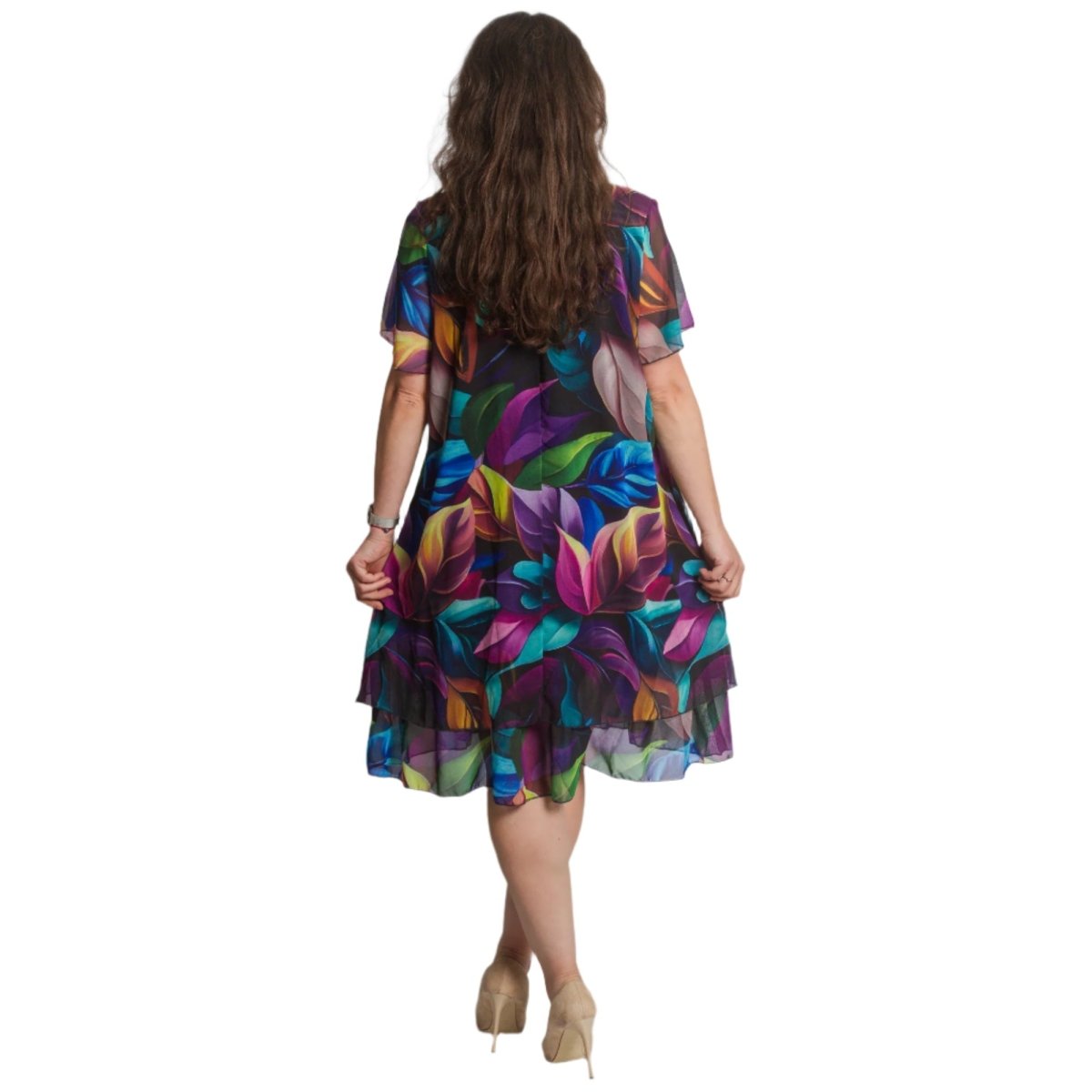 Această rochie maxi vaporoasă de vară este alegerea perfectă pentru ocaziile formale din zilele călduroase. Modelul impresionează printr-un model floral vibrant în culori saturate și o construcție dublă cu o căptușeală fină. Mânecile scurte oferă lejeritate și libertate de mișcare, iar croiul lejer accentuează delicat silueta fără a se agăța. Căptușeala din viscoză și elastan garantează confort pe tot parcursul zilei. Modelul este potrivit atât pentru evenimente festive, cât și pentru o purtare elegantă de zi cu zi.