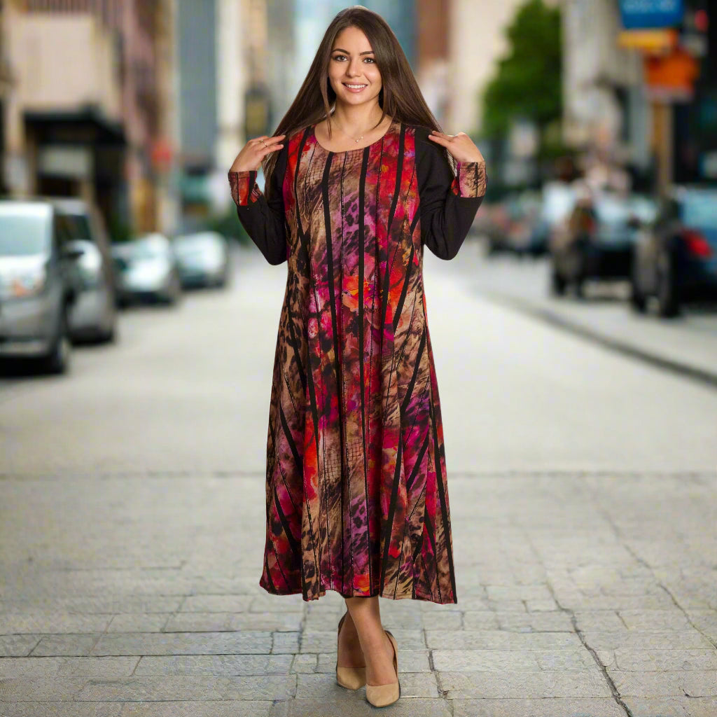 Această rochie maxi vaporoasă de vară este alegerea perfectă pentru ocaziile formale din zilele călduroase. Modelul impresionează printr-un model floral vibrant în culori saturate și o construcție dublă cu o căptușeală fină. Mânecile scurte oferă lejeritate și libertate de mișcare, iar croiul lejer accentuează delicat silueta fără a se agăța. Căptușeala din viscoză și elastan garantează confort pe tot parcursul zilei. Modelul este potrivit atât pentru evenimente festive, cât și pentru o purtare elegantă de zi cu zi.