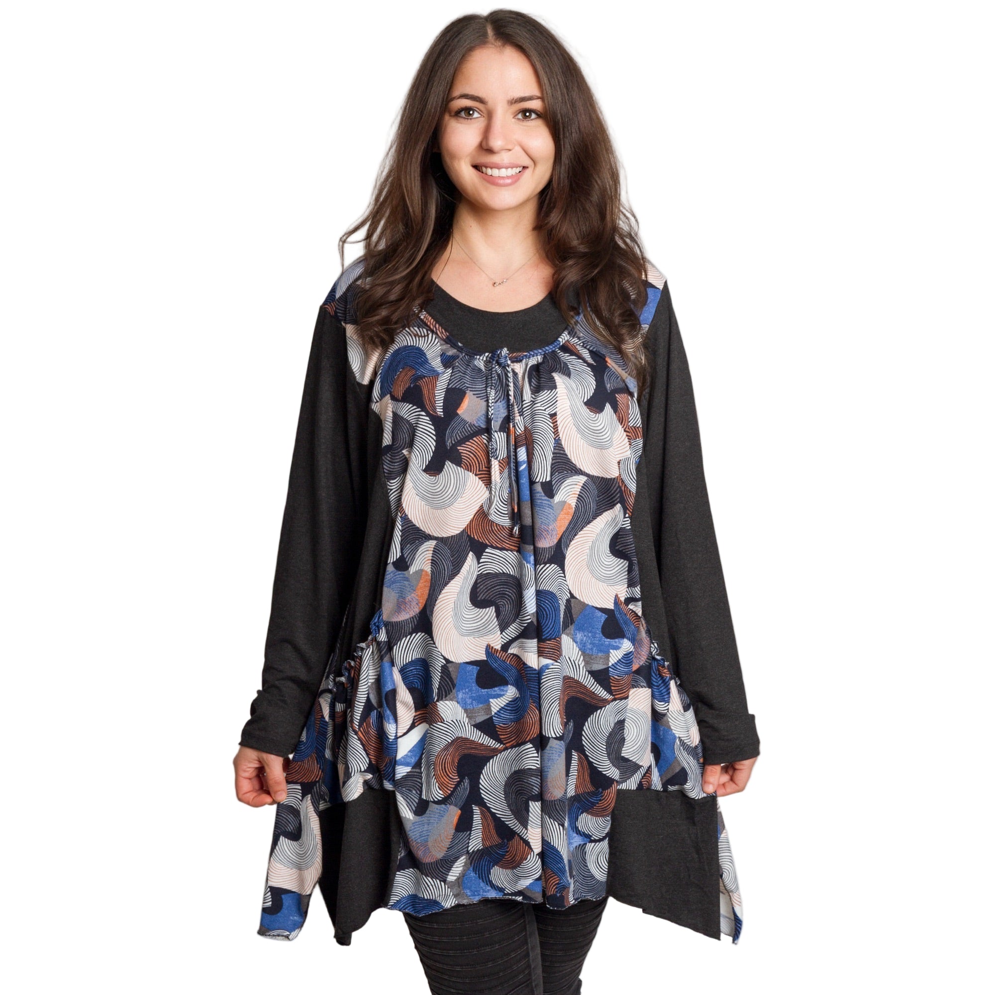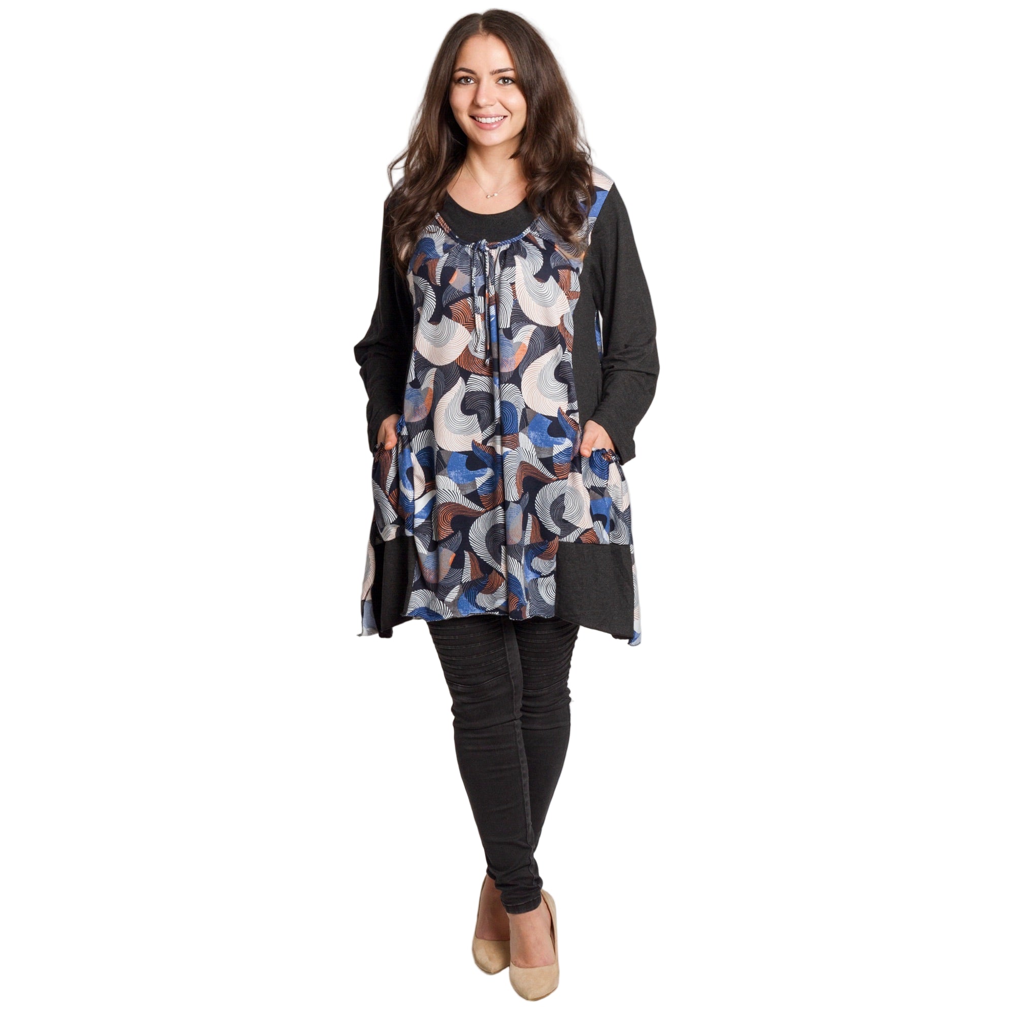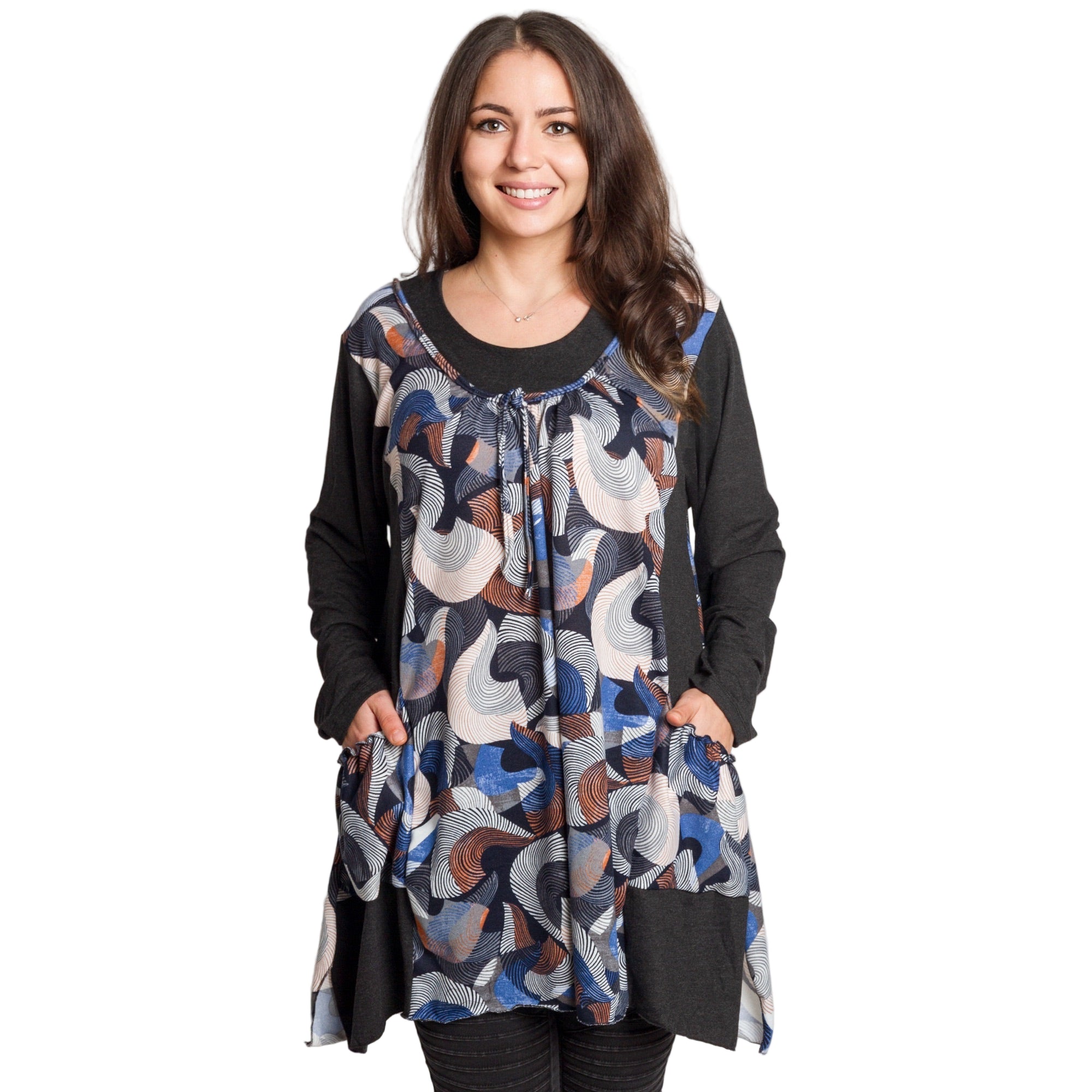 Tunică colorată, decupată, cu buzunare, în mărimi mari