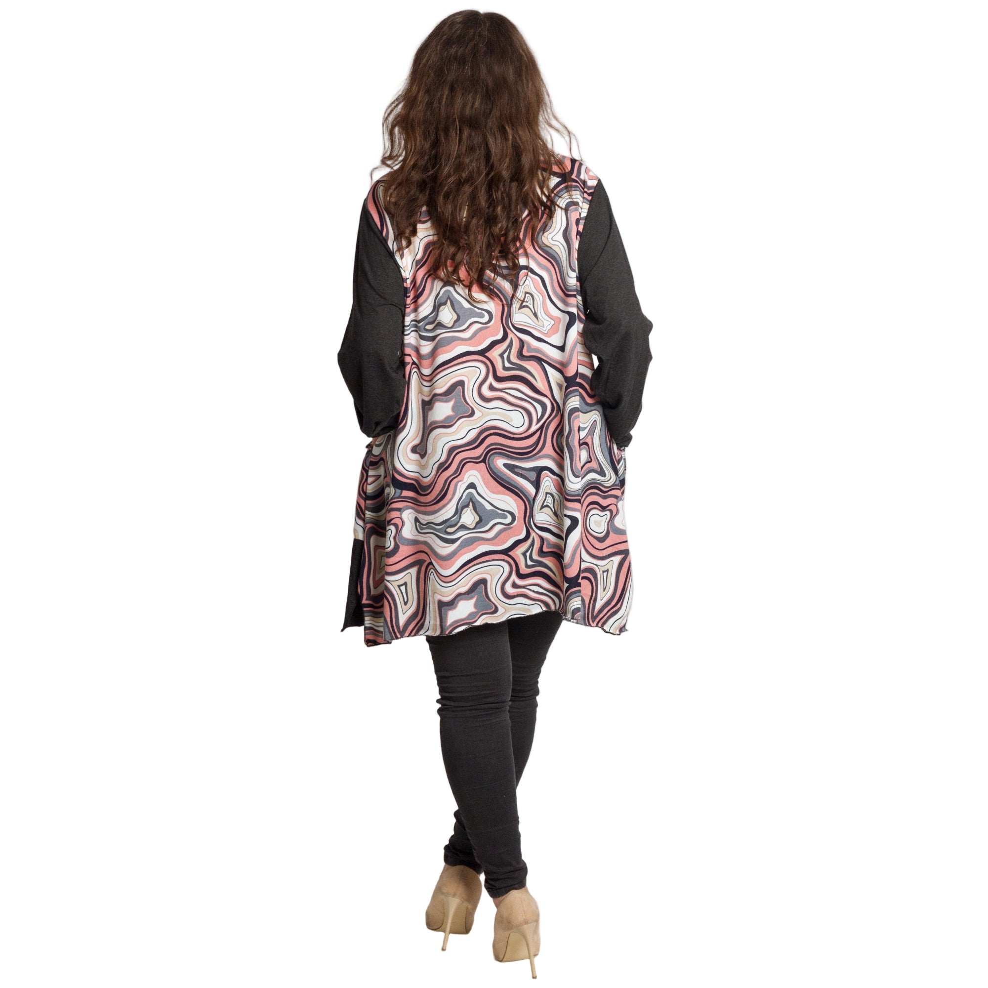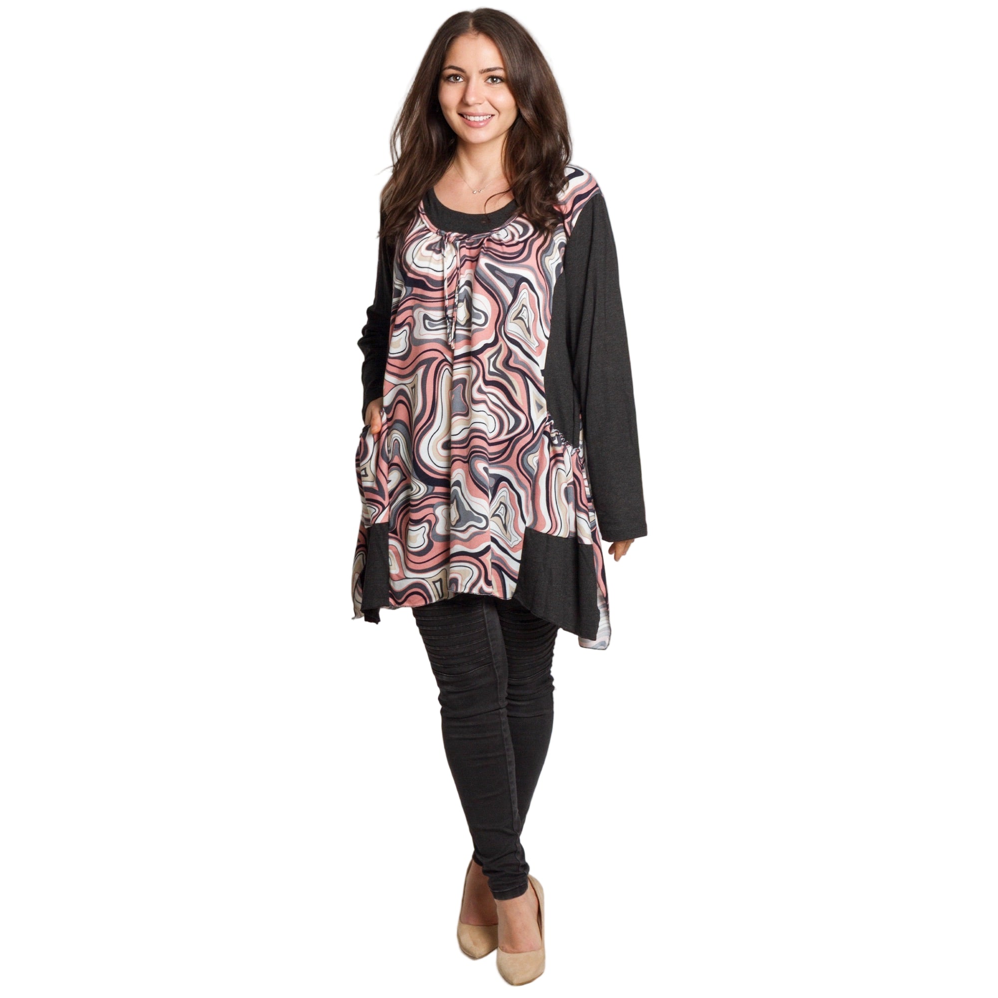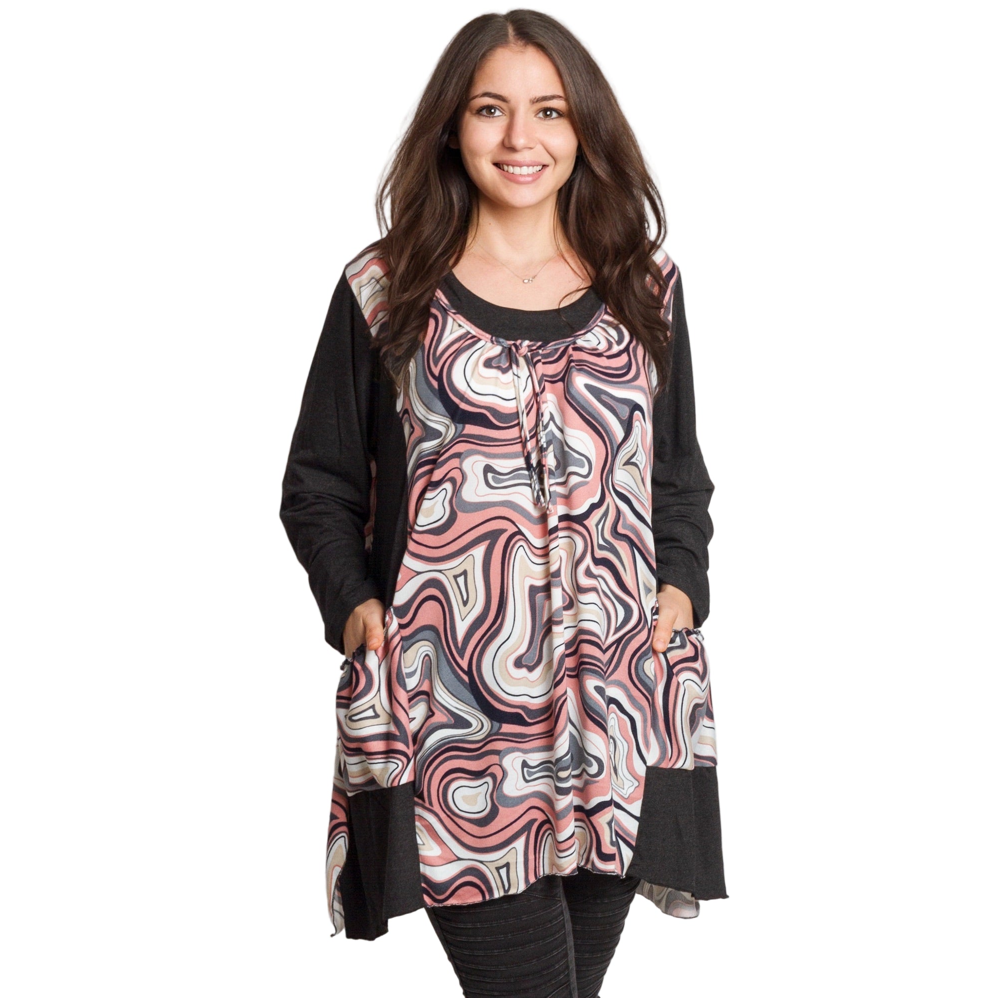 Adu prospețime și confort stilului tău de zi cu zi cu această tunică colorată în mărimi maxi. Confecționată din material moale și elastic, modelul are o croială lejeră și confortabilă, care cade liber în jurul corpului. Tunica are buzunare practice, legături la decolteu și o bordură decorativă neagră care adaugă un accent elegant. Potrivită pentru sezonul primăvară-vară.