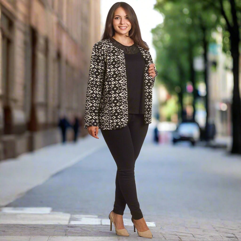 Găsește-ți stilul ideal cu jacheta neagră formală de la Maxi Market, concepută special pentru femeile cu forme voluptuoase. Această jachetă elegantă este confecționată din 95% vâscoză și 5% elastan, ceea ce îi oferă o ușoară elasticitate și confort la purtare. Este ideală pentru evenimente de primăvară-vară și ocazii formale. Închiderea cu nasturi adaugă un detaliu elegant și practic.
