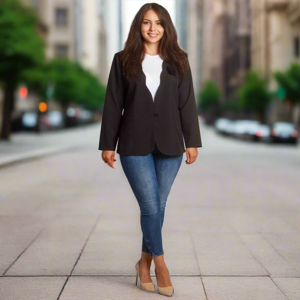 Sacou elegant pentru femei cu mâneci scurte - Negru