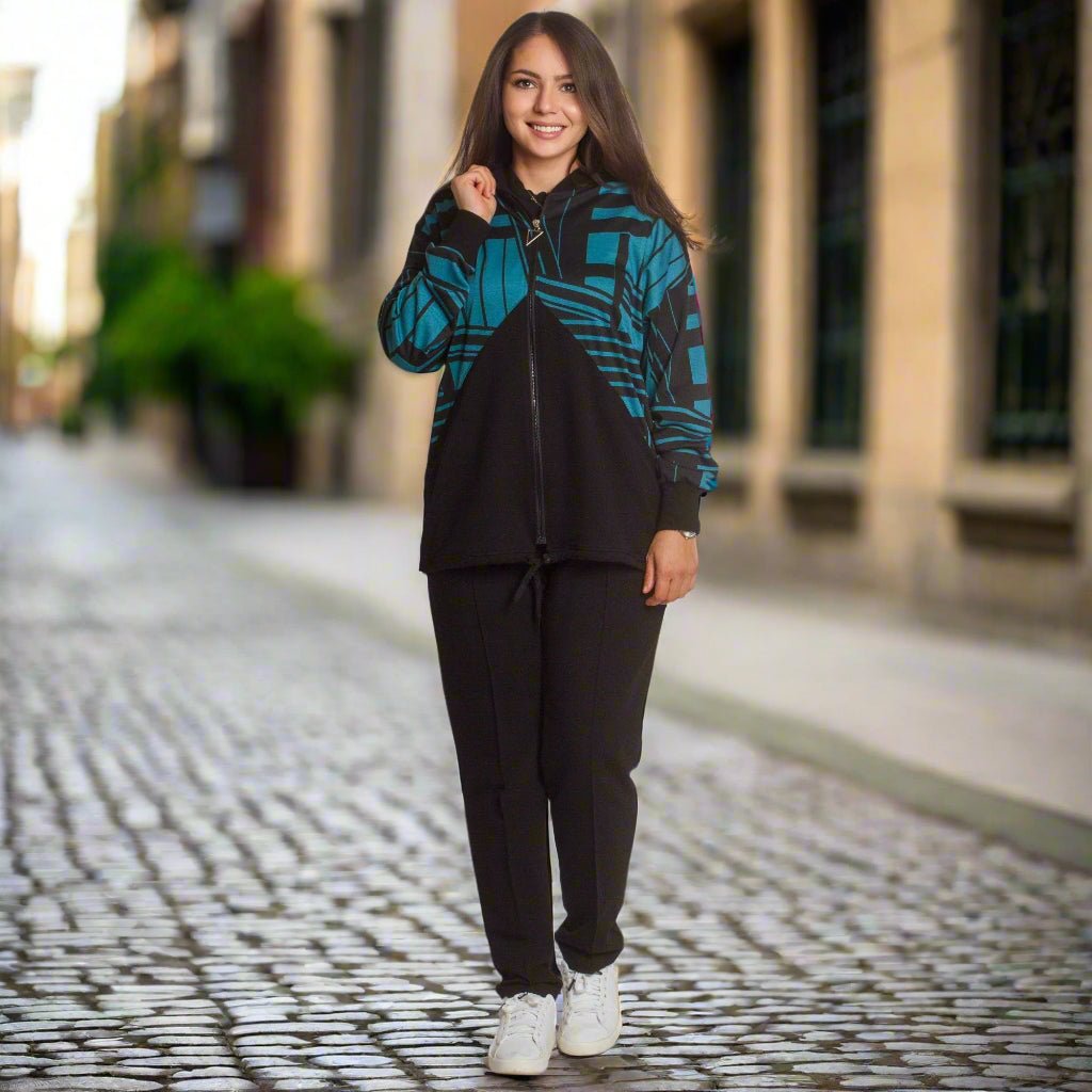 Răsfață-te cu stil și confort cu acest set elegant din două piese, potrivit pentru sezonul primăvară-vară. Bluza are un model floral în tonuri de verde și albastru și se termină cu un tiv asimetric spectaculos. Croiul este lejer, cu decolteu rotund și mâneci scurte, asigurând ușurință în mișcare. Pantalonii au o linie lejeră și o bandă elastică confortabilă în talie, ce garantează o potrivire perfectă pe corp. Potrivit atât pentru ocazii formale, cât și pentru viața de zi cu zi.
