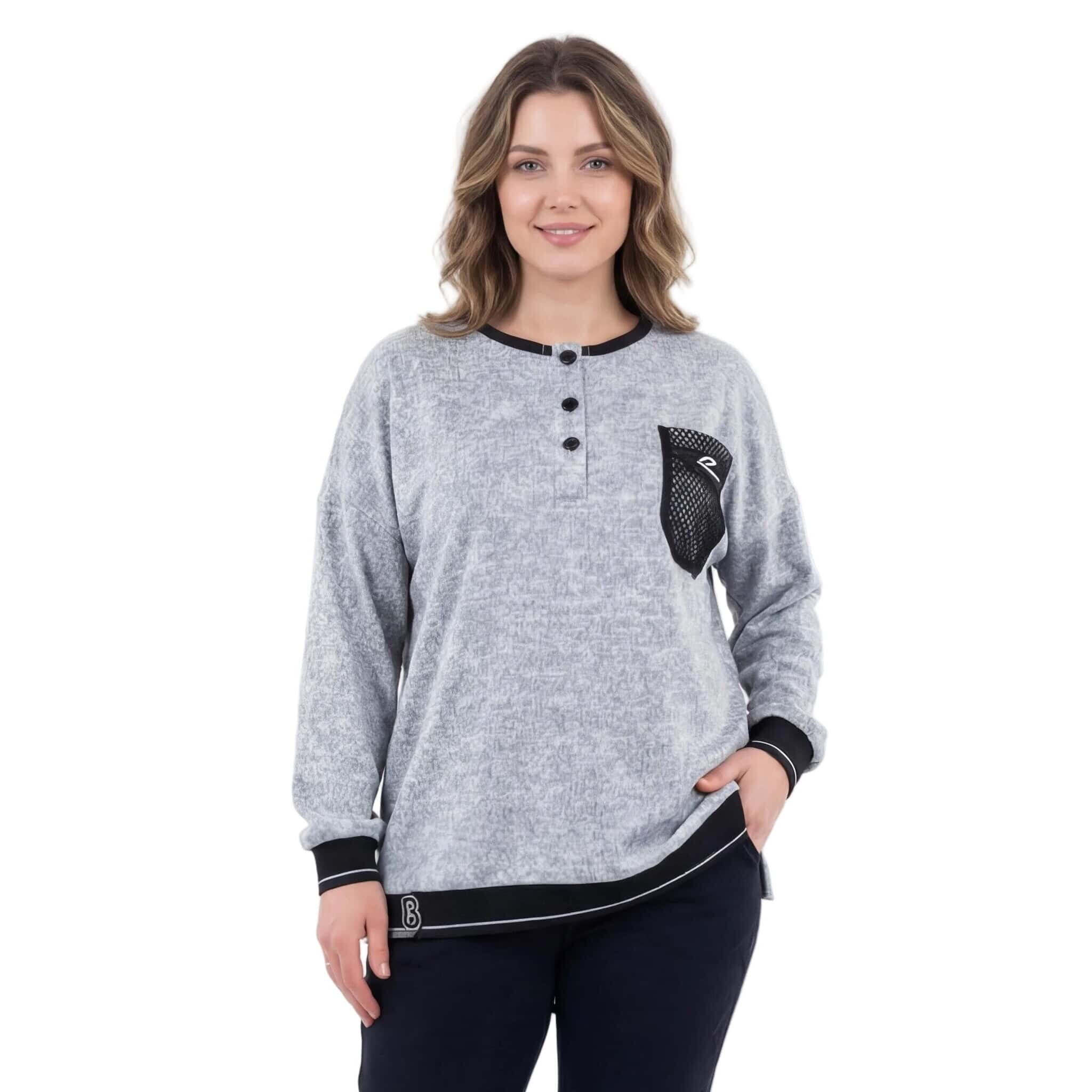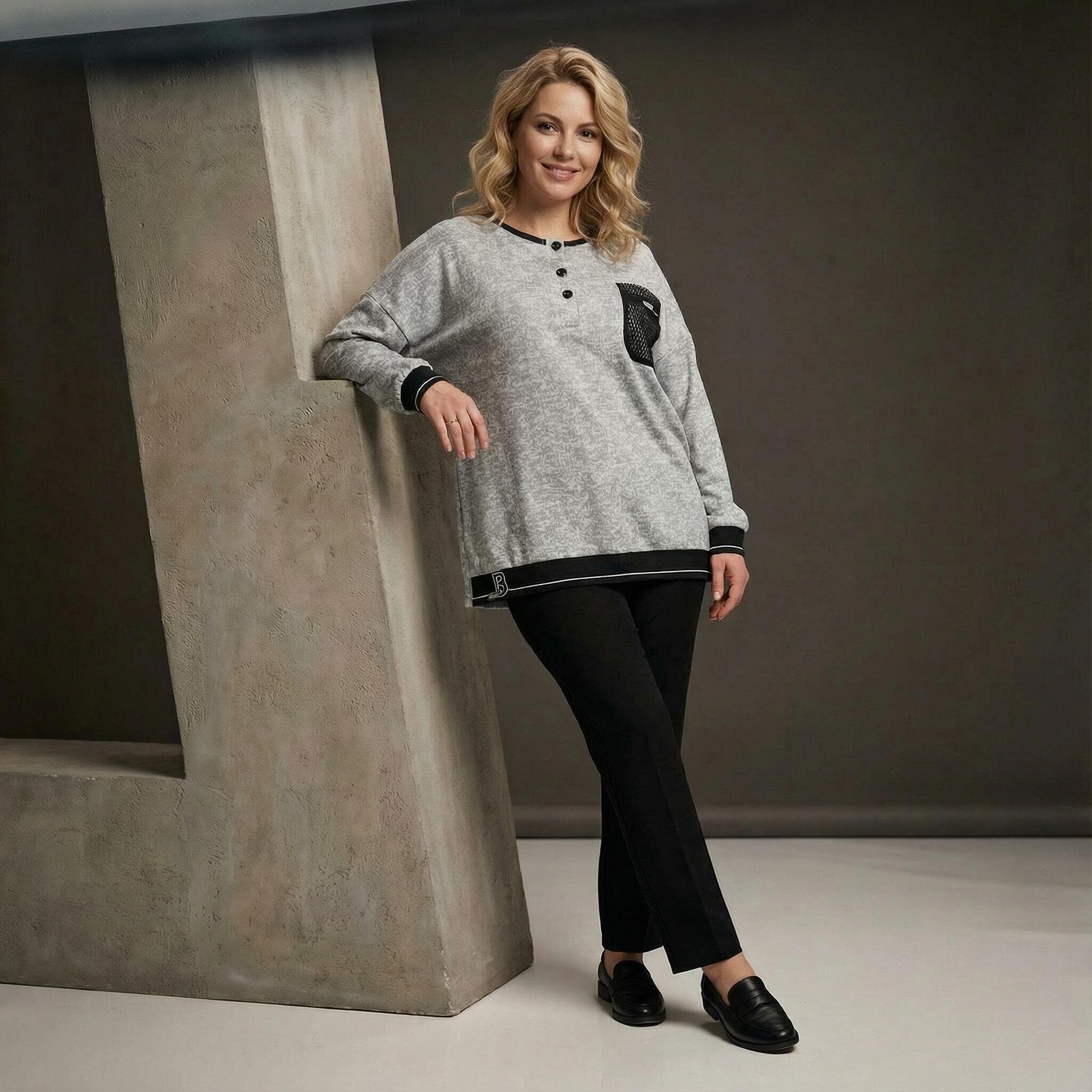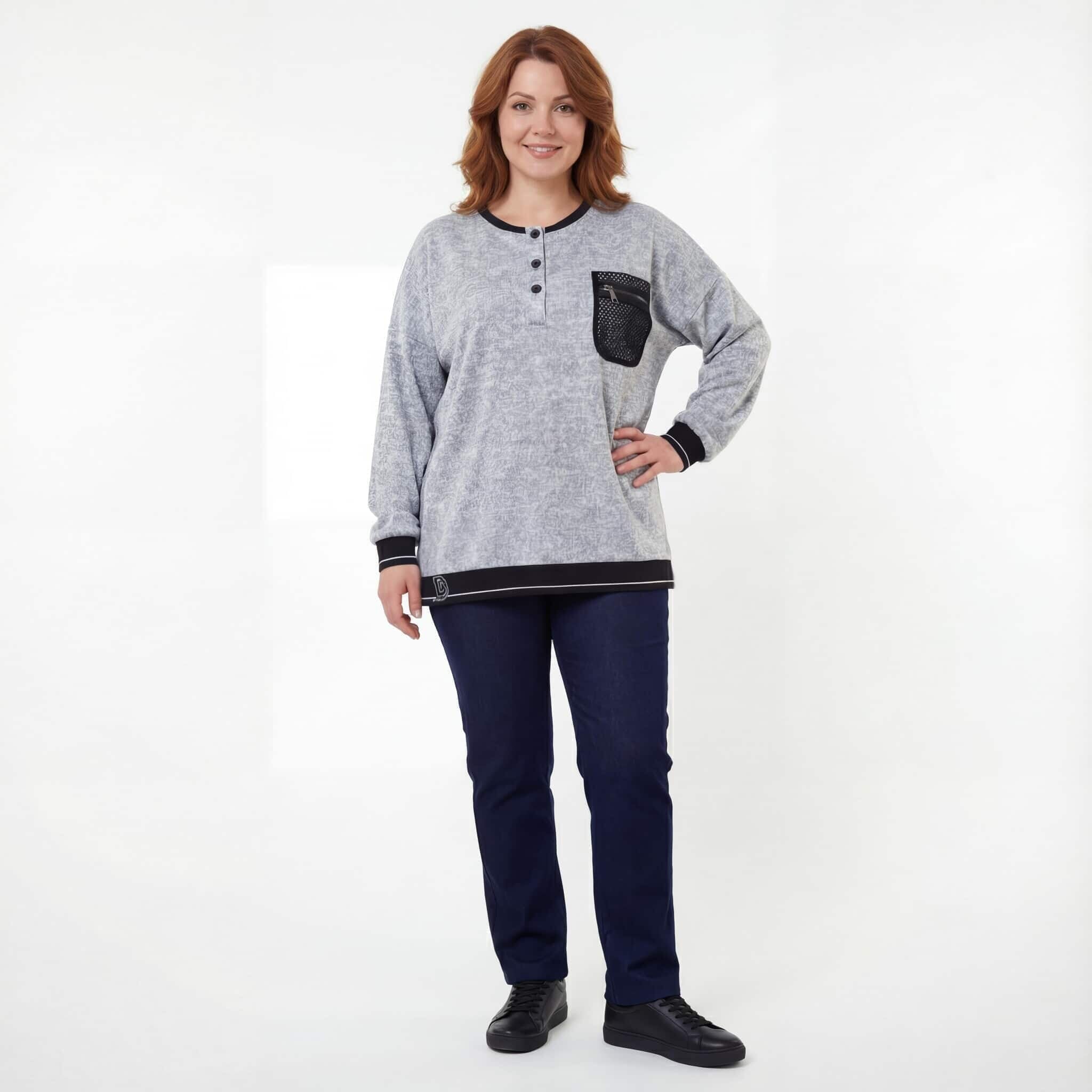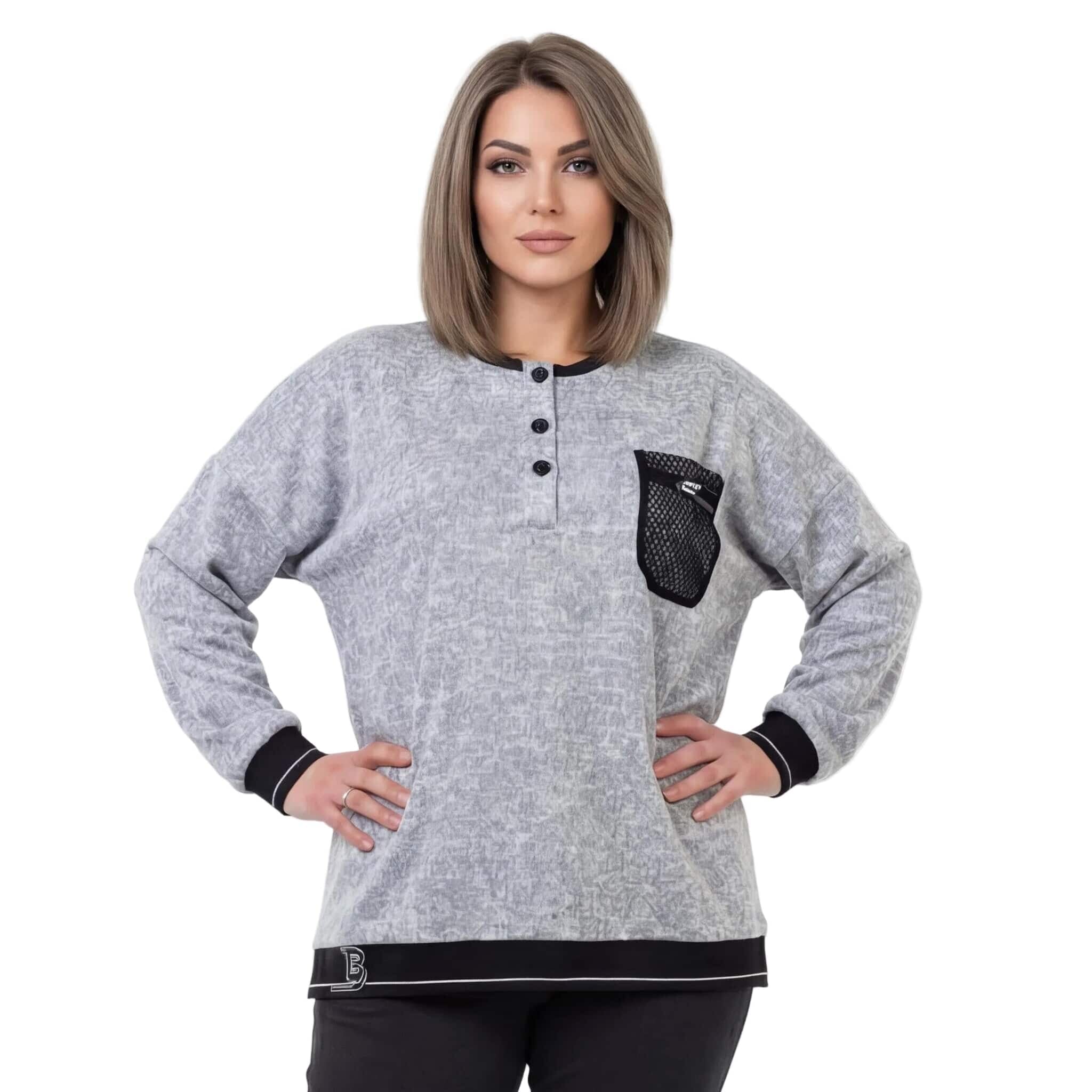 Tunică gri deschis melanj cu buzunar decorativ și plasă