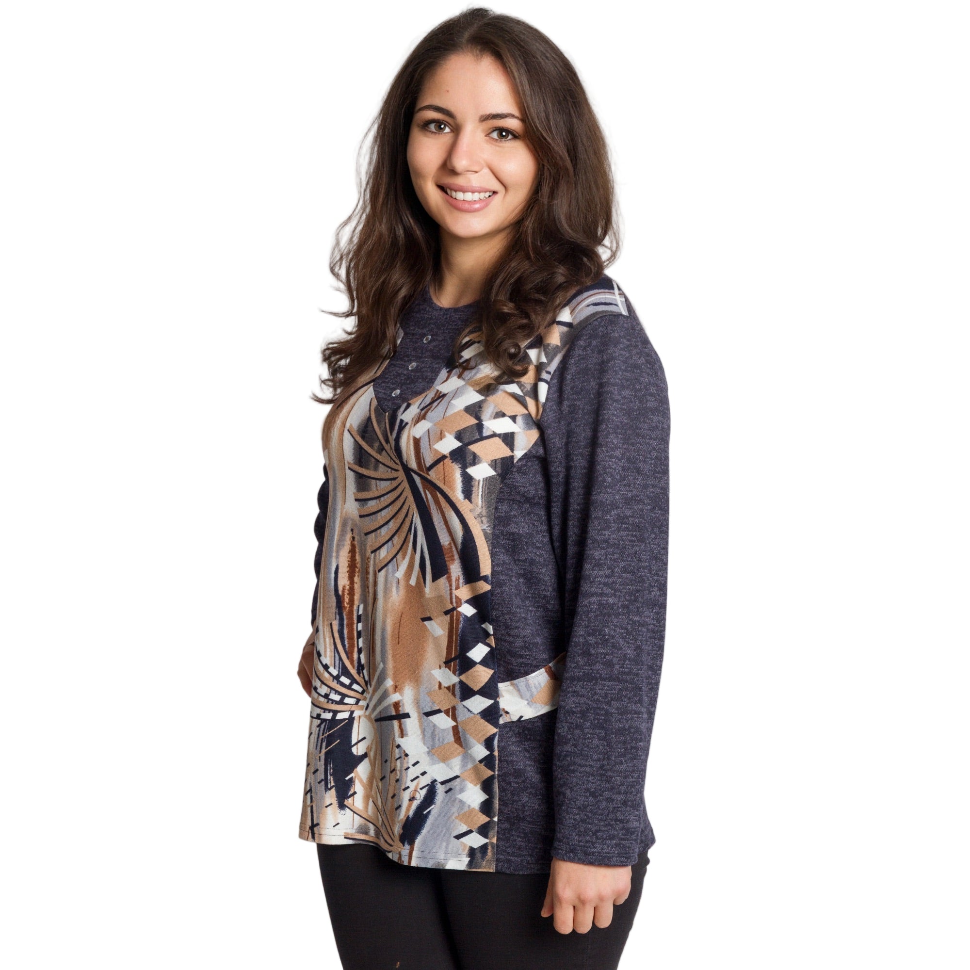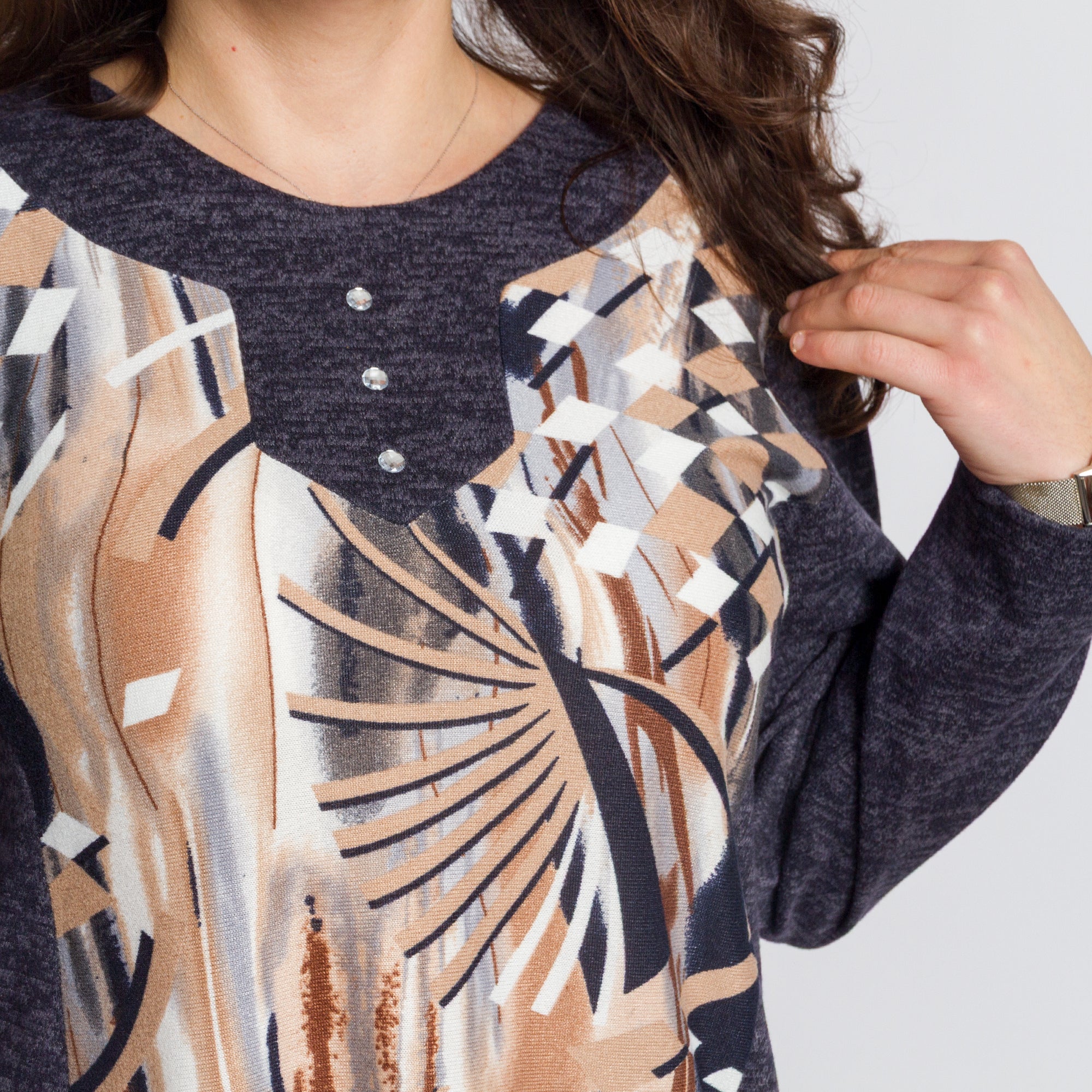 Tunică lejeră în mărimi mari cu accente din piele